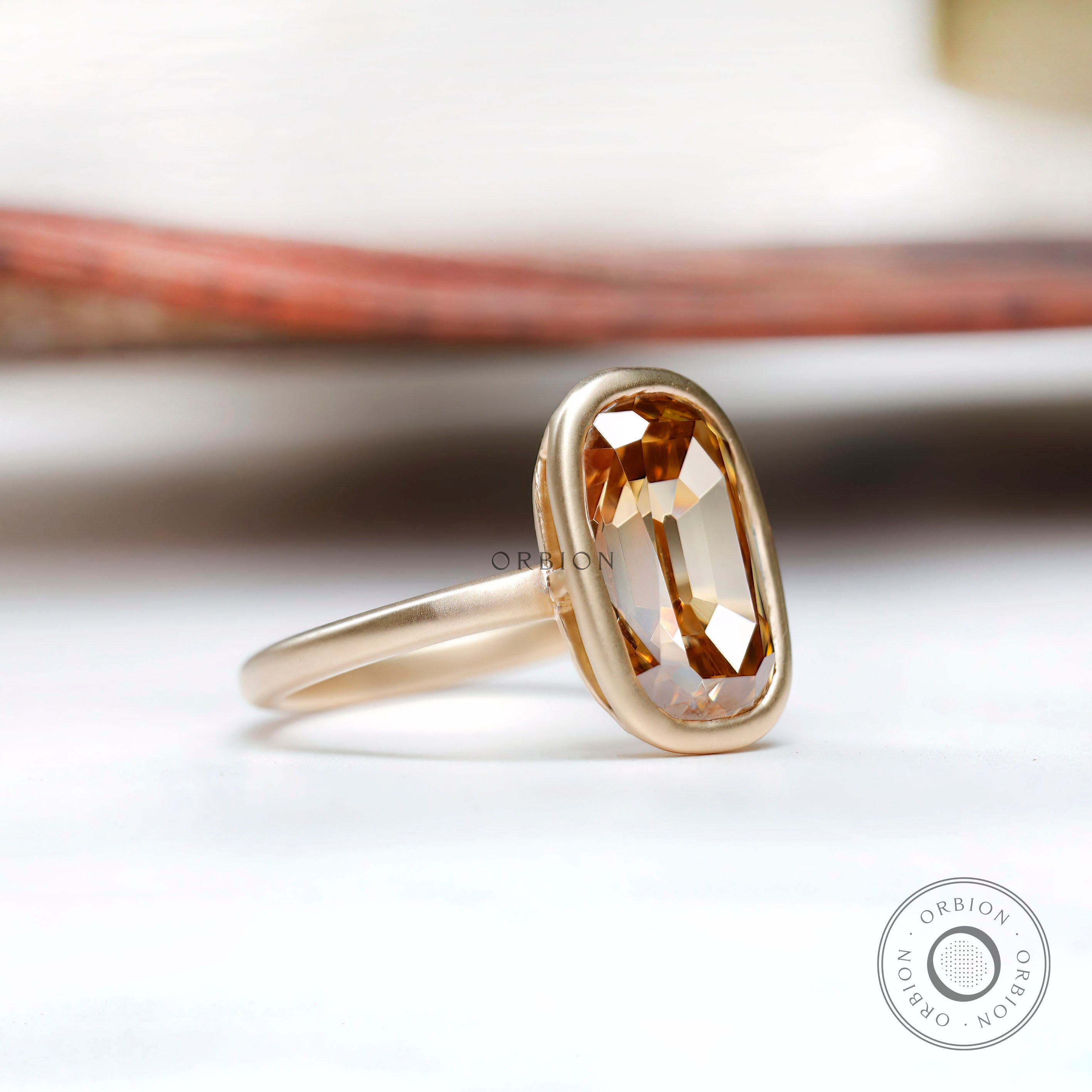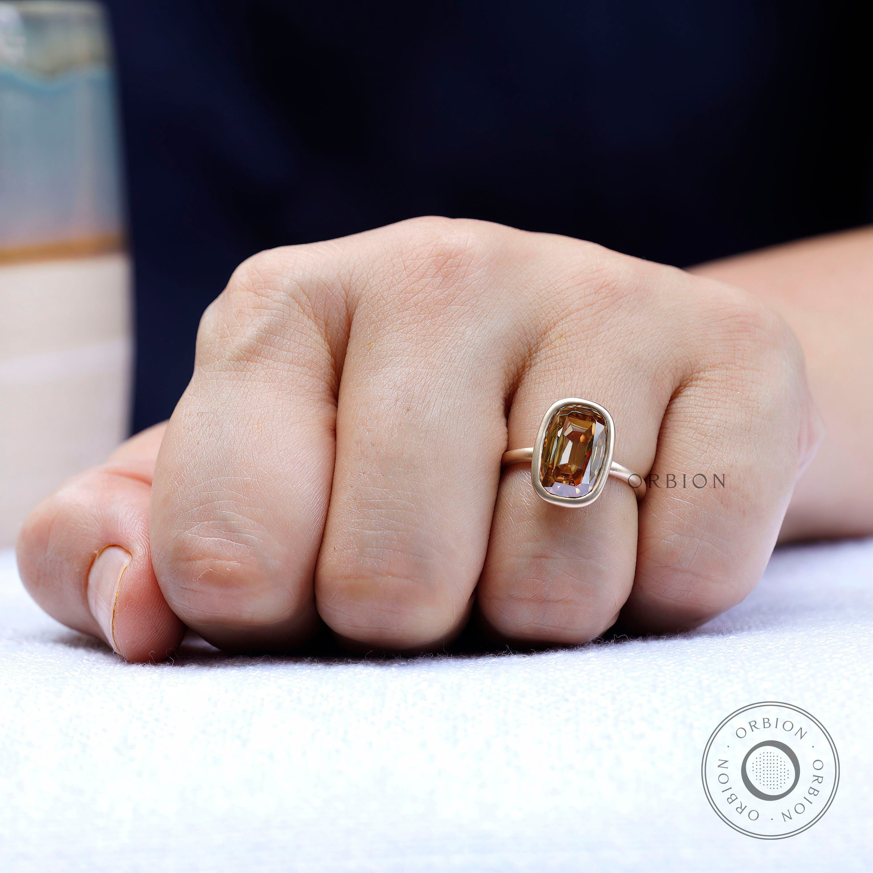 5.47 CT Old Mine Elongated Cushion Champagne Moissanite Engagement Ring, Smooth Matt Finish Bezel Set Ring, Antique Old Cut Ring, Vintage Engagement Ring, 10k/14k/18k Gold Ring, Bezel Set Champagne Ring, Wedding Ring, Handmade Jewelry, Unique Ring For Her, OMC Moissanite, Antique-Style Ring, Anniversary Gift, Proposal Ring, Solitaire Ring, Low Profile Ring, Classic Ring, Unique Large Rings