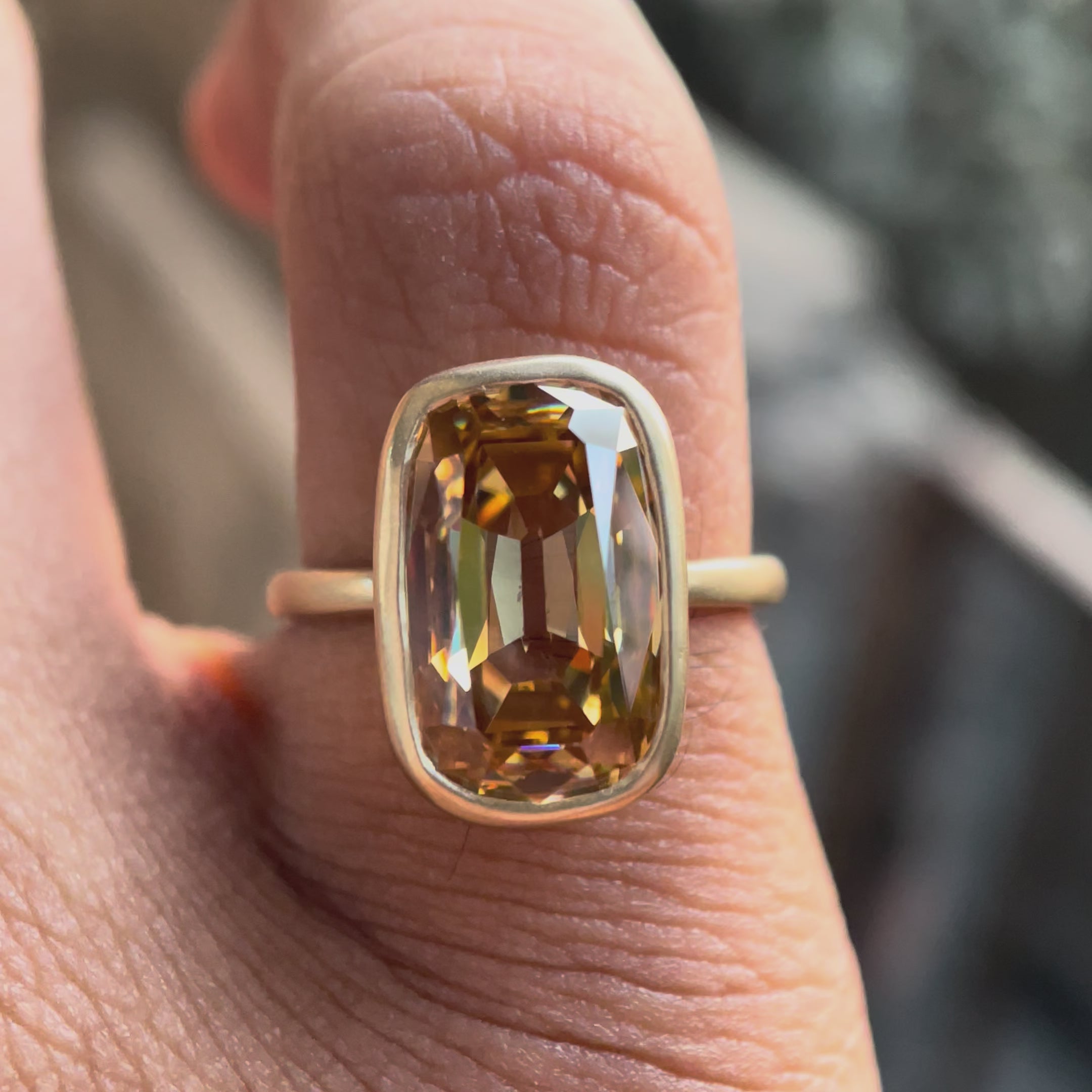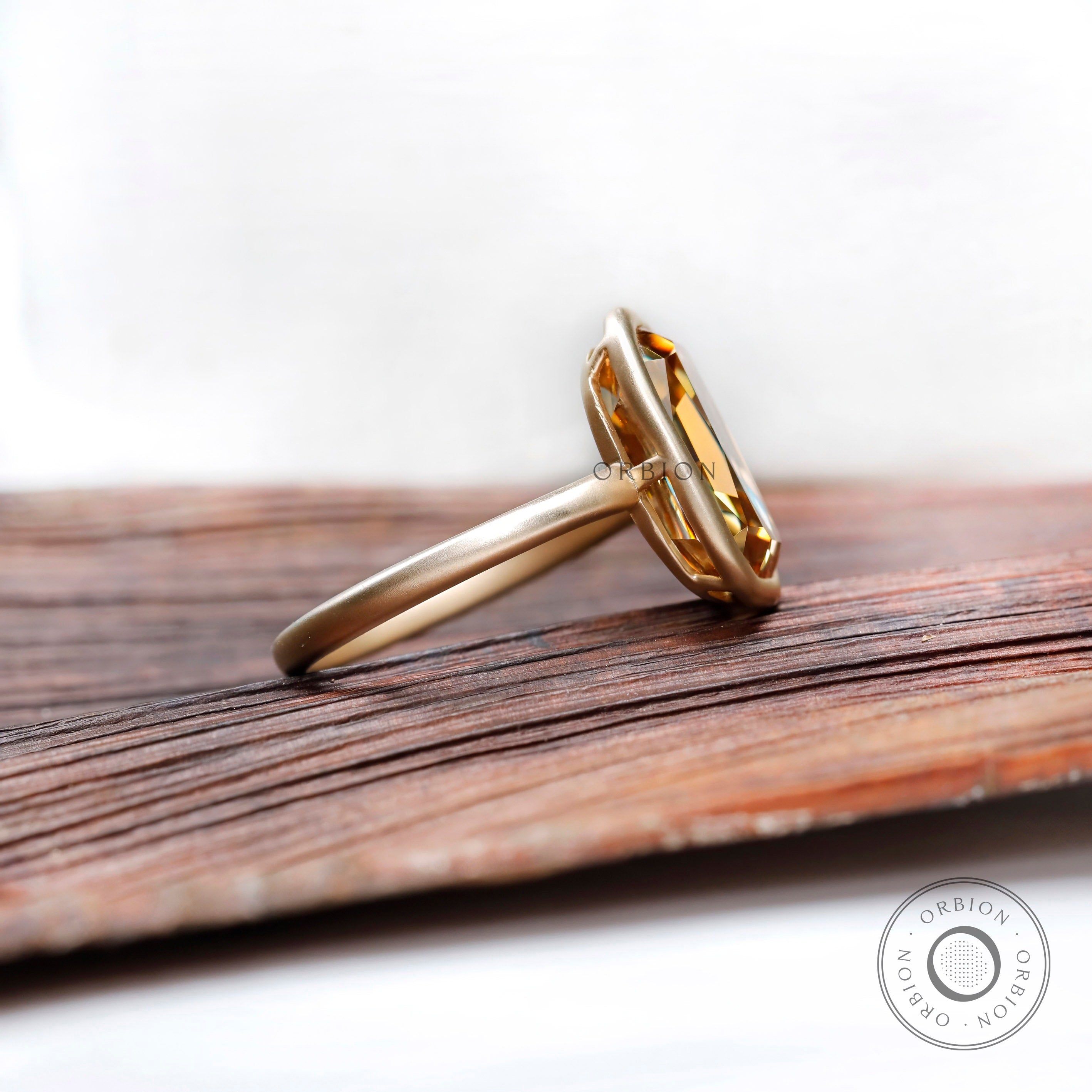 Elongated Cushion Champagne Moissanite Ring, Old Mine Cut Ring, Champagne Bezel Ring, Matt Finish Gold Ring, Antique Old Cut Ring