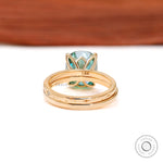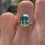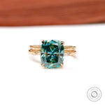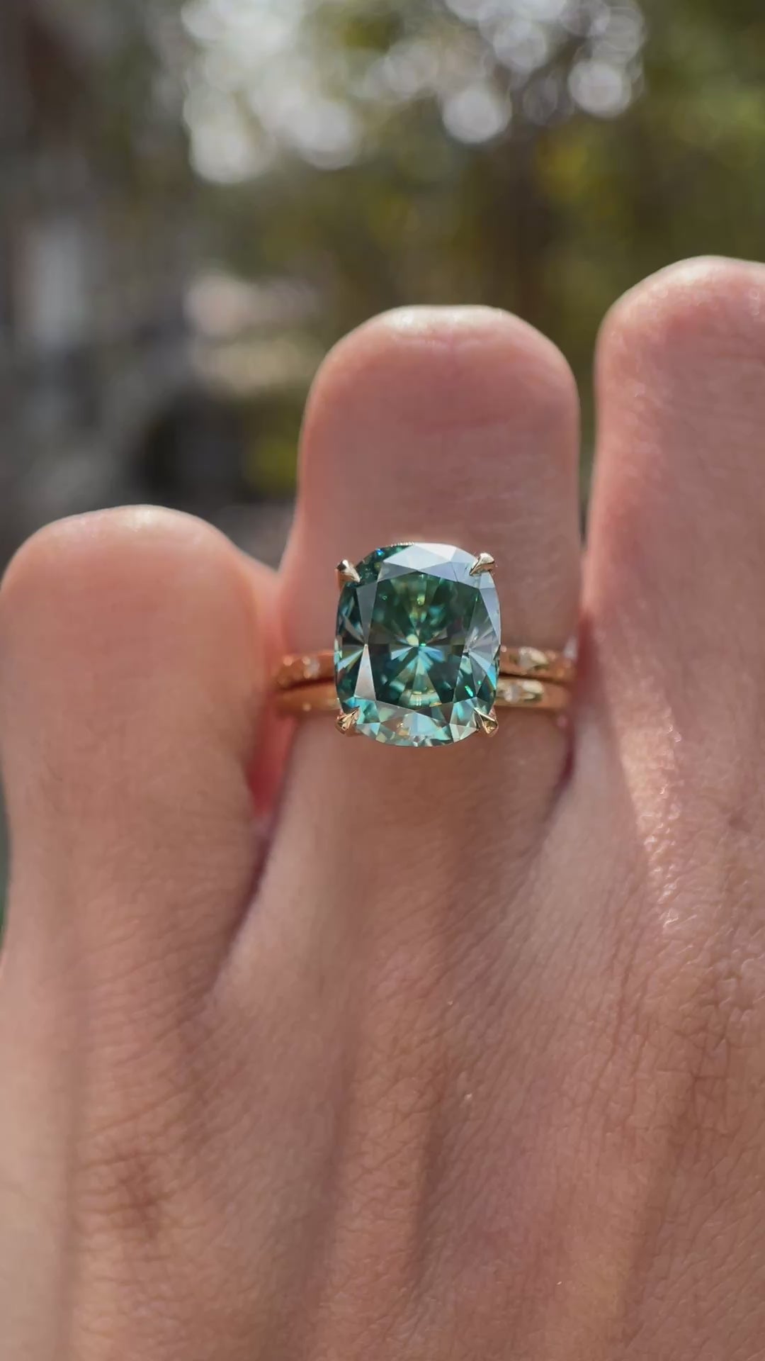 Elongated cushion blue green moissanite ring set, Engagement ring set, Bridal ring set, Stacking ring set, Teal moissanite ring set, Celestial jewelry, Cathedral shank ring, Tulip set ring, Moissanite ring set, Bridal shower gift, Classic solitaire rings, Antique Jewelry, Yellow gold ring set, Claw prong rings, Stacking matching band set, Promise rings for her, Anniversary gift