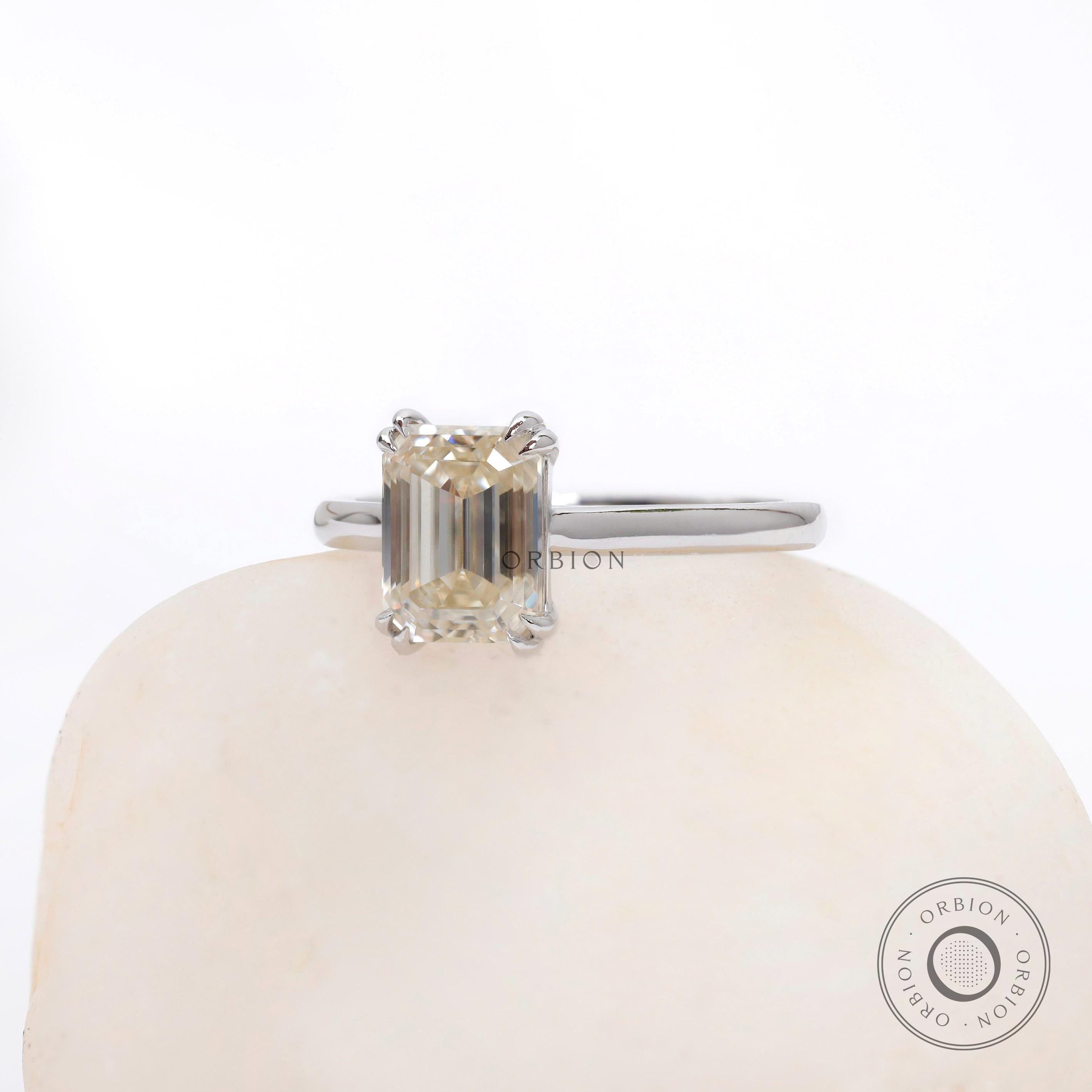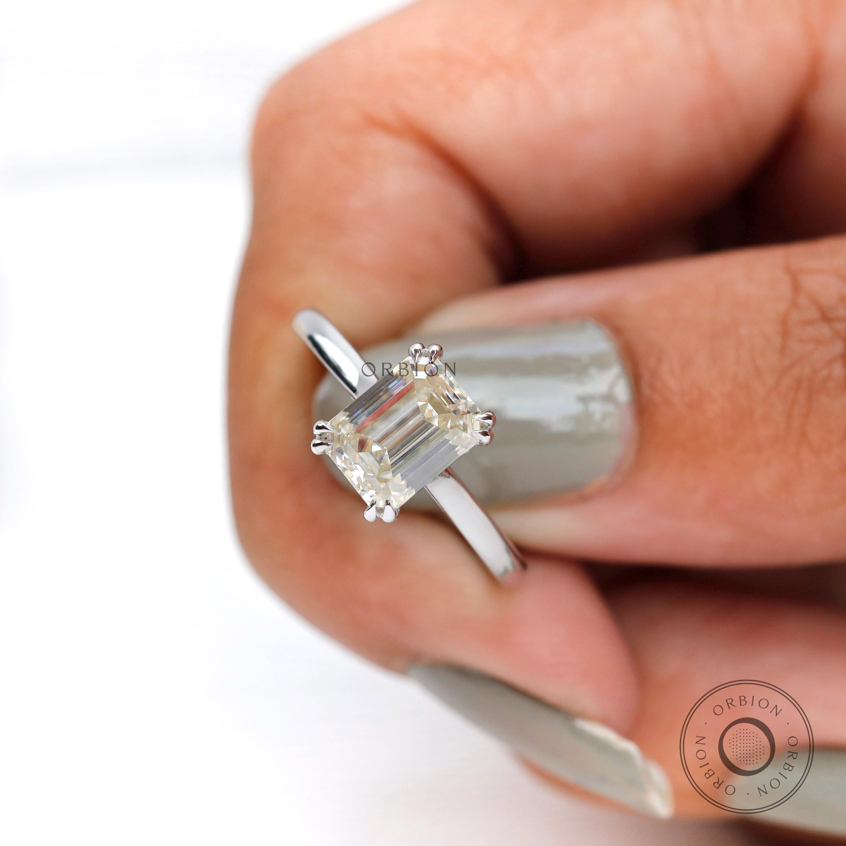 1.9 CT Emerald Cut Off White Color Moissanite Ring, Step Cut Engagement Ring, GHI Color Moissanite Ring, Double Claw Prong Ring, 10k/14k/18k Solid White Gold Ring, Solitaire Ring For Women, Emerald Cut Wedding Ring, Promise Ring For Her, Proposal Ring For Women, Anniversary Ring, Bridesmaid Gift