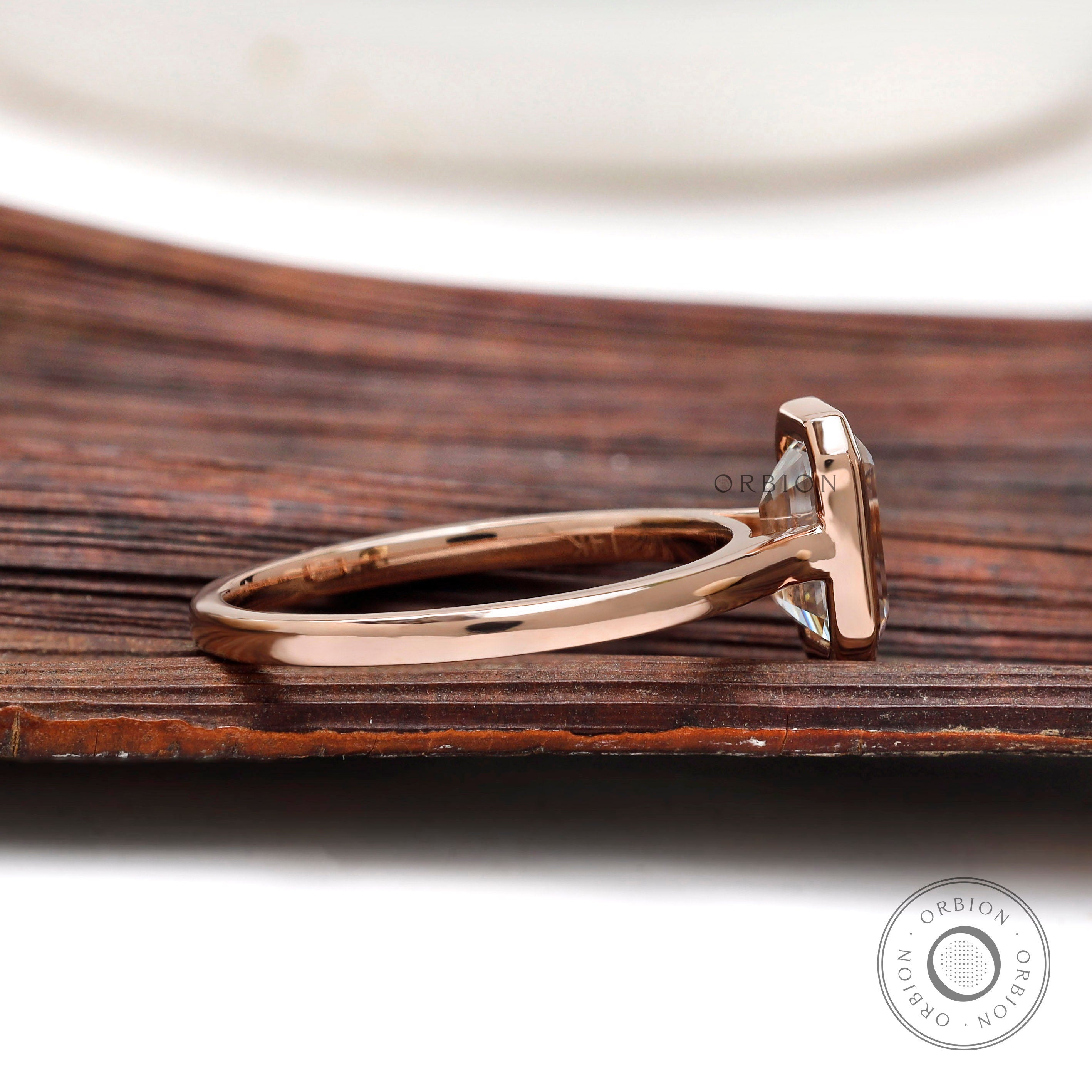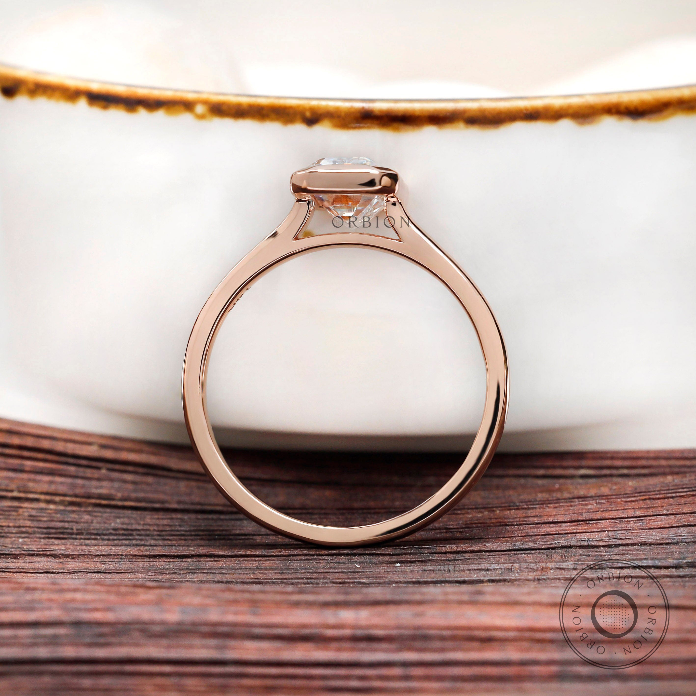 14K Solid Rose Gold Emerald Cut Moissanite Ring, Unique Bezel Set Engagement Ring, Delicate Ring Gold, Handmade Ring, Emerald Cut Gold Ring, Anniversary Ring, Proposal Ring, Promise Ring For Her, Daily Wear Ring, Statement Ring, Bridal Ring For Women
