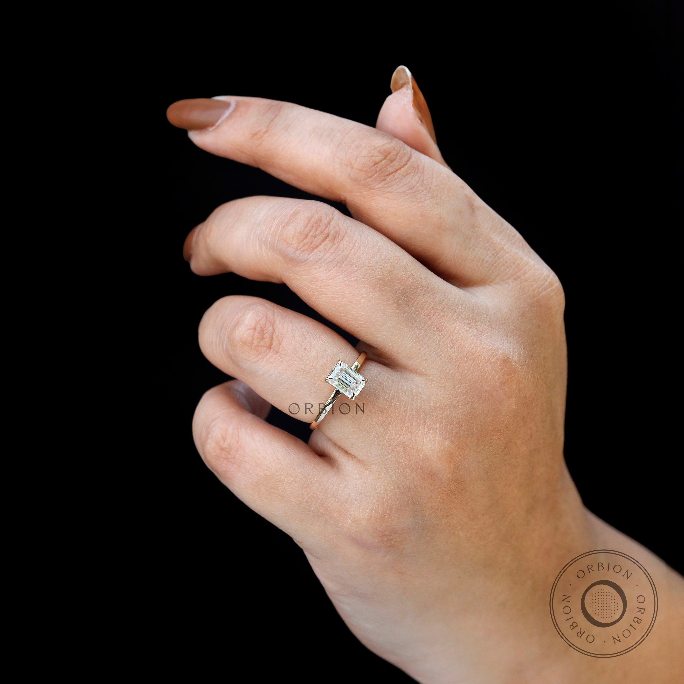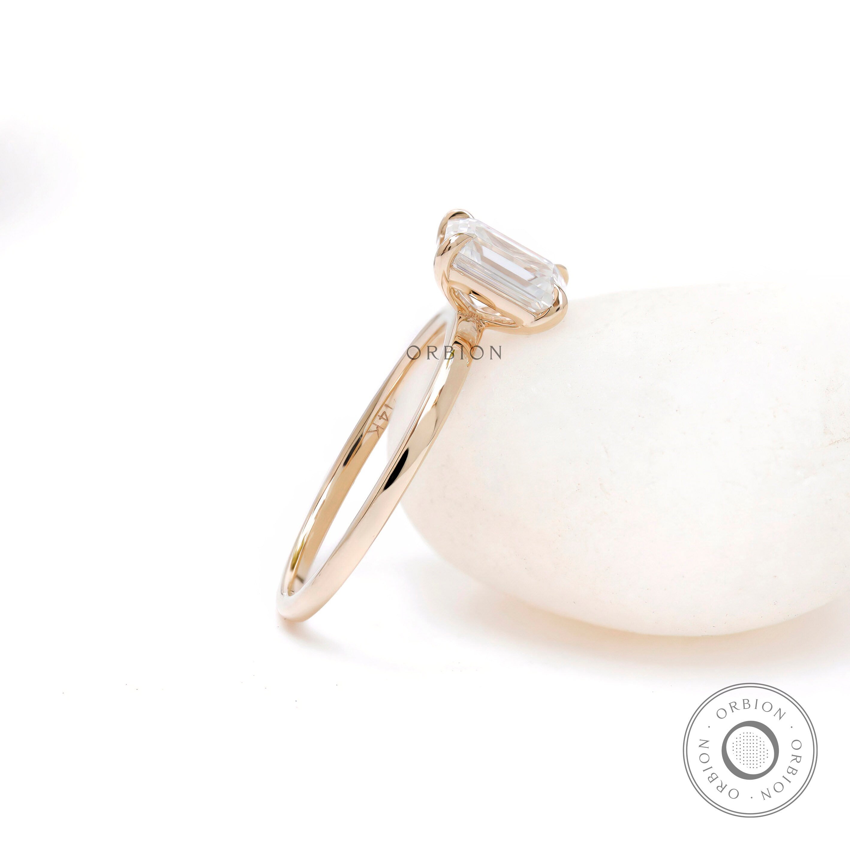 Emerald Cut Moissanite Ring, Emerald Cut Engagement Ring, Martini Basket Set Ring, 1ct Moissanite Ring, Claw Prong Ring, Dainty Stone Ring