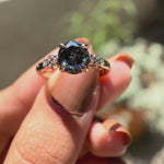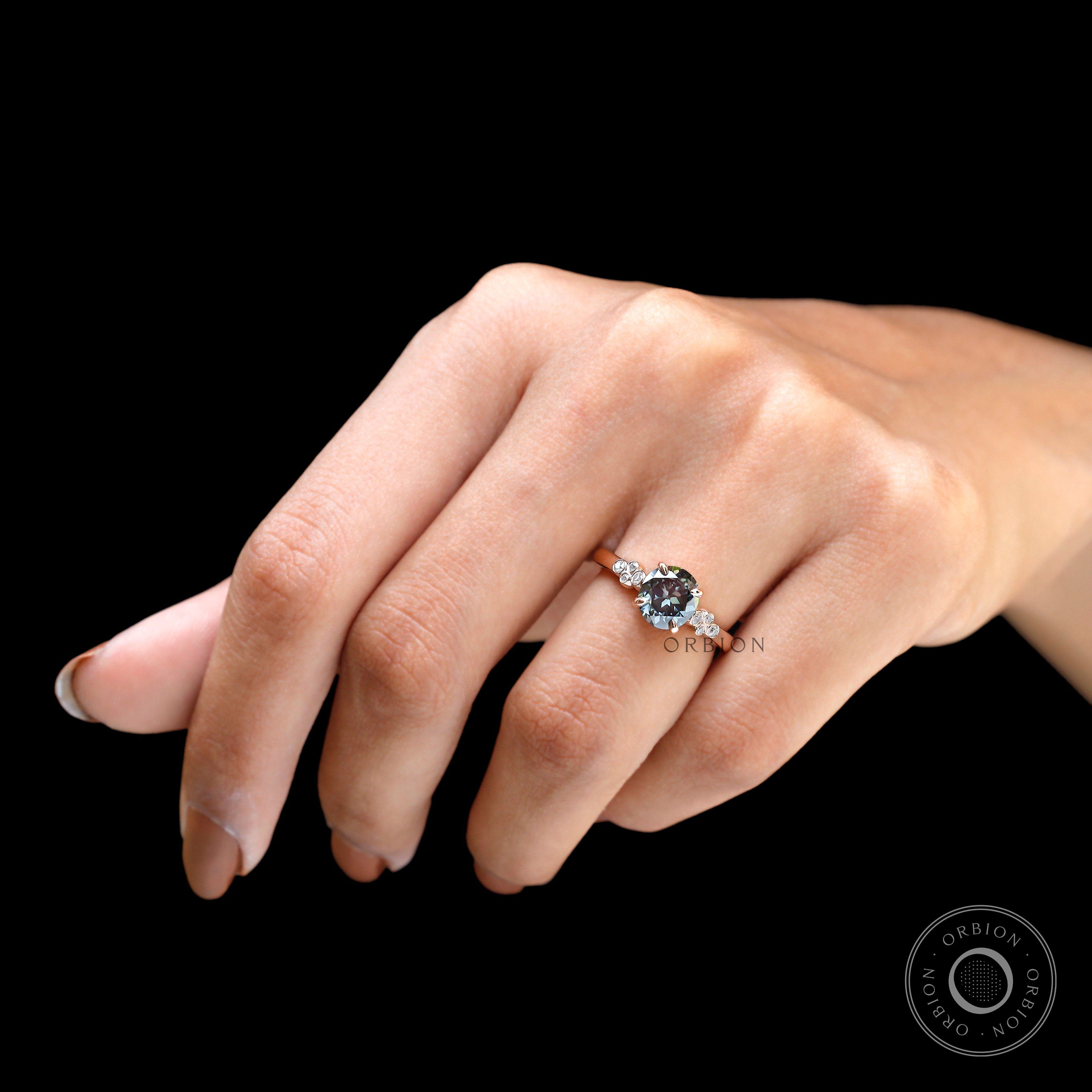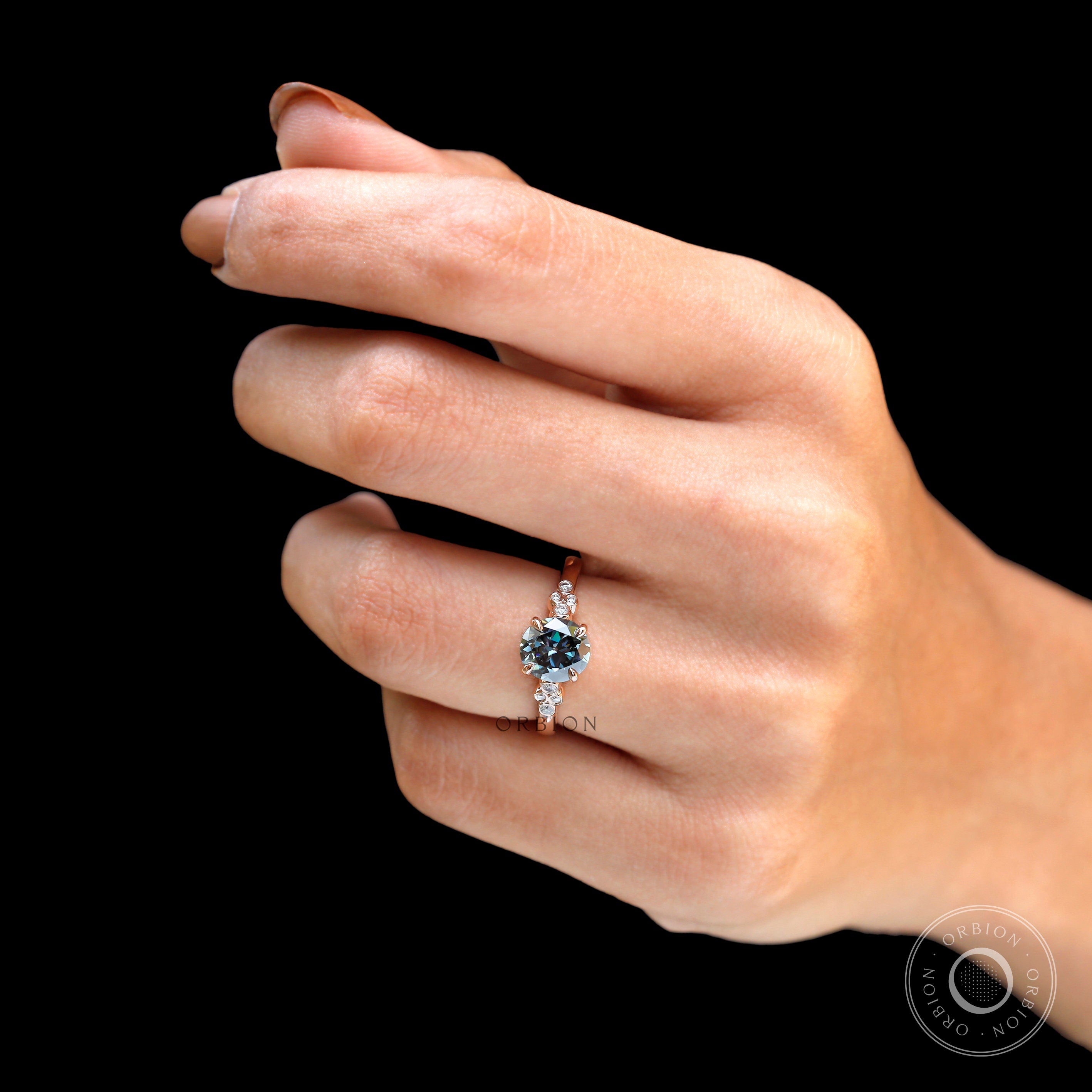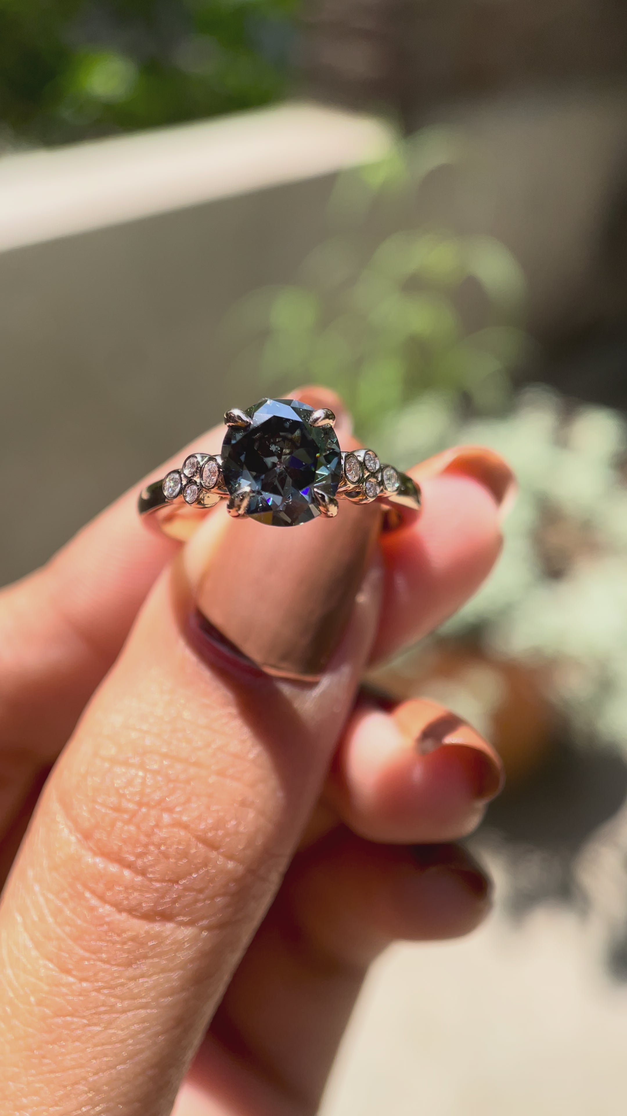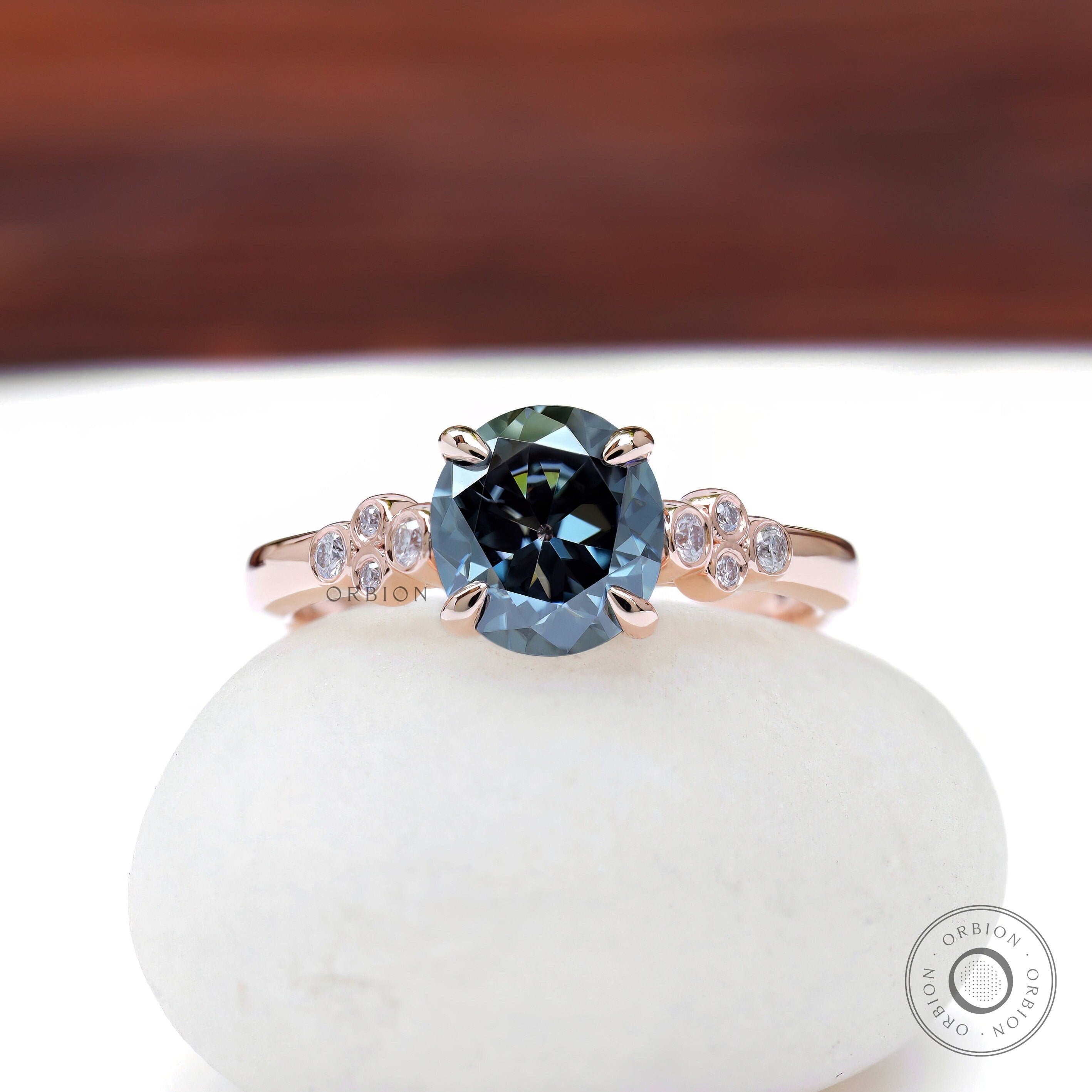 Grey engagement ring, Grey moissanite ring, Elongated moissanite ring, 14k Rose gold ring, Old european cut grey moissanite, Gold ring for her, Wedding ring, Handmade jewelry, Claw prong setting ring, OEC moissanite collection, Anniversary gift, Gift for her, Promise ring, Proposal ring, Round moissanite side stone, Dark grey moissanite ring