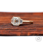 Exquisite Double Claw Prong Three Stone Ring in Yellow Gold - Unique Step Cut Gemstone Design, Vintage-Inspired Asscher Moissanite Ring