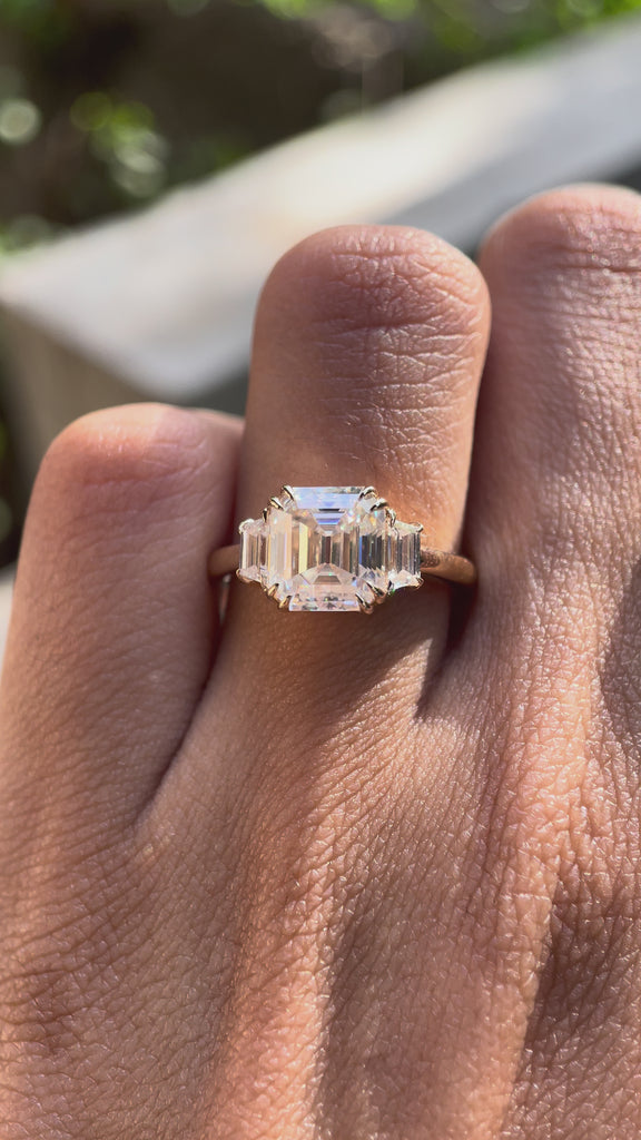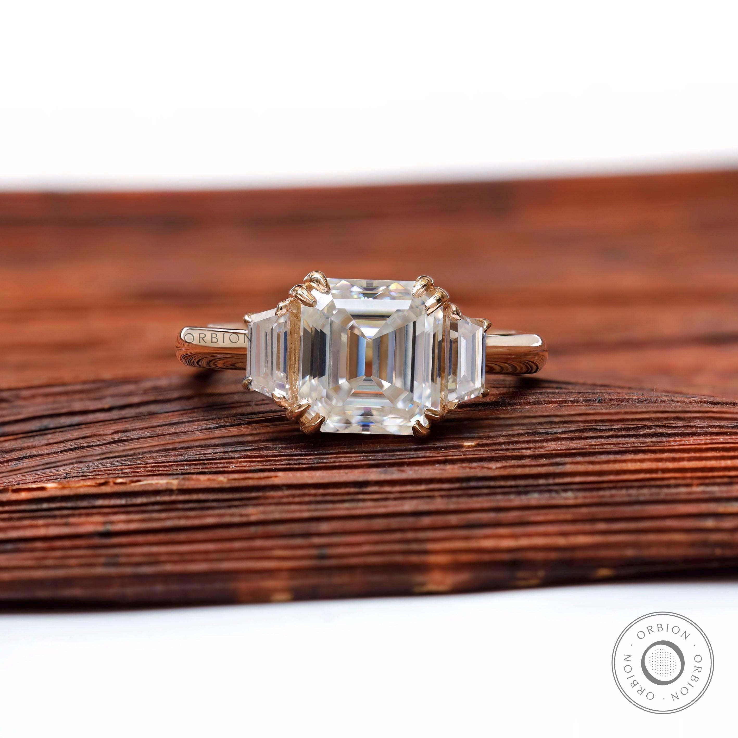 OMC Asscher Moissanite Three Stone Ring, Trapezoid Side Stone Ring, Double Claw Prong Set Ring, Heirloom Jewelry, Heirloom Engagement Rings, 10k/14k/18k Solid Gold Ring, Old Cut Three Stone Ring, Three Stone Engagement Ring, Wedding Ring Women, Anniversary Ring For Her, Three Stone Bridal Ring, Gift For Her