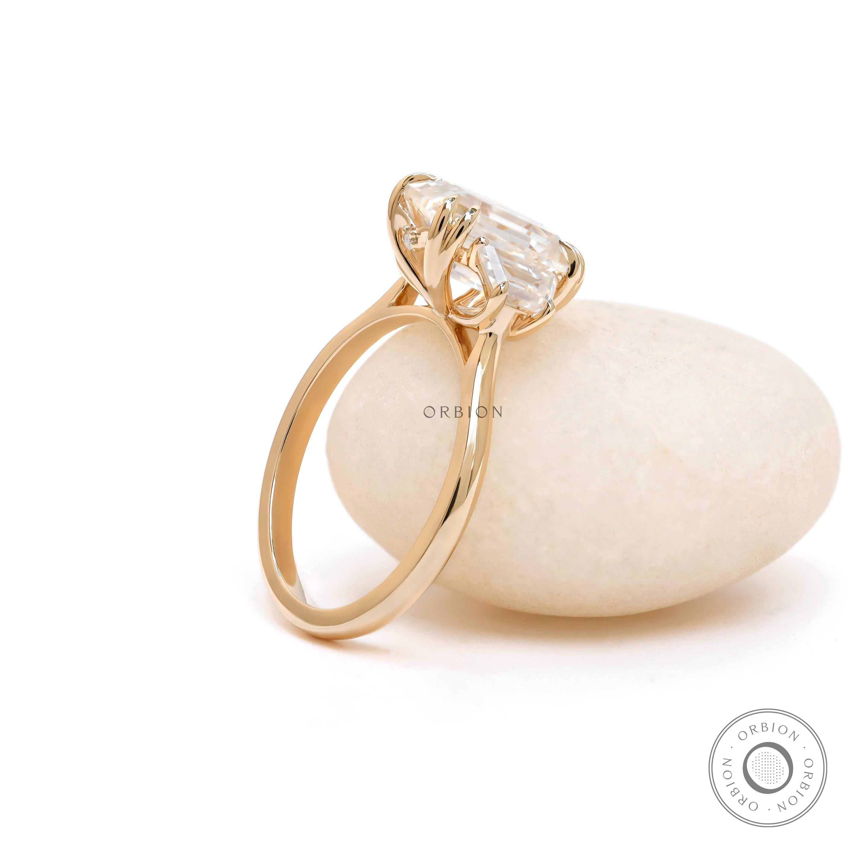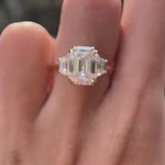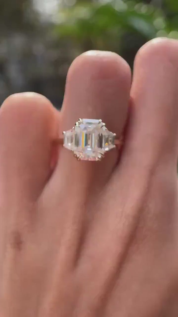 Trilogy Engagement Ring, 3 Stone Emerald Cut Ring, Three Stone Moissanite Ring, 14k Gold Ring, Wedding Ring, Handmade Jewelry, Double Prong Ring, Emerald Cut Ring, Three Stone Ring, Anniversary Gift, Trapezoid Side Stone Ring, Anniversary Gift For Women, Rose Gold Ring, Proposal Ring, Promise Ring, Step Cut Ring, 3 Stone Ring, Diamond like Moissanite Ring.