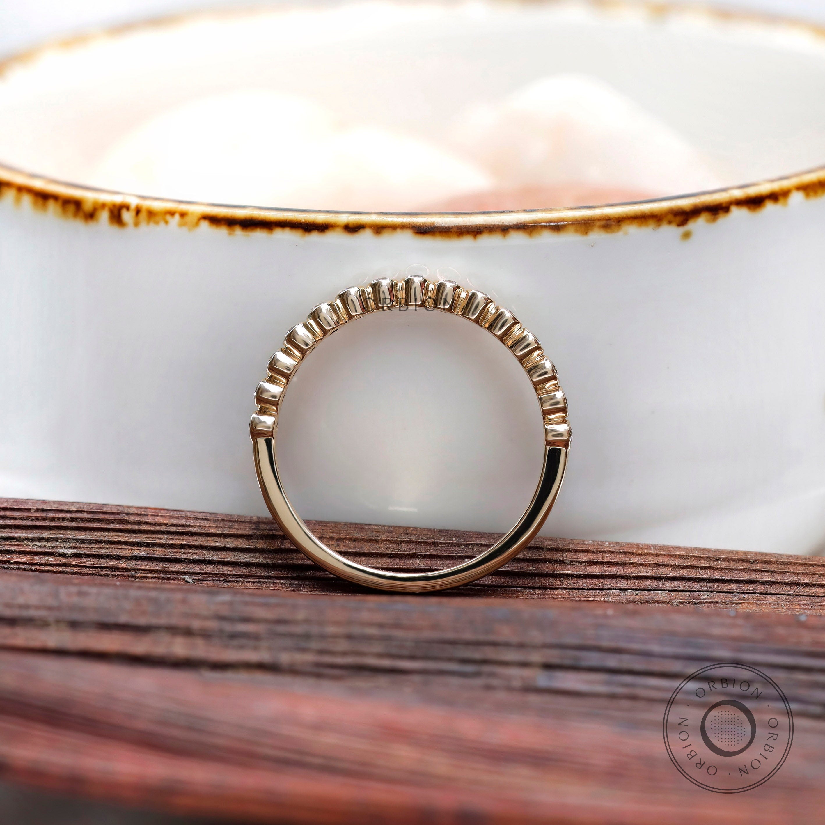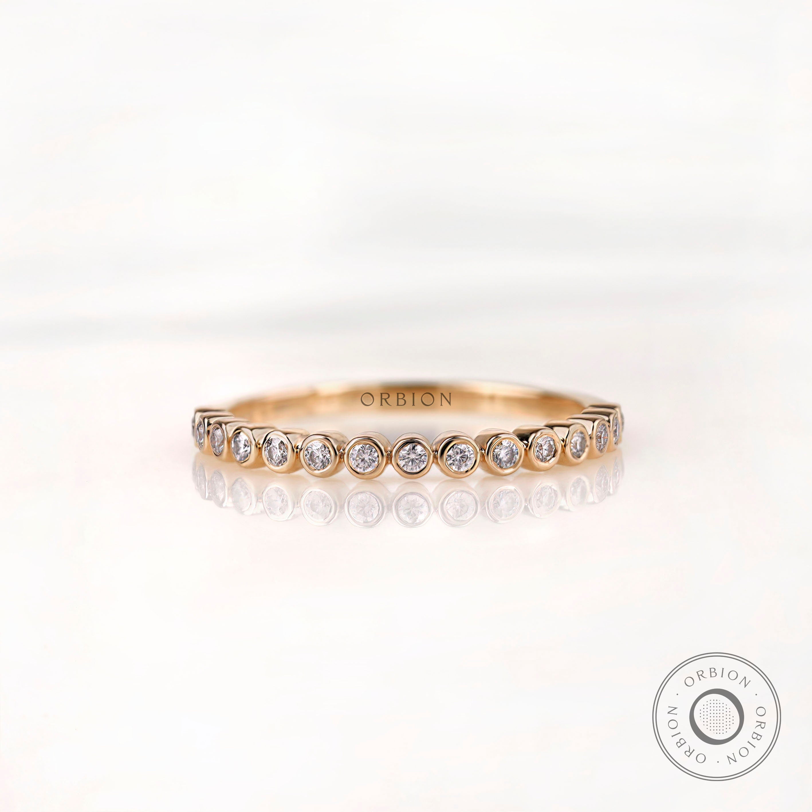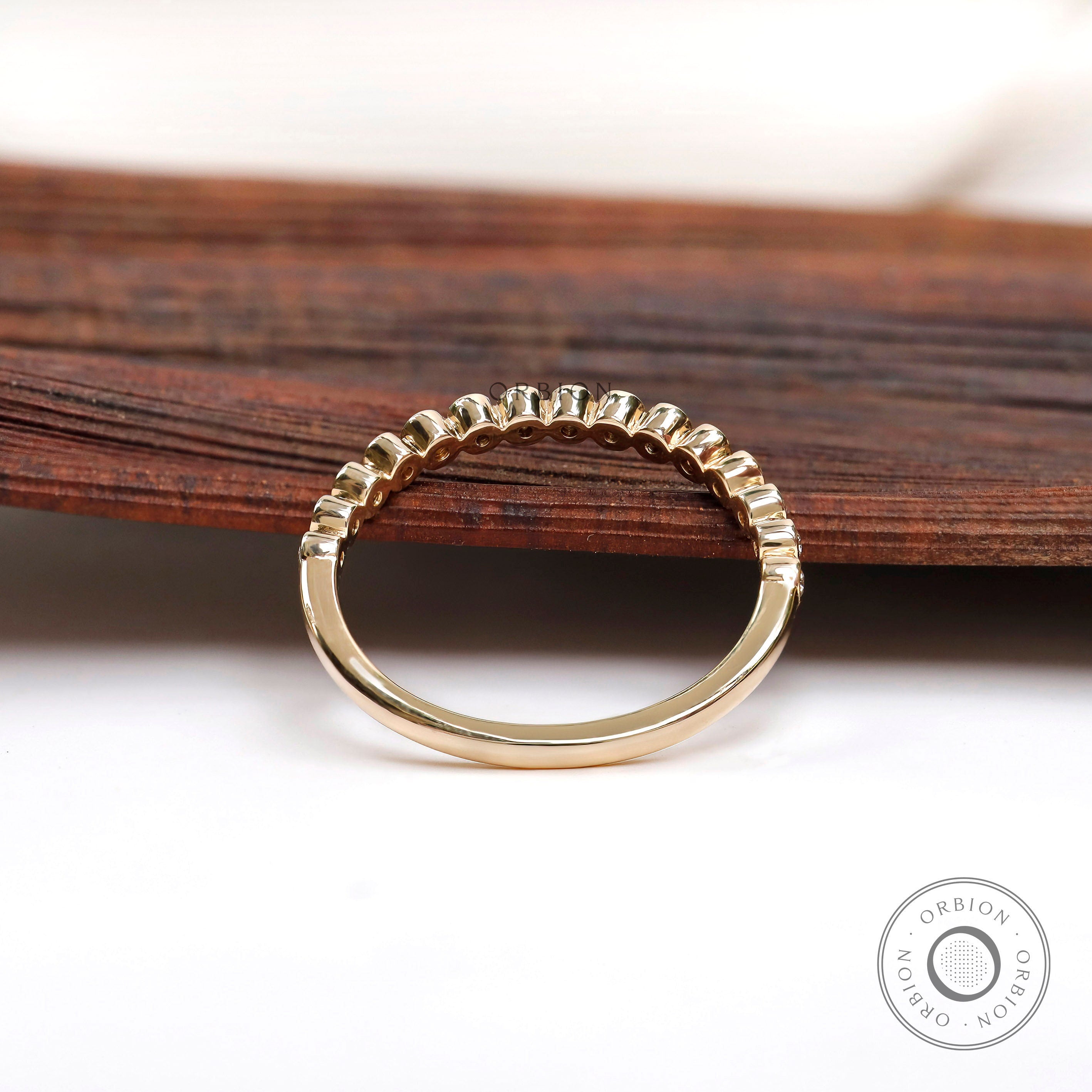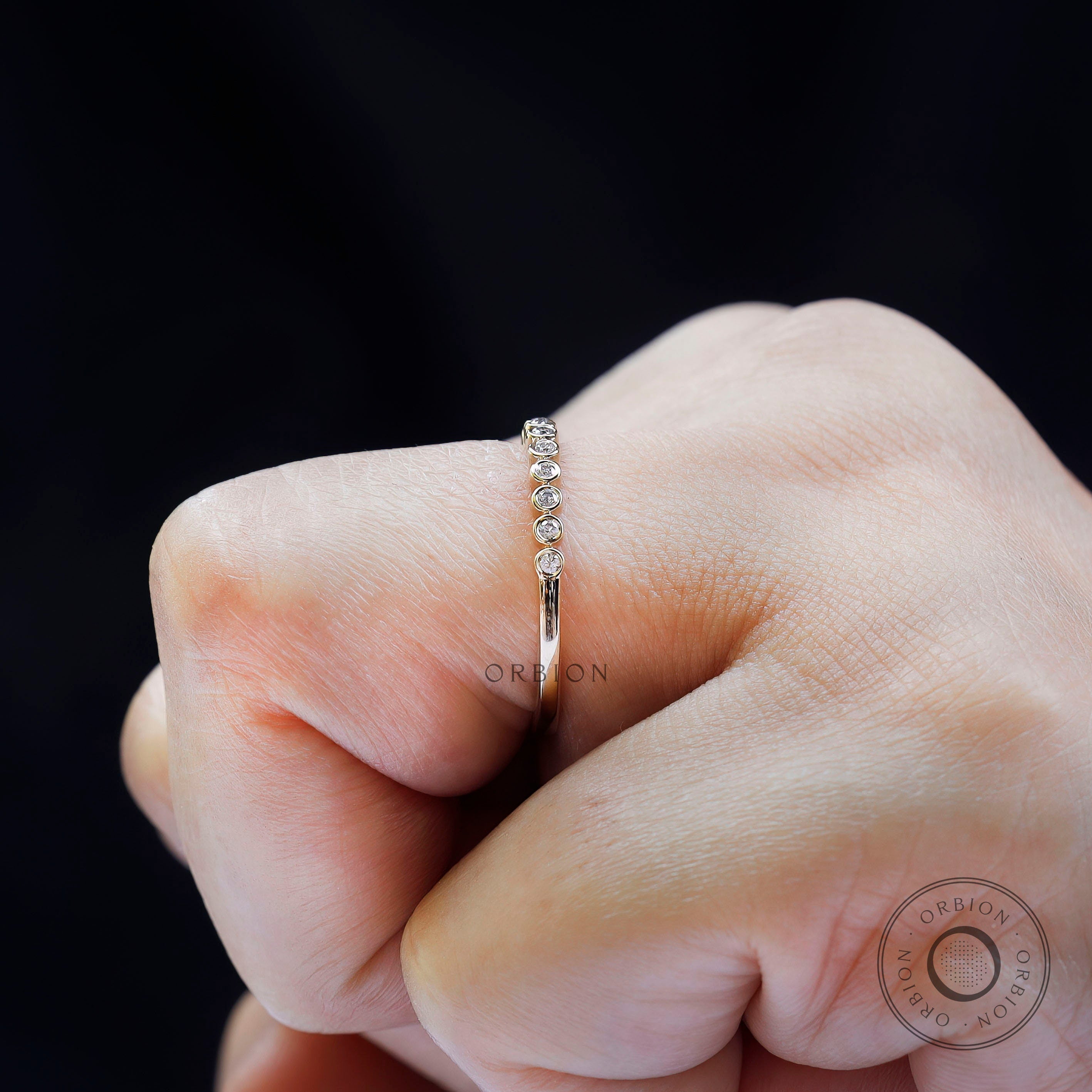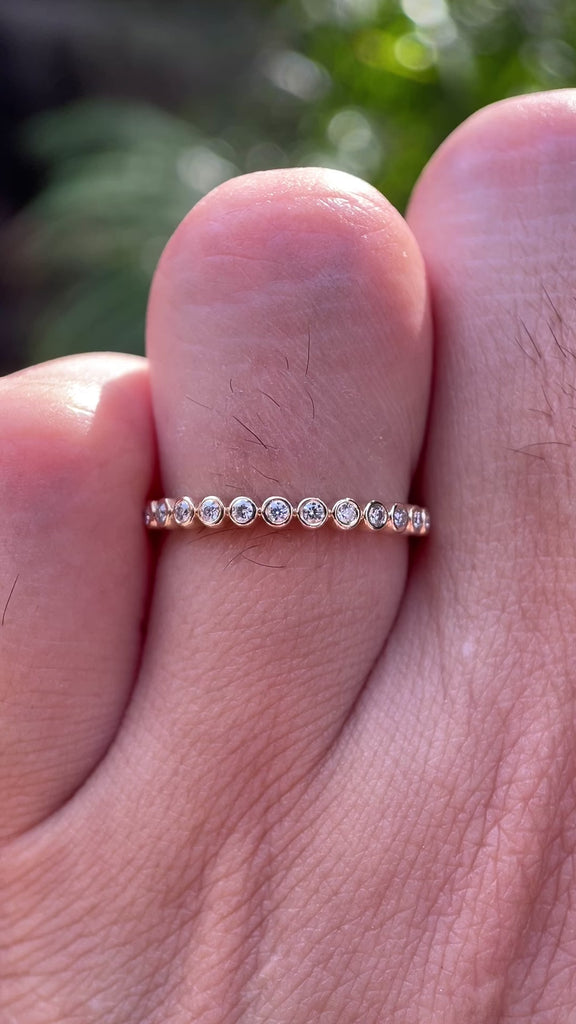 1.3 MM Round Moissanite Bezel Set Wedding Band, Lab Diamond Band, Minimalist Half Eternity Matching Band, Vintage Thin Gold Wedding Band Women, Dainty Moissanite Ring, Delicate Wedding Band, Wedding Band Women, Dainty Stacking Band