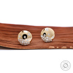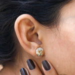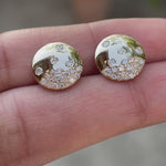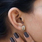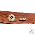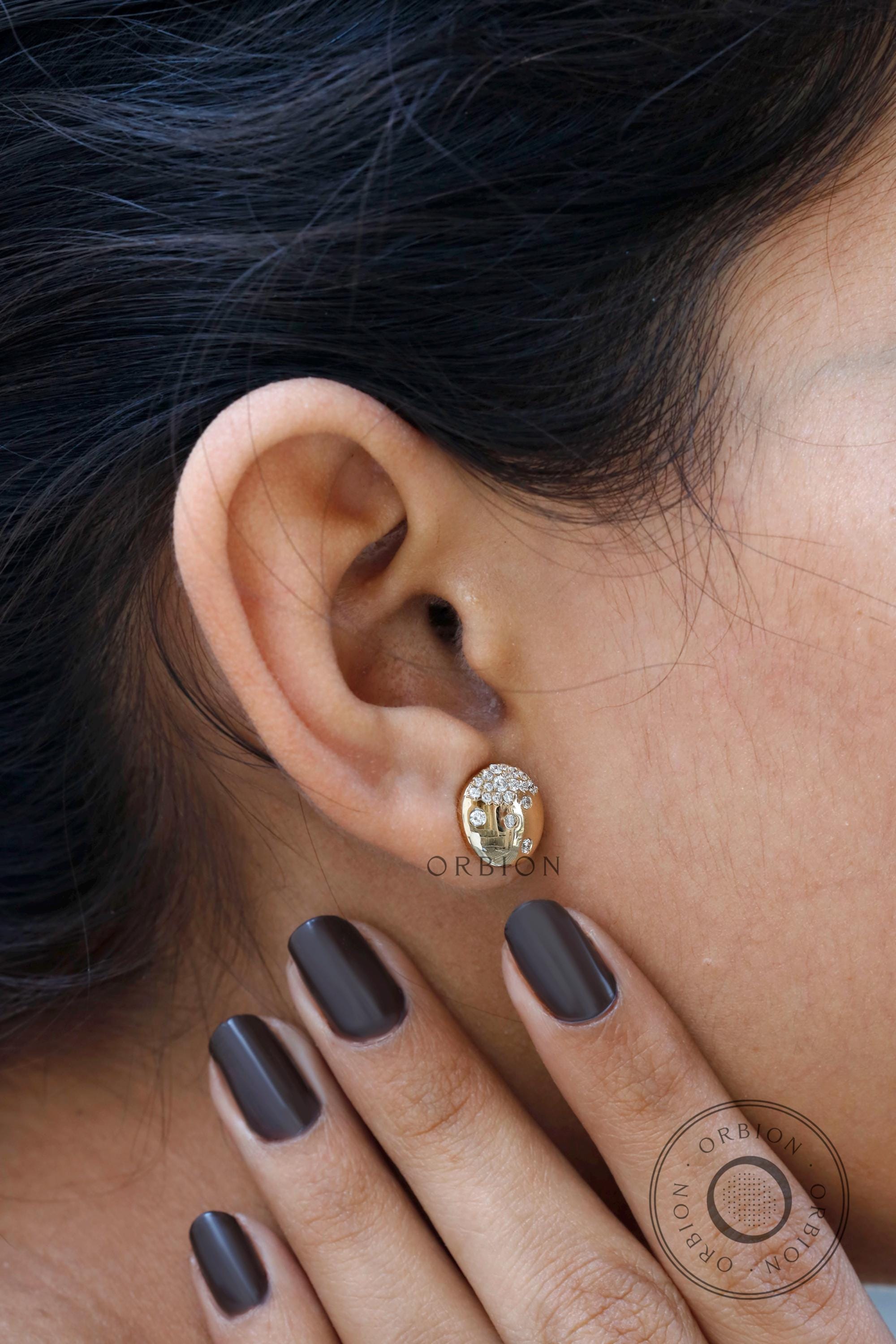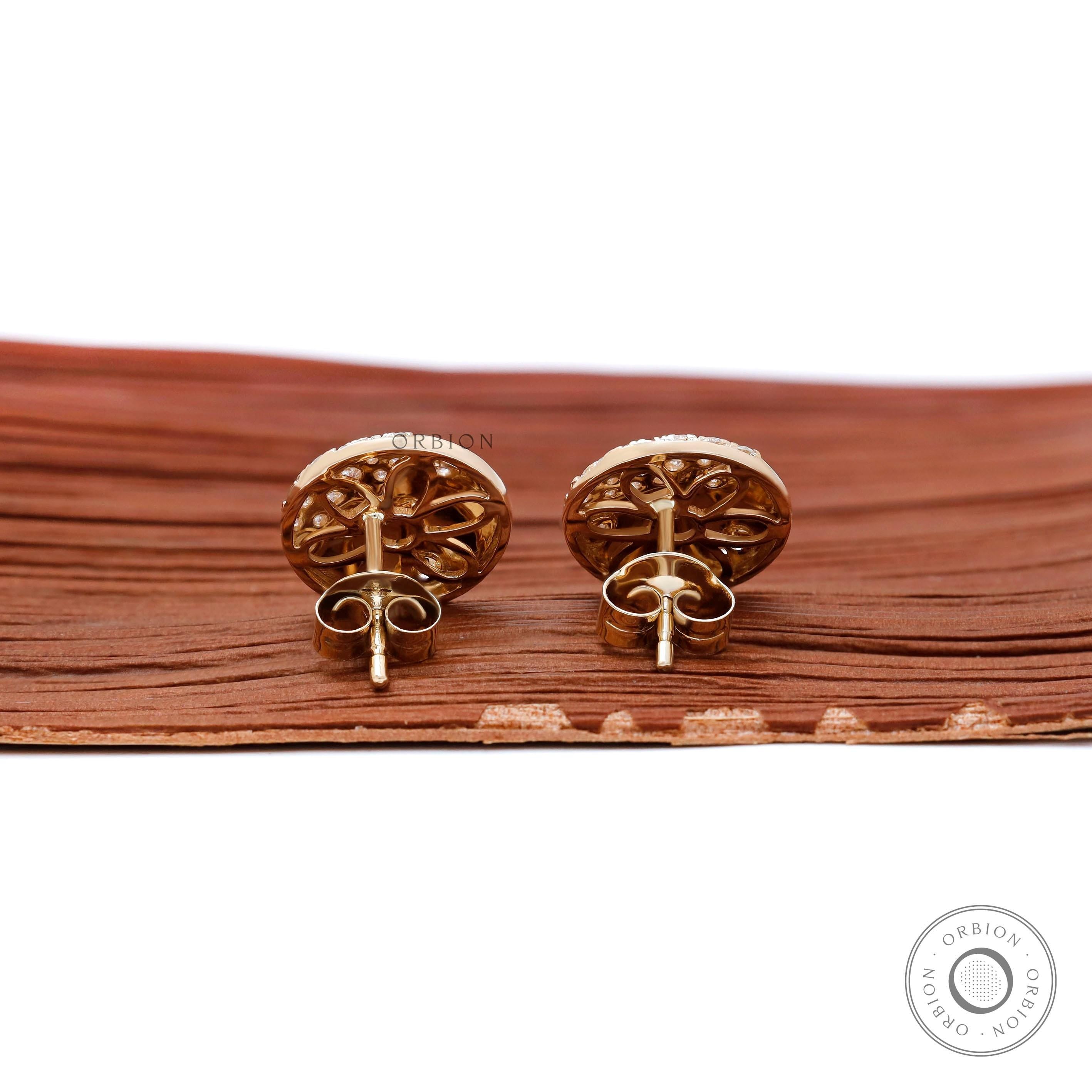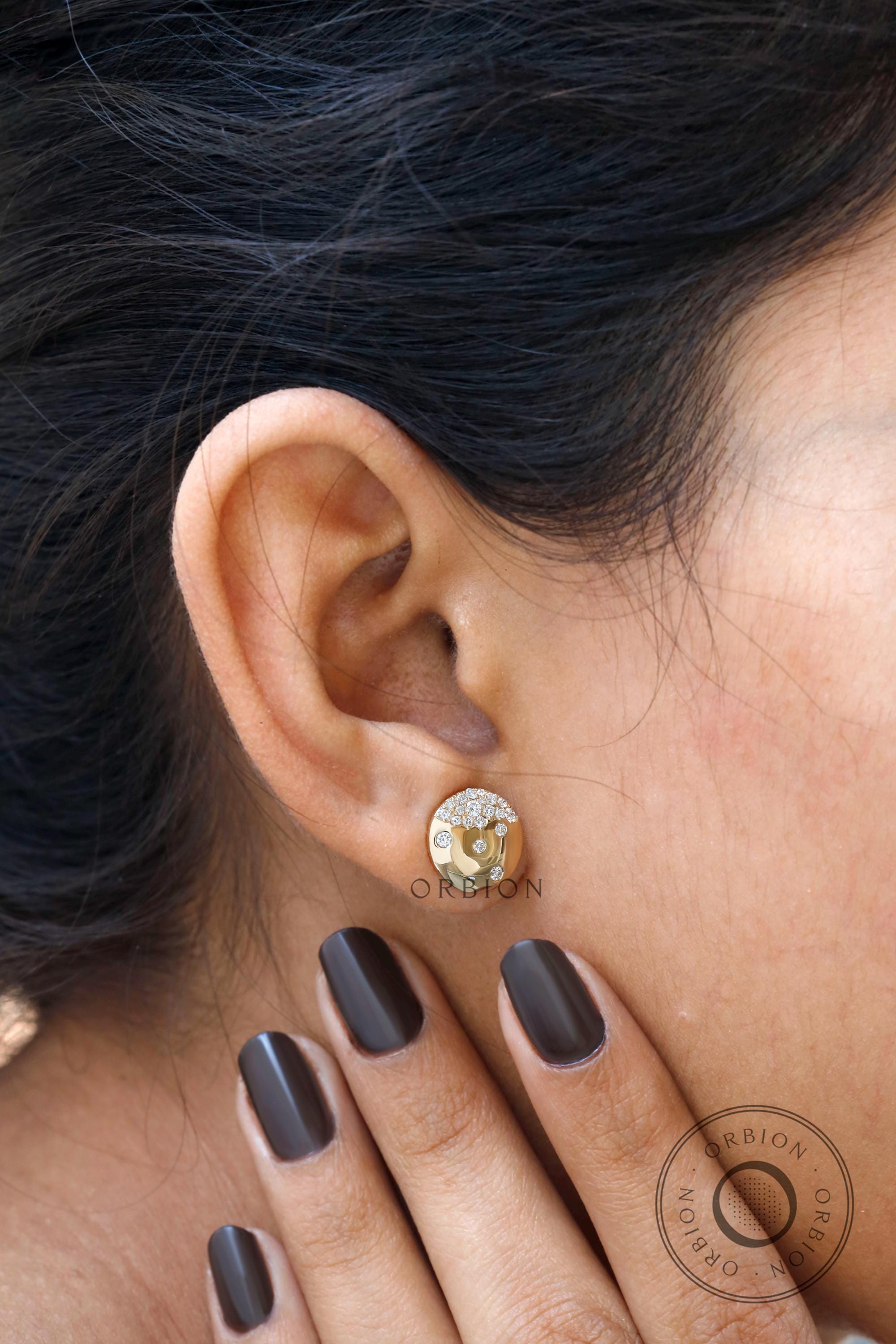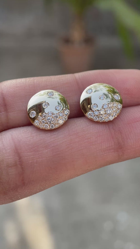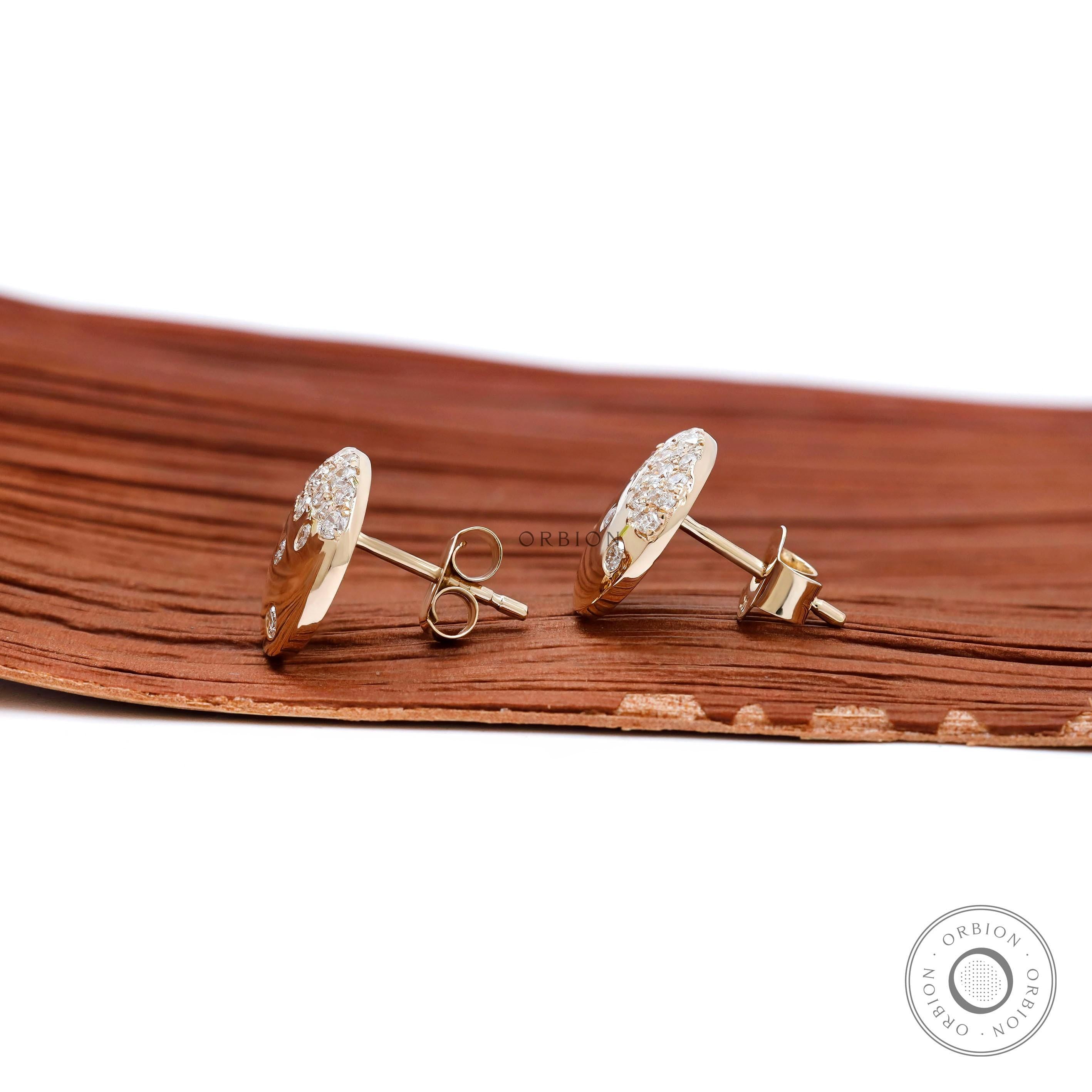 Flush Set Scattered Diamond Disc Stud Earrings, Unique Lab Grown Pushback Confetti Diamond Earrings, Solid Yellow Gold Snowfall Earrings