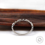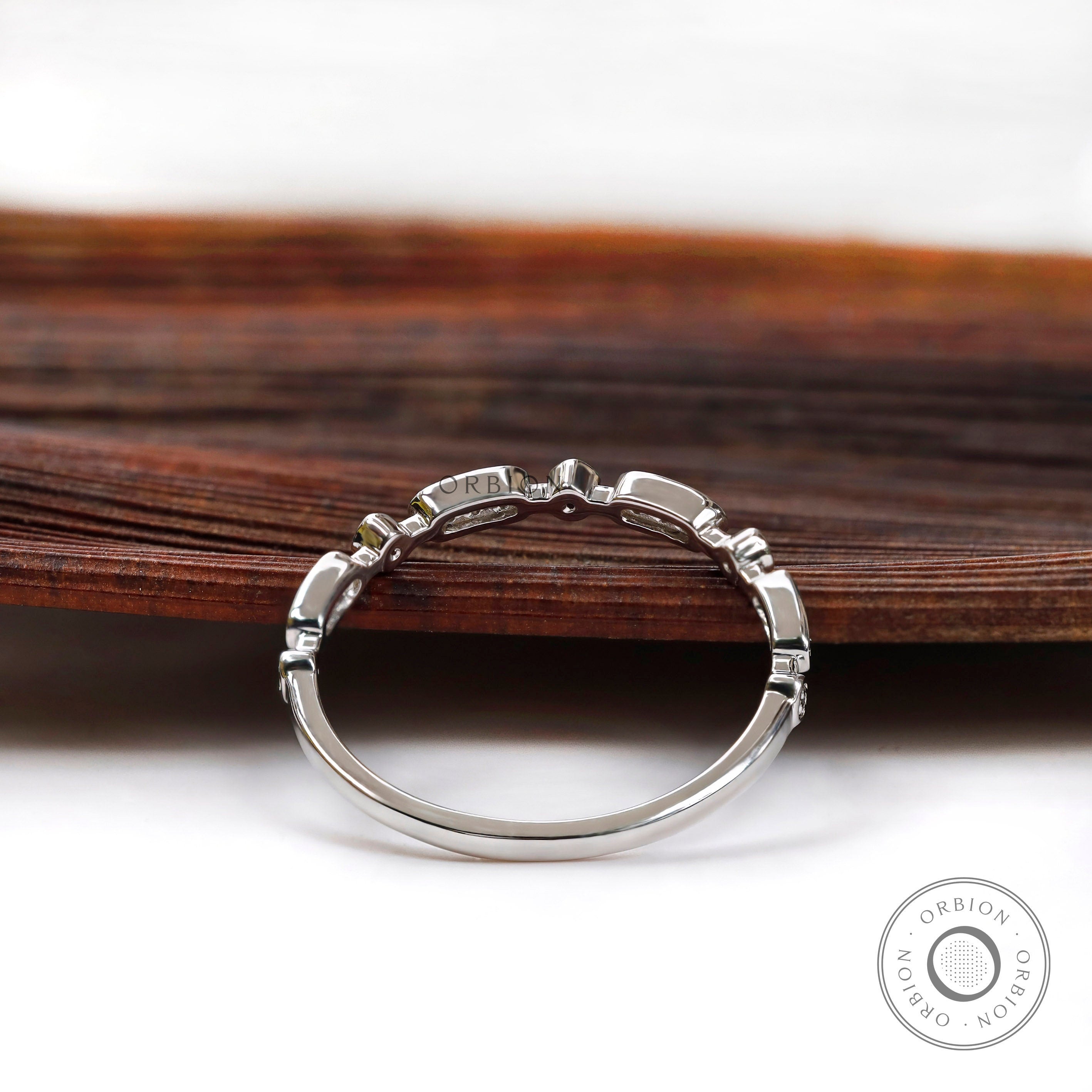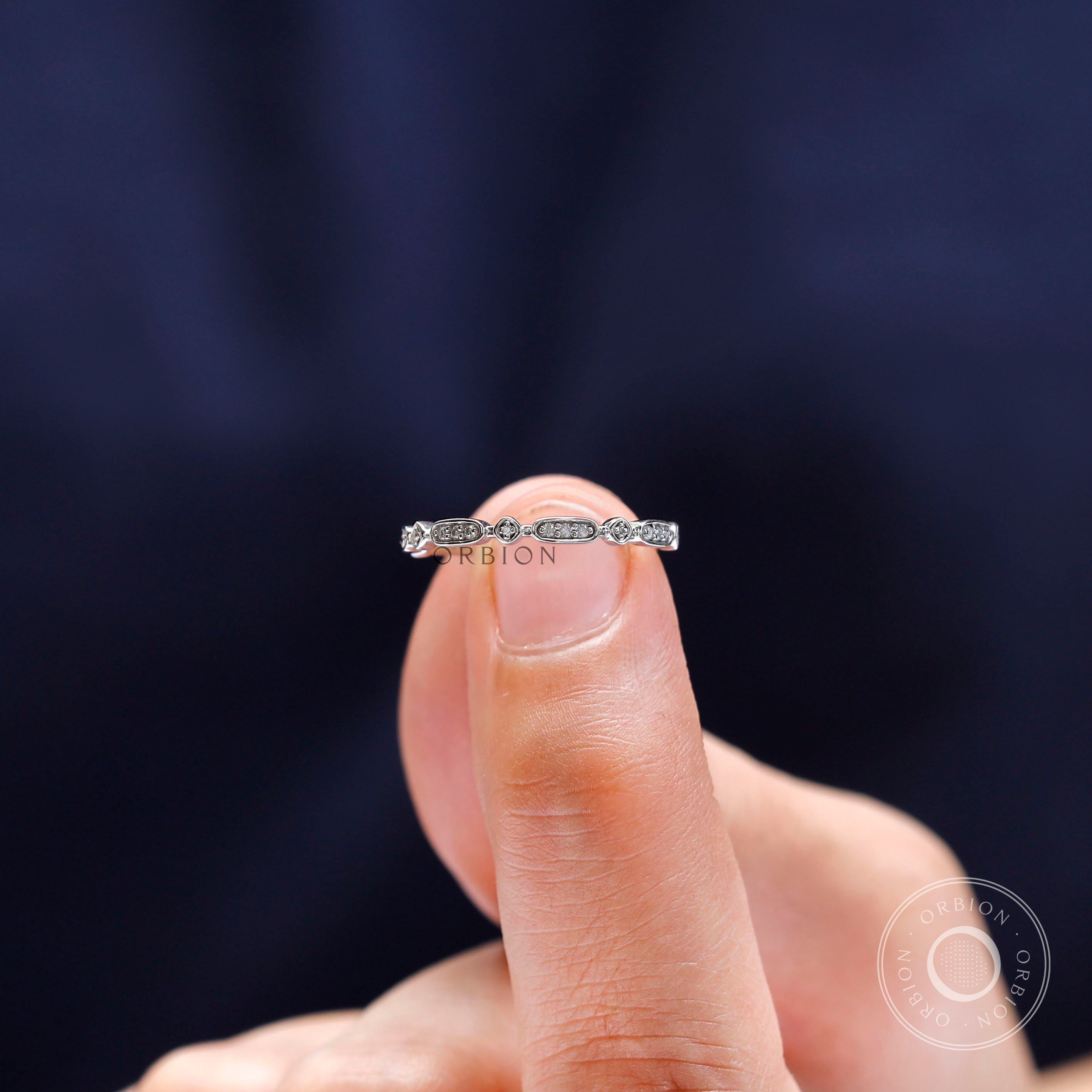 Geometric Moissanite Wedding Band, 14K White Gold Antique Wedding Band, Thin Stacking Band, Dainty Diamond Band, Minimalist Band Ring