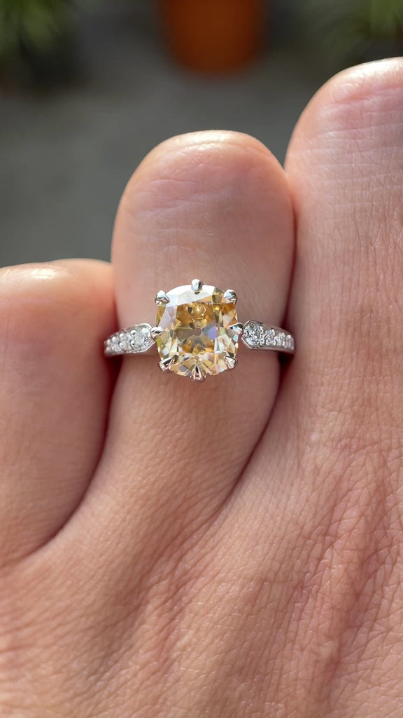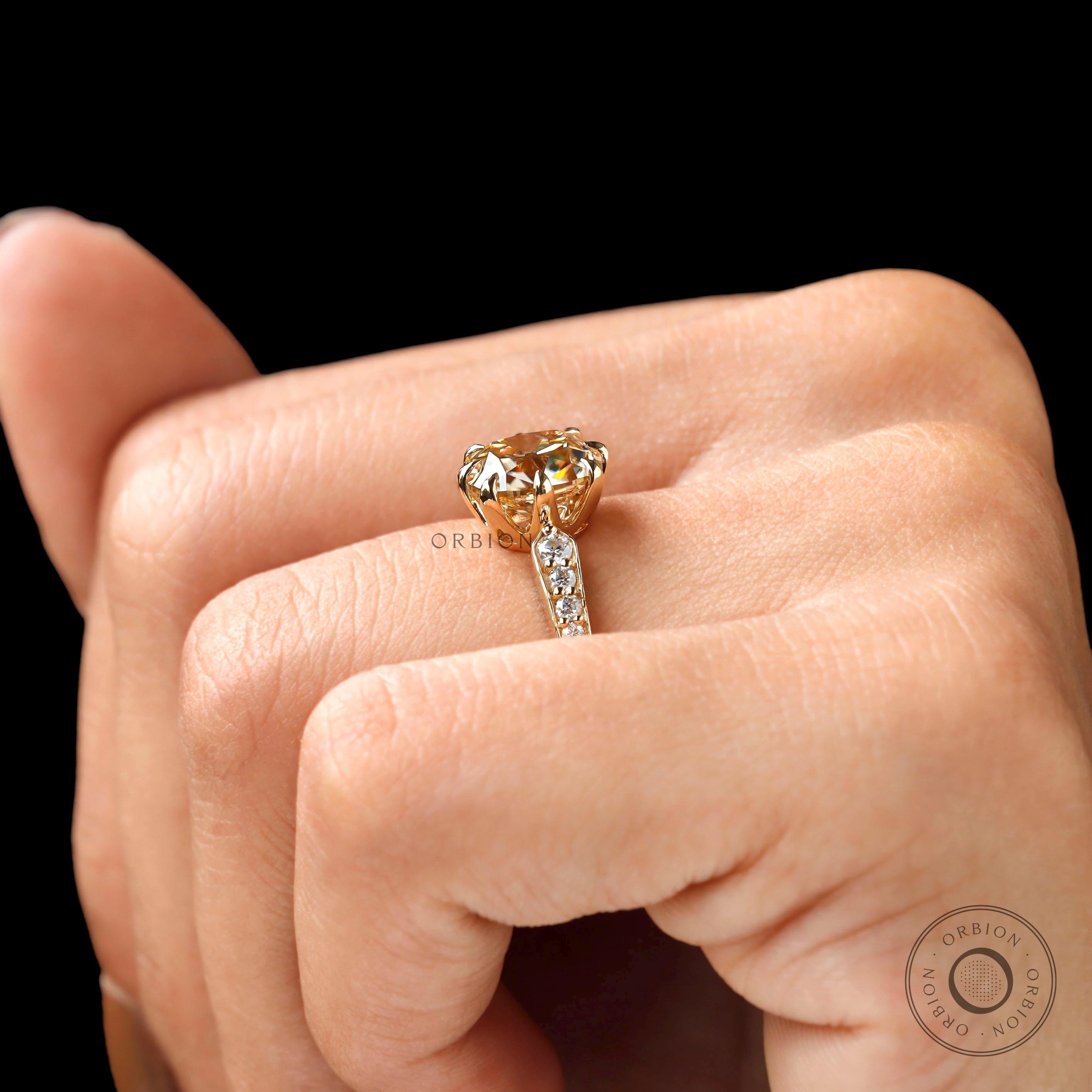 2.5 Ct Elongated Cushion Champagne Moissanite Ring, 10k/14k/18k Yellow Gold Ring, Vintage Engagement Ring, Champagne Wedding Ring, Antique Ring For Her, Handmade Jewelry, Claw Prong Set Ring, Unique Bridal Ring, Round Side Stone Ring, Champagne Moissanite Proposal Ring, OMC Cushion Cut Ring, Promise Ring Gold, Antique Bridal Ring, Anniversary Gift For Her.
