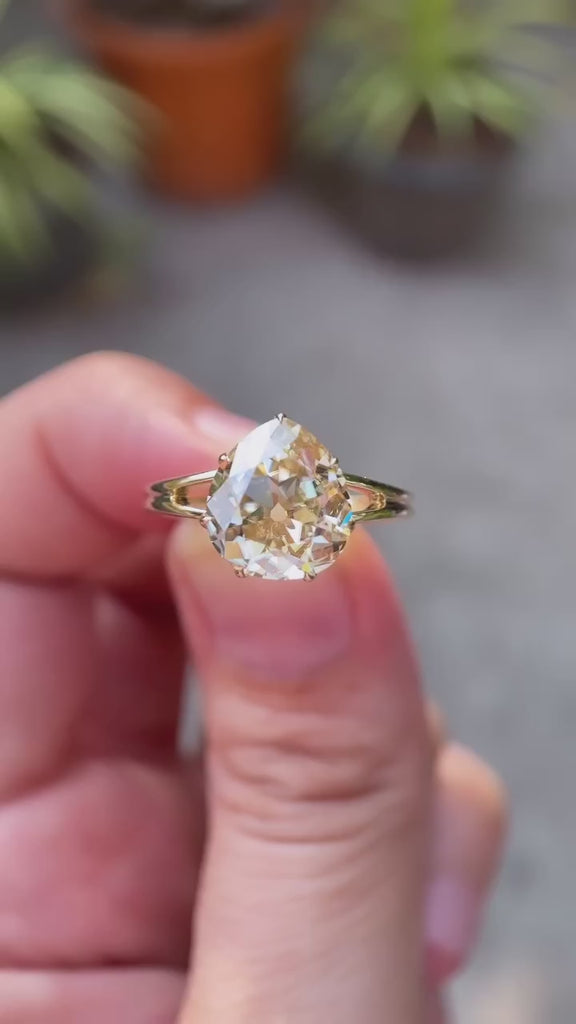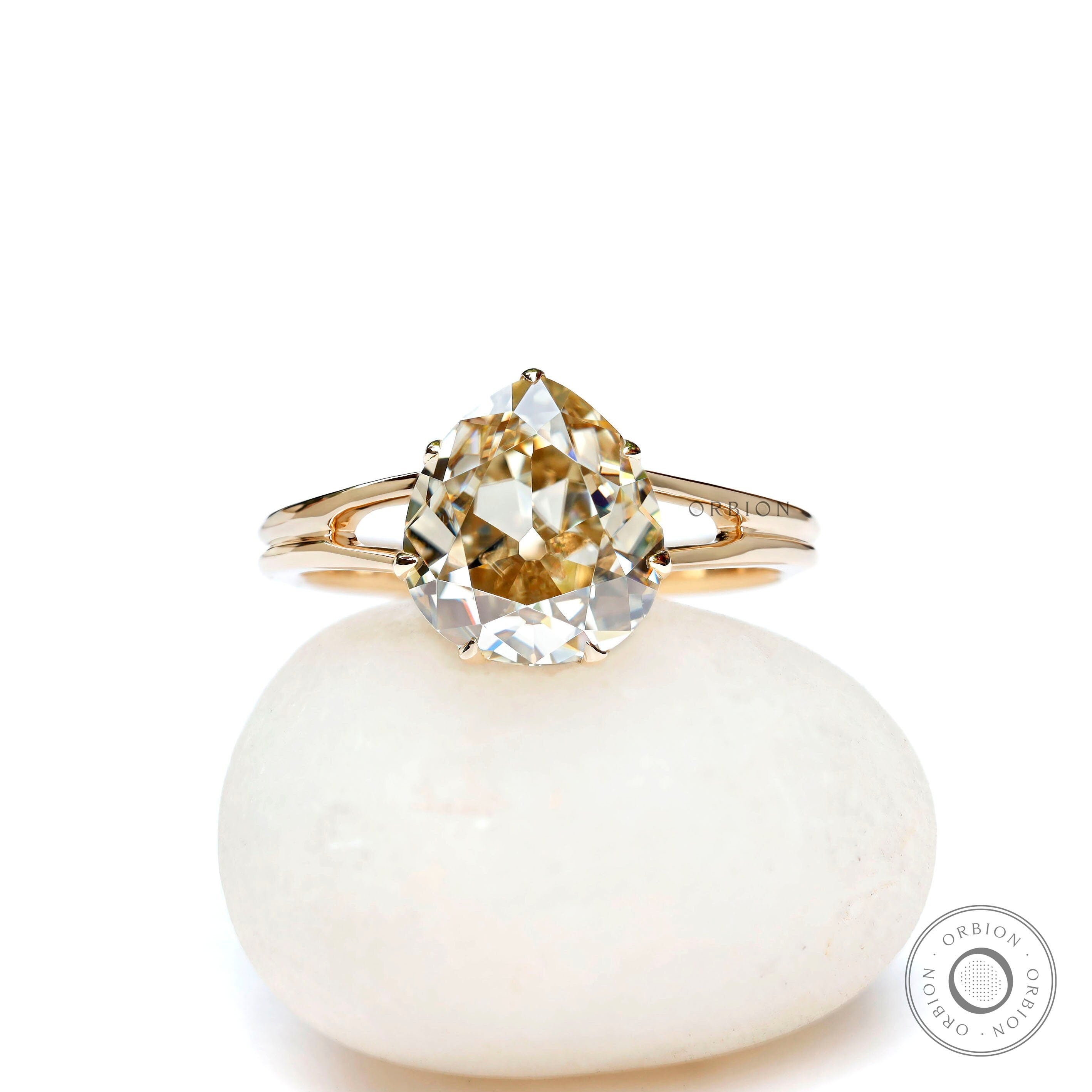 Vintage engagement ring, Champagne moissanite ring, Solid gold ring, Old mine cut moissanite, ย Champagne wedding ring, Antique pear ring, Low Profile Ring, Claw prong set ring, Unique engagement ring, 3 Ct Fat pear cut champagne ring, Proposal ring, Vintage promise ring, Anniversary gift, Split shank ring.