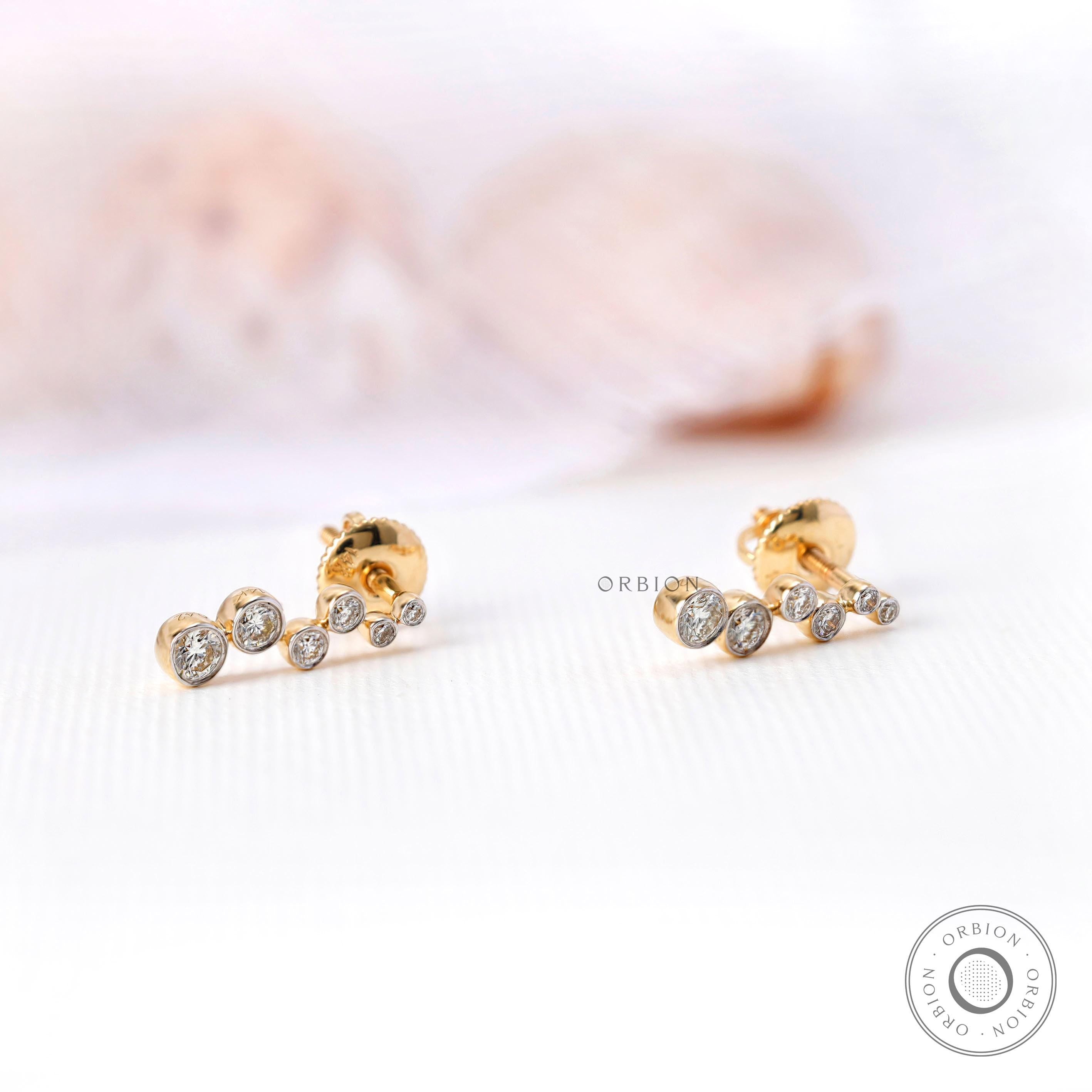 Contemporary Journey Diamond Stud Earrings, Lab Grown Diamond Bubble Drop Earrings, 10k/14k/18k Solid Gold Earrings, Screw Back Stud Earrings, Cluster Diamond Stud Earrings, Lab Diamond Solid Gold Earrings, Yellow Gold Earrings, Statement Earrings, Bridal Earrings