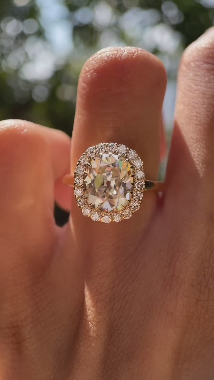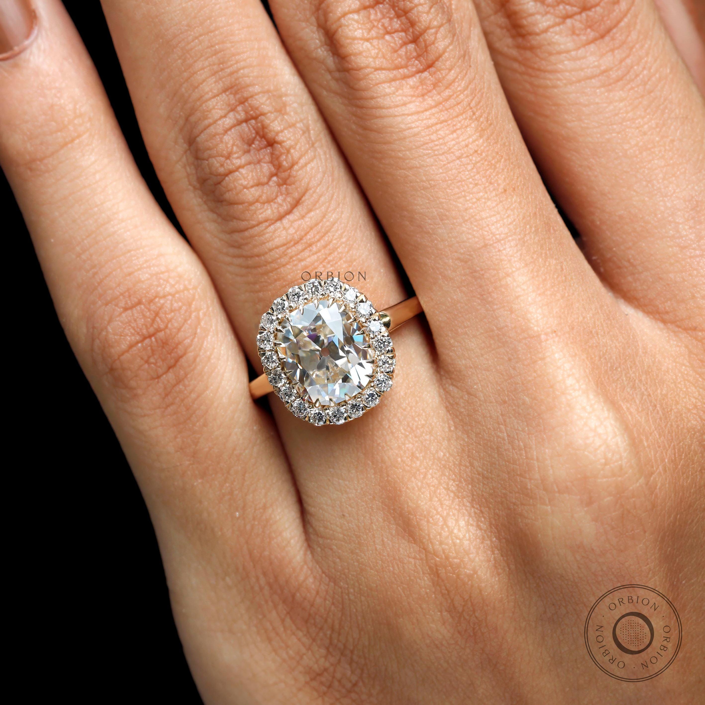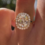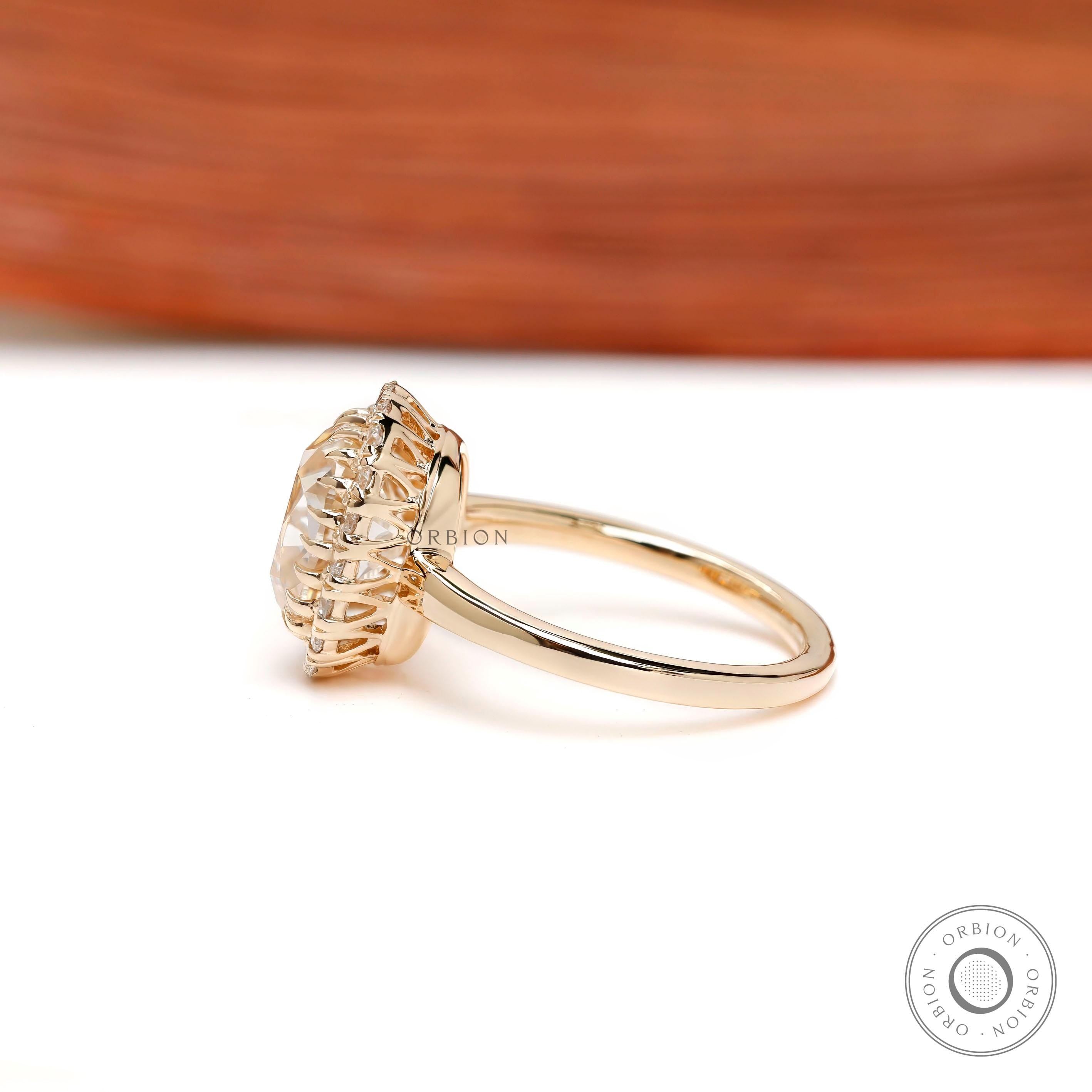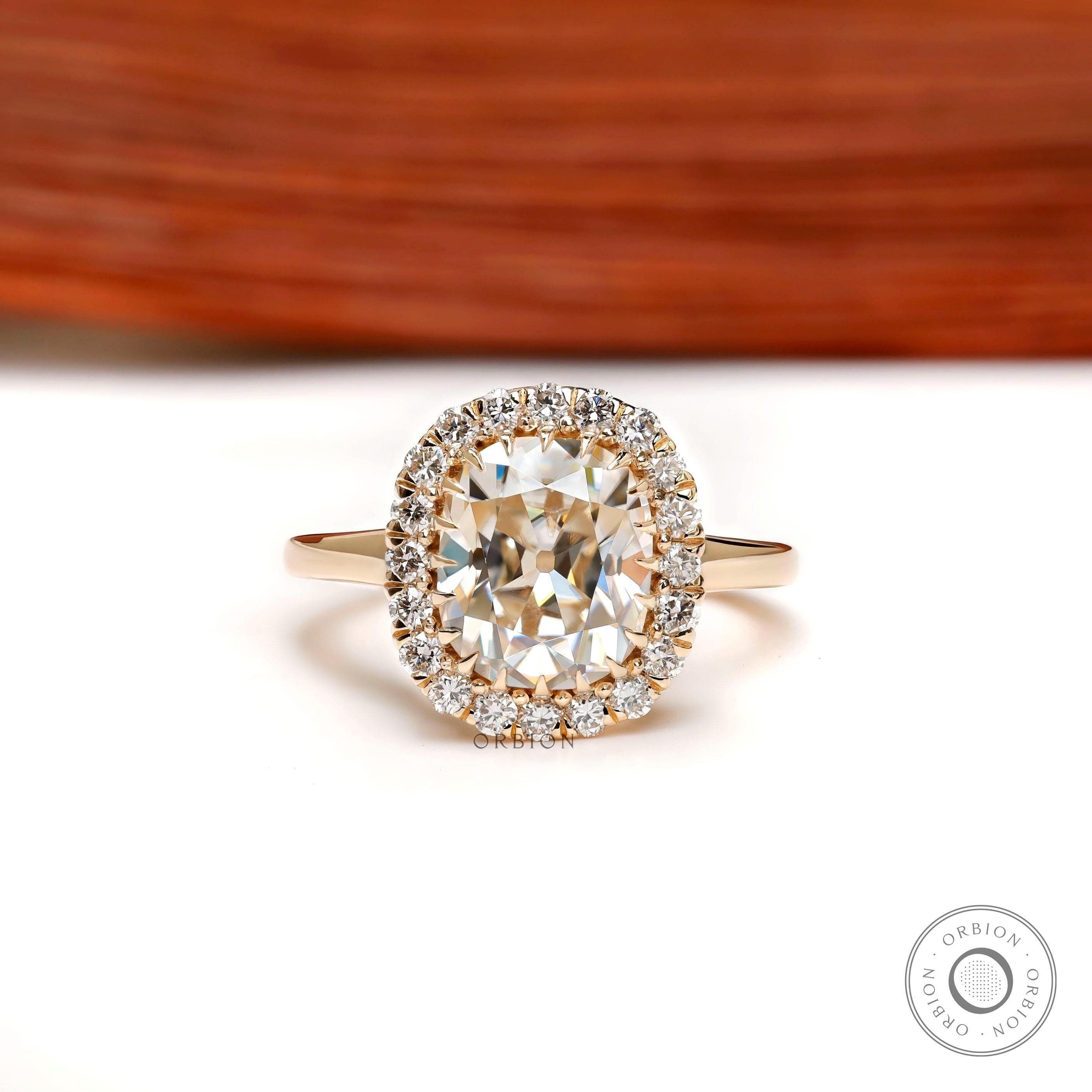 Light Champagne Moissanite Ring, Old Mine Cut Ring, Halo Engagement Ring, Accented Moissanite/Lab Diamond Ring, Fancy Color Stone Ring, 10k/14k/18k Yellow Gold Ring, Halo Style Women Wedding Ring, Statement Ring For Her, Bridal Ring, Anniversary Gift