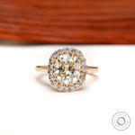 Old Mine Cut Elongated Cushion Champagne Moissanite Ring, Halo Engagement Ring, Solitaire Wedding Ring, Unique Bridal Ring, Solid Gold Ring