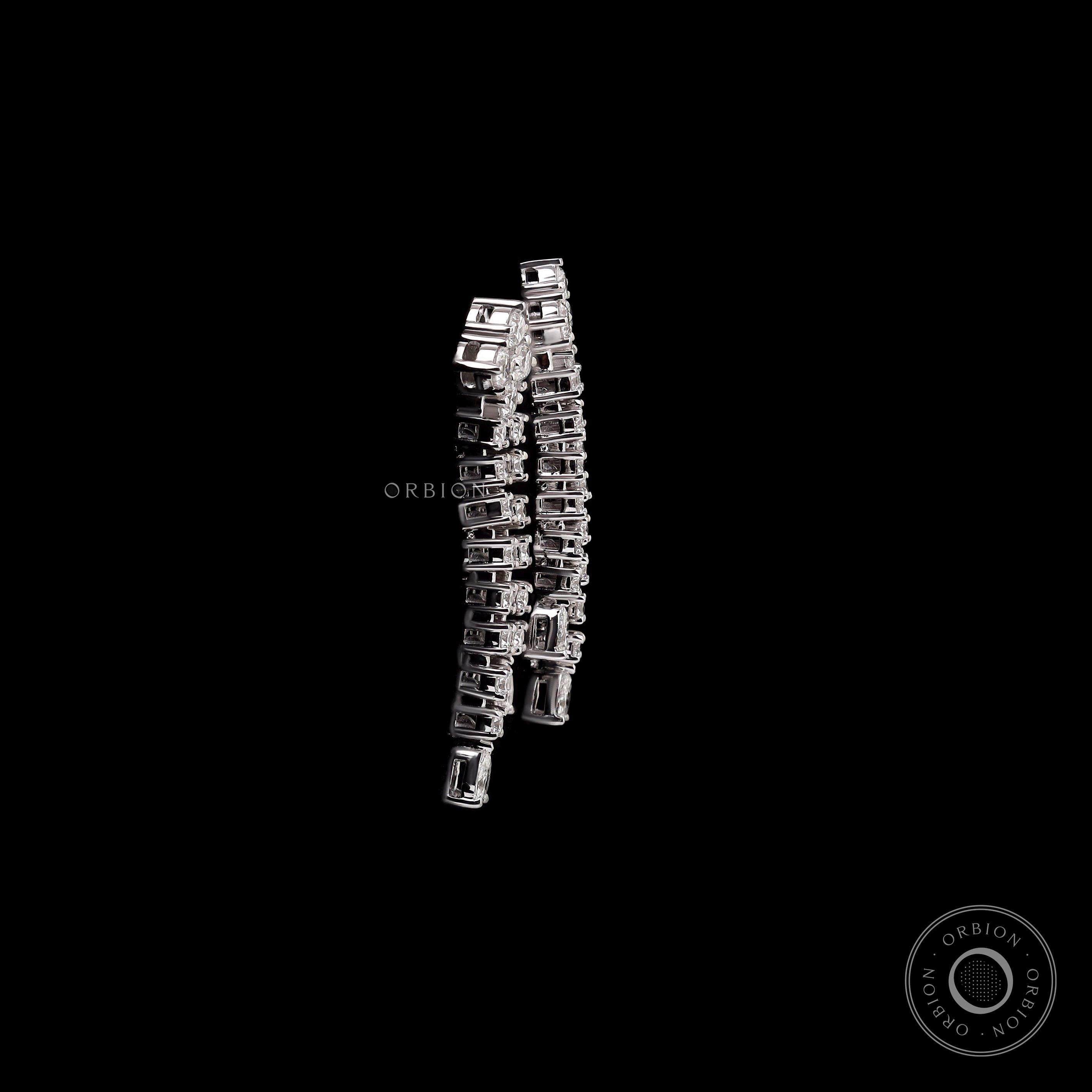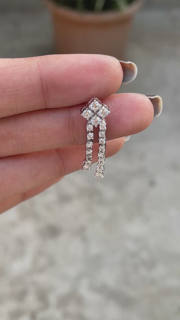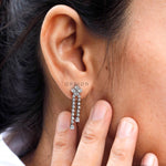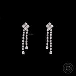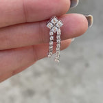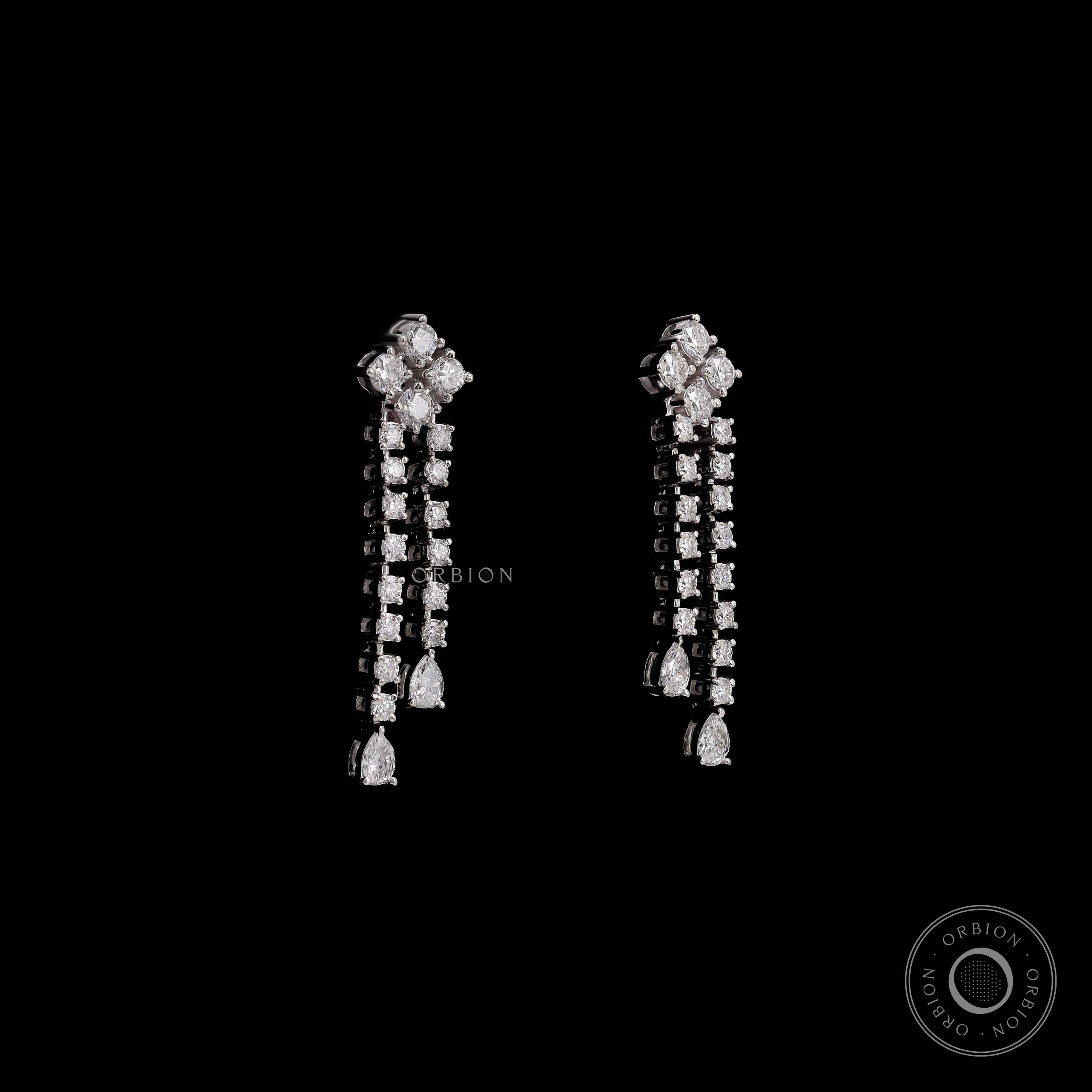 Lab Grown Diamond Dangle Drop Earrings, Round & Pear Cut Diamond Flexible Double Strand Hanging Dangler Solid Gold Statement Earrings