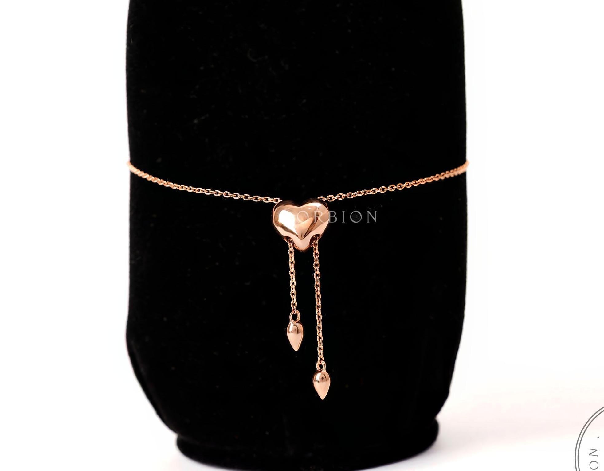 Lab Grown Diamond Link Bracelet For Women, Heart Charm Bolo Bracelet, 10k/14k/18k Solid Gold Diamond Bracelet, Valentine Day Gift for Her