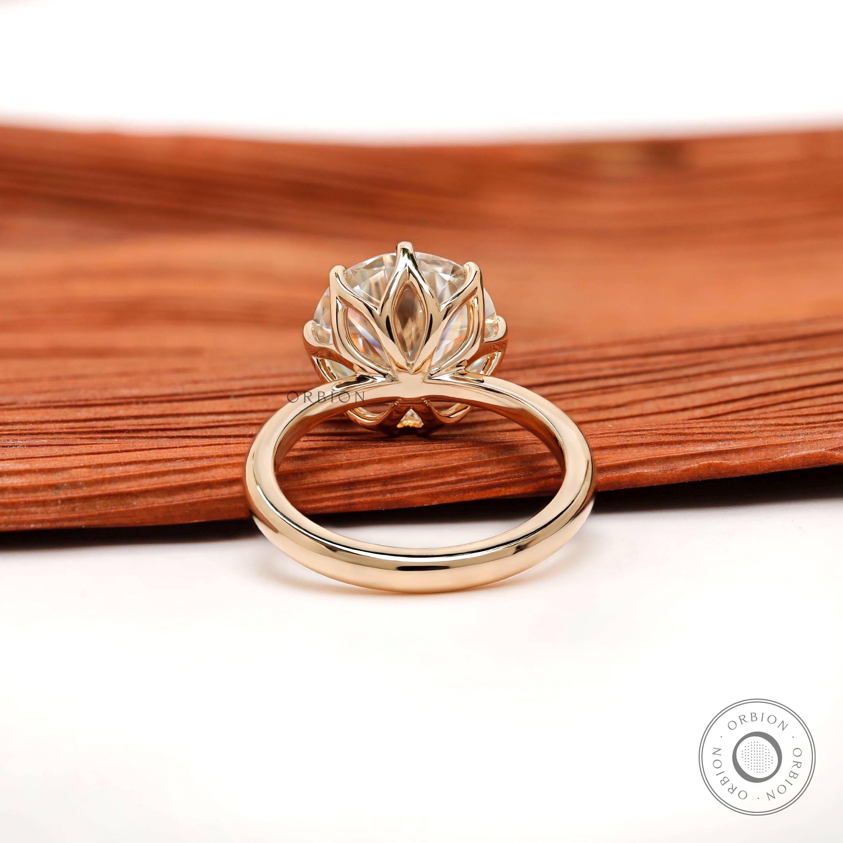11MM Large Round Cut Solitaire Moissanite Tulip Setting Engagement Ring Yellow Gold 8 Prong Round Tulip Ring Head Unique Anniversary Ring