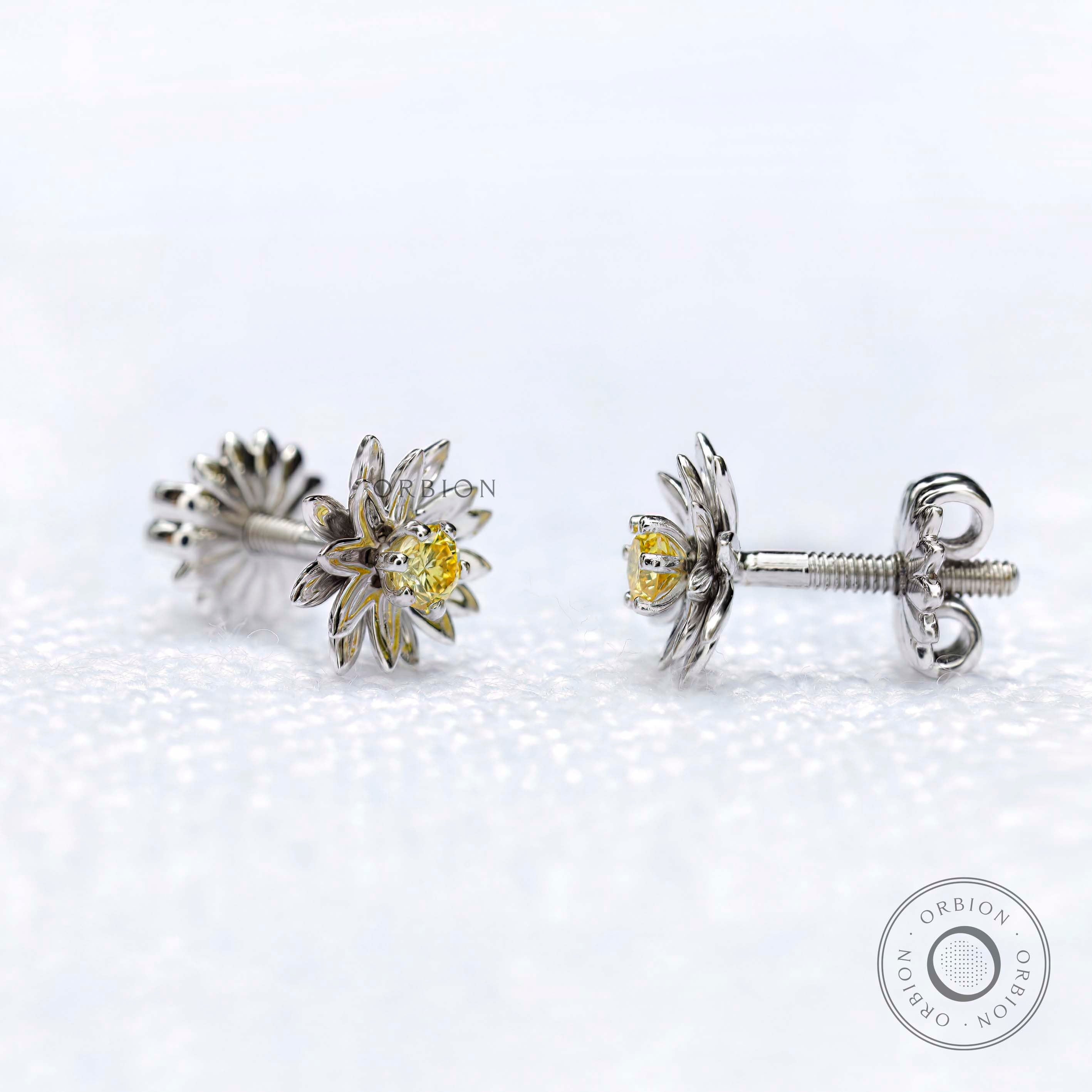 Lotus Inspired “Majestic Bloom” Earrings, Fancy Yellow Lab Diamond Earrings, Flower Petals, Uniquely Designed Diamond Earrings in Solid Gold