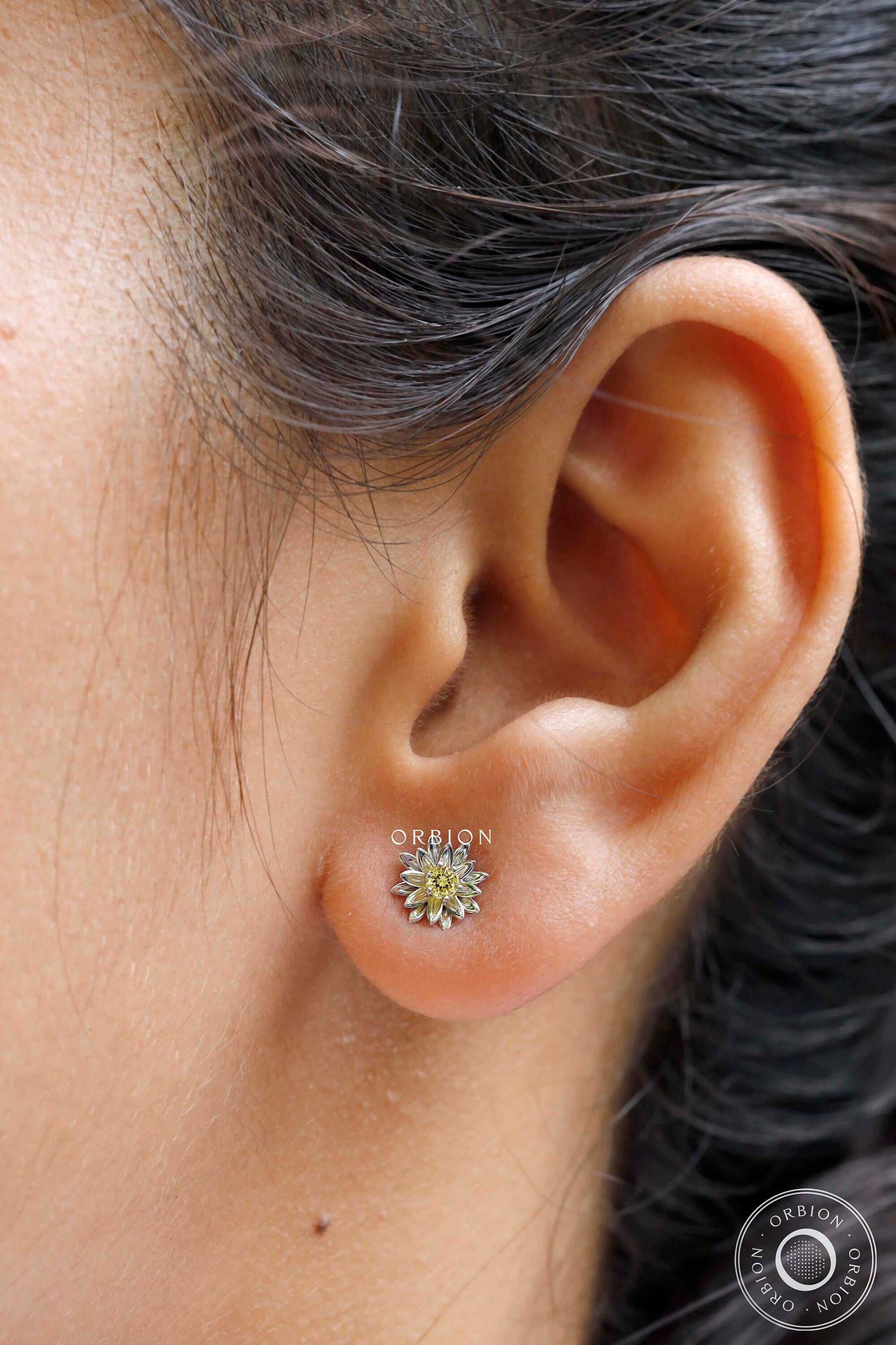 Elevate your jewelry collection with our Lotus-inspired “Majestic Bloom” earrings, adorned with a captivating 2.5 mm round center Lab-Diamond that mirrors the purity and splendor of the lotus. Available in 10k, 14k, or 18k gold, these earrings offer a personalized touch with Smooth Matte or Glossy finish options.