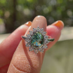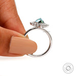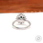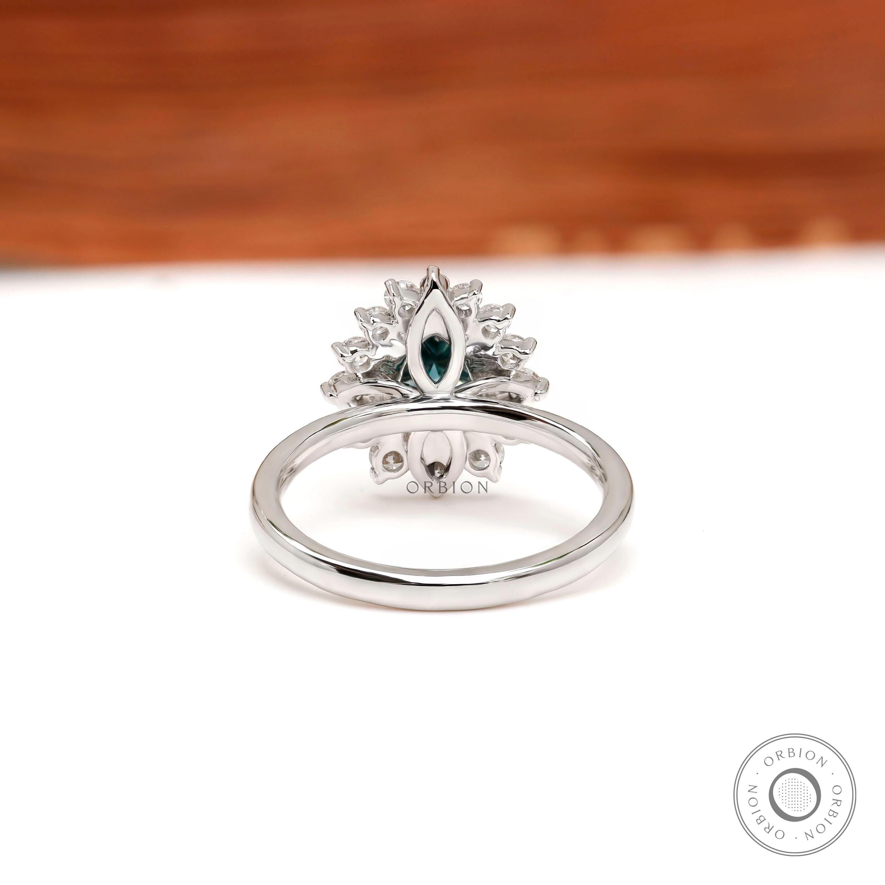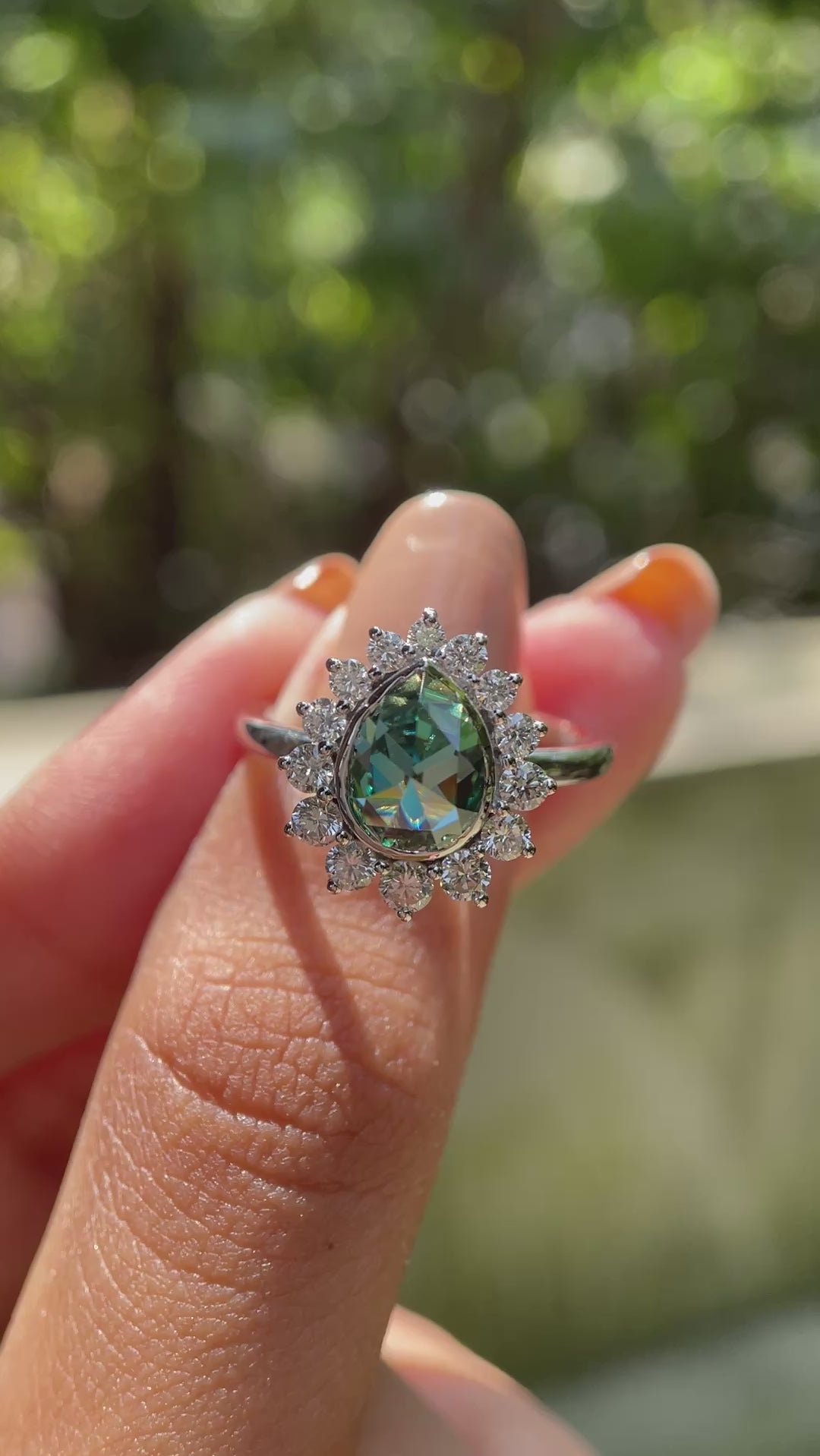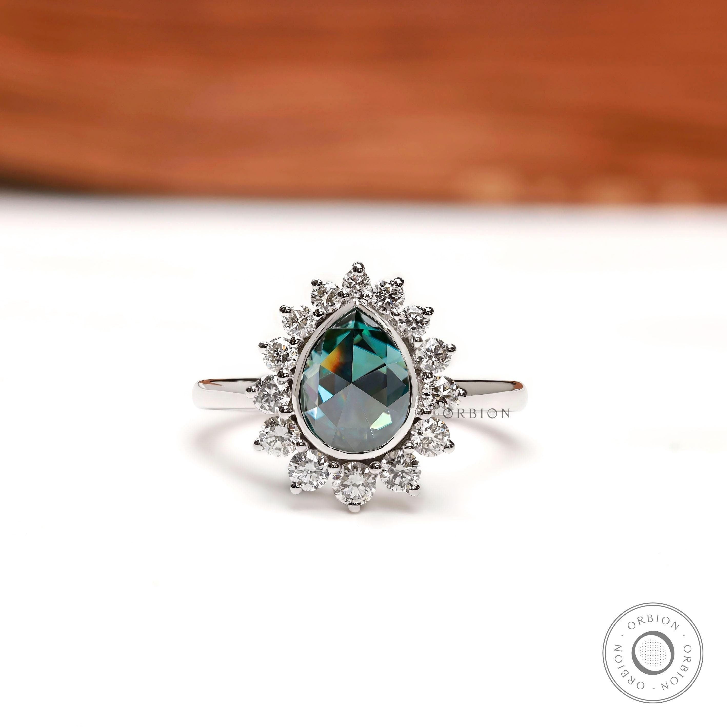 Rose Cut Pear Shaped Blue Green Moissanite Ring, Halo Engagement Ring, Bezel Set Ring, White Gold Wedding Ring, Statement Ring For Her, Gemstone Bridal Ring, Teardrop Ring For Her, May Birthstone Ring, Anniversary Gift, Gift For Wife
