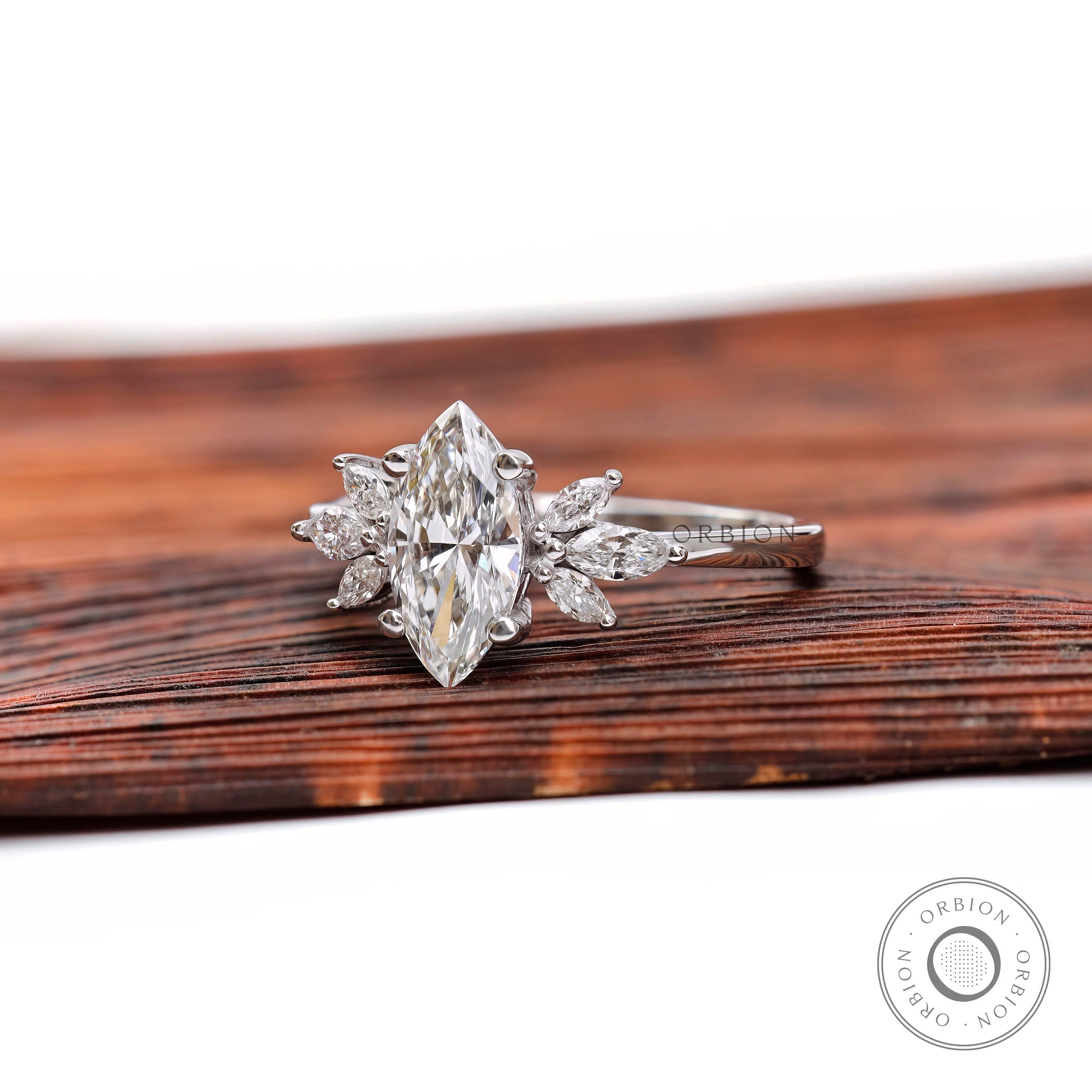 1 Carat Marquise Diamond Ring, Cluster Marquise Ring, Cluster Engagement Ring, Solitaire Diamond Ring, Marquise Cut Lab Grown Diamond Ring, Unique Bridal Ring, Floral Engagement Ring, Statement Ring Women