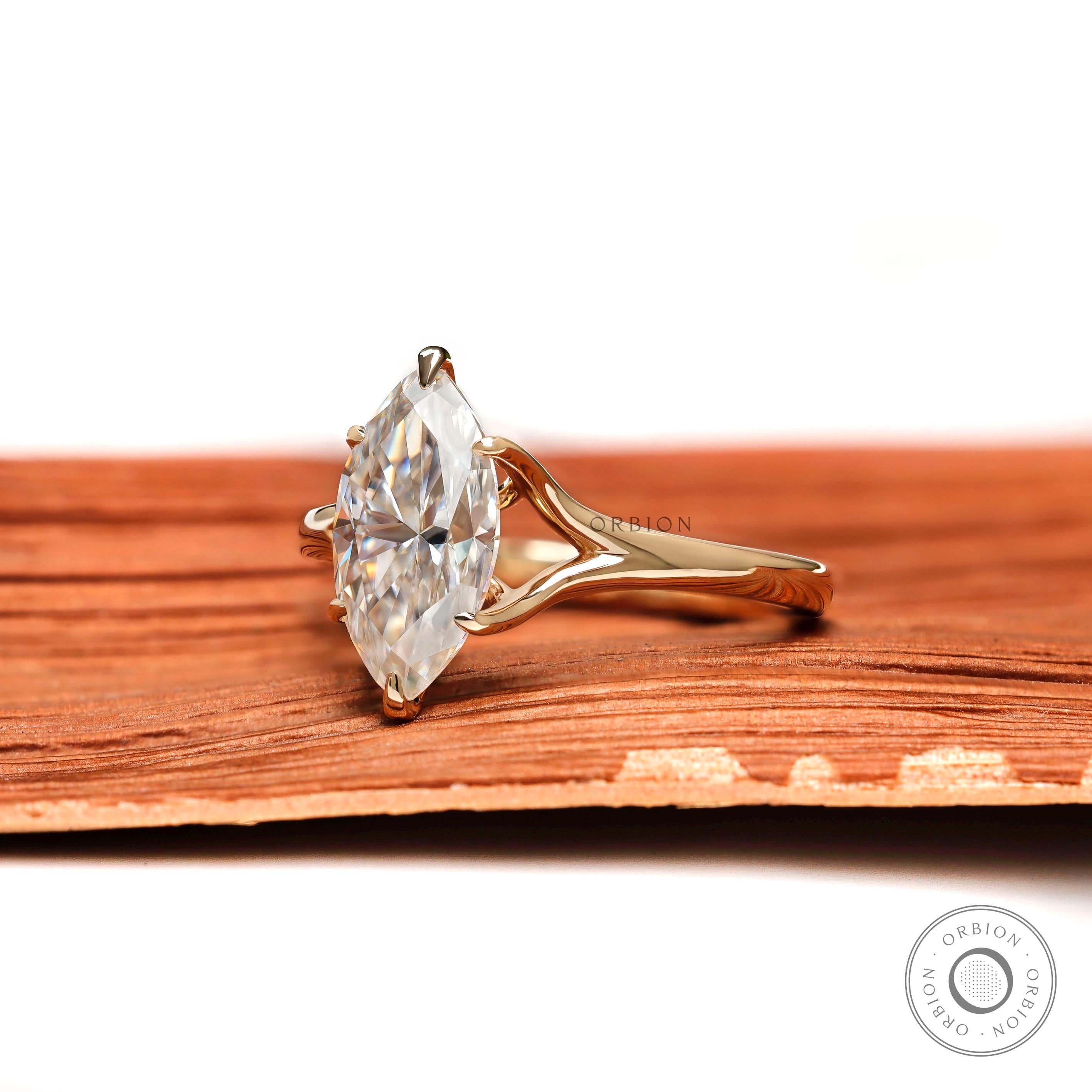 Brilliant Cut Marquise Moissanite Engagement Ring, 10K/14K/18K Solid Yellow Gold Split Shank Stylish Ring For Women, Solitaire Moissanite Ring, Gift For Her, Bridal Ring, Solid Gold Ring, Marquise Shaped Ring, Anniversary Ring, Promise Ring, Proposal Ring, Handmade Jewelry
