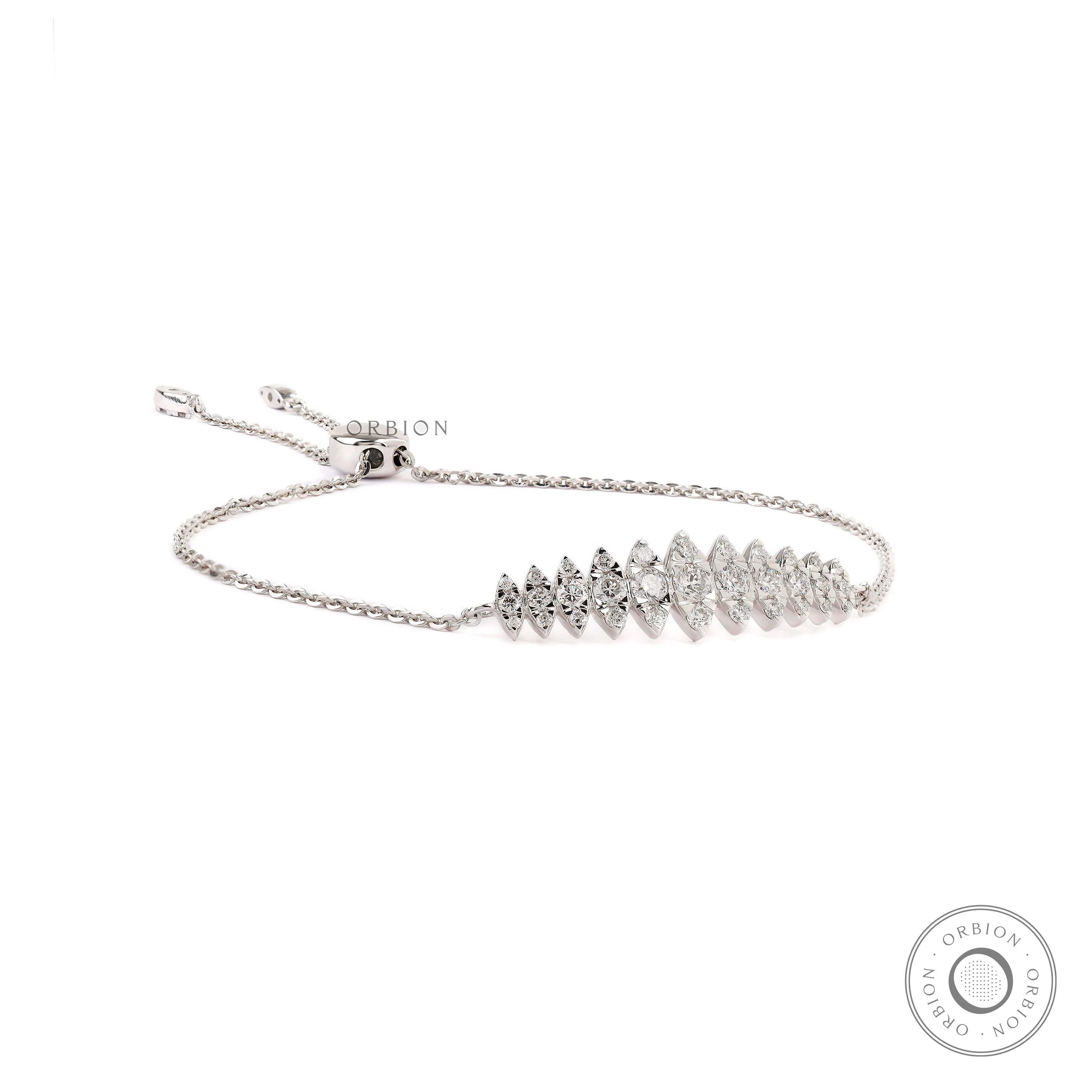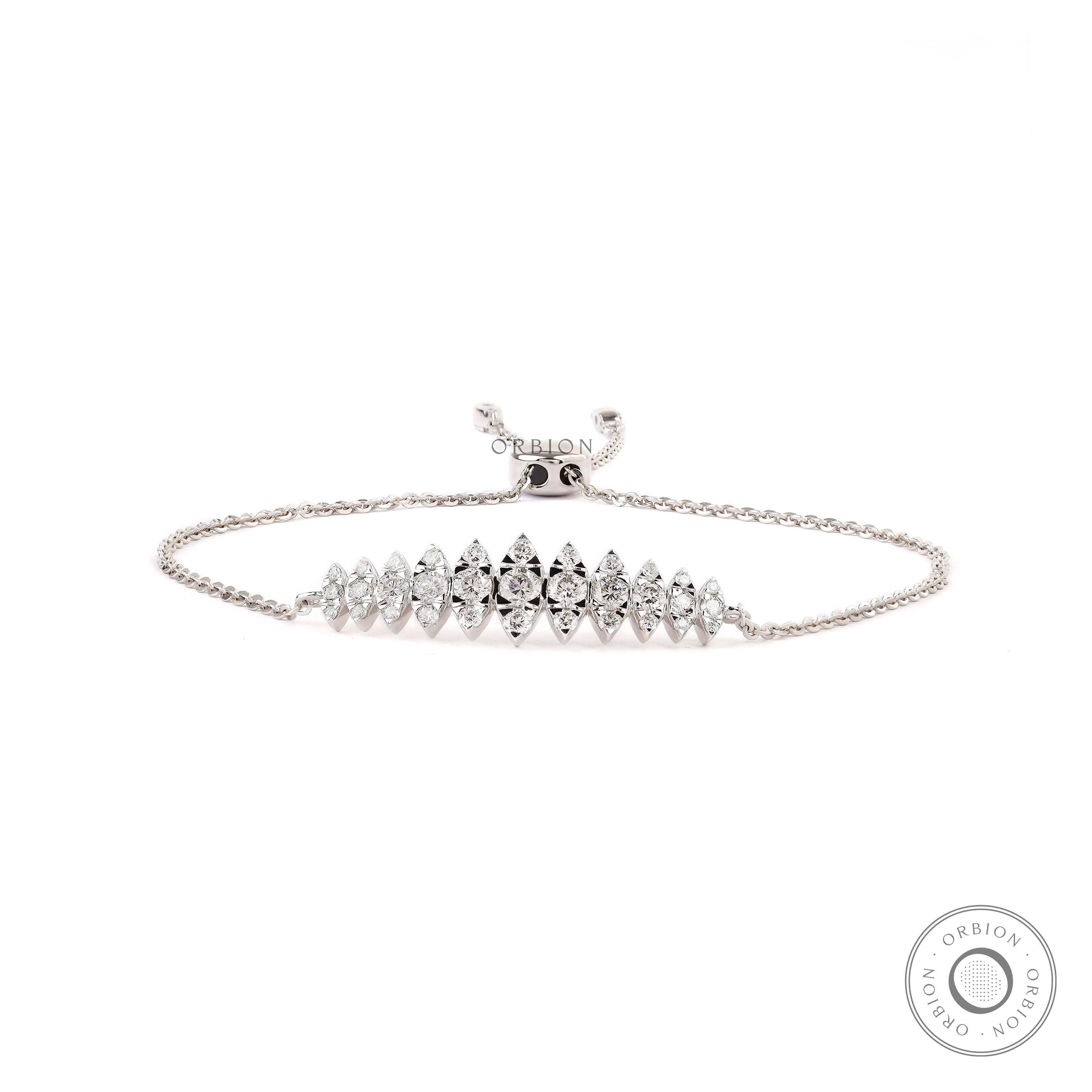 Marquise Shaped Round Lab Grown Diamond Bolo Bracelet For Women, Solid Gold Chain Bracelet, Adjustable Graduating Diamond Slider Bracelet