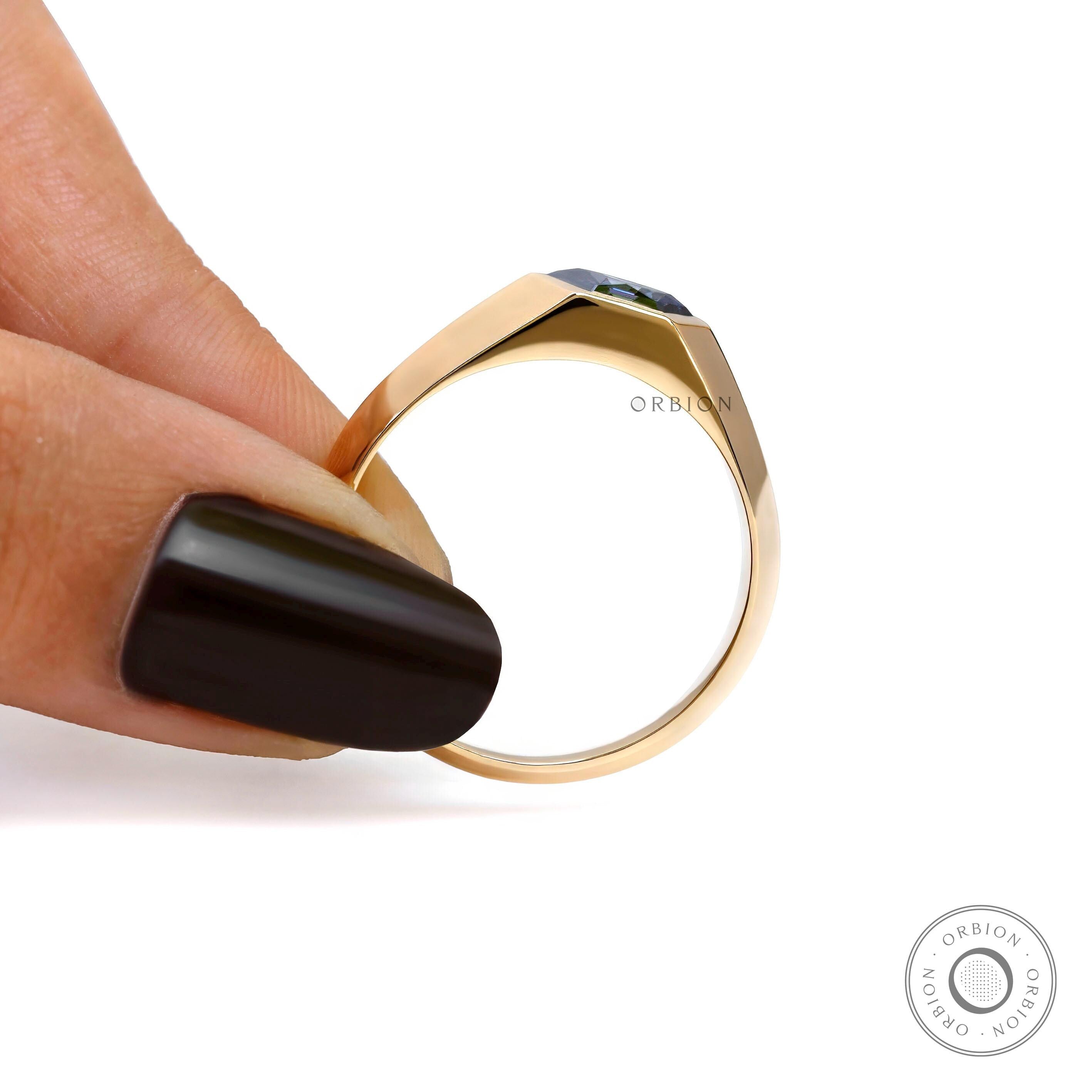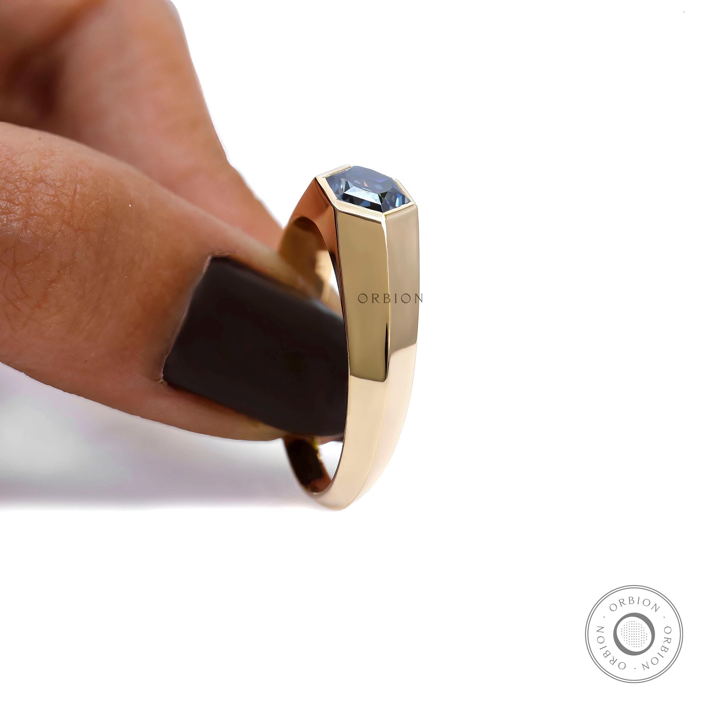 Hexagon Cut Blue Moissanite Signet Ring | Bezel Set Blue Hexagon Moissanite | Flush Set 14K Solid Gold Men's Wedding Ring | Solitaire Ring For Him
