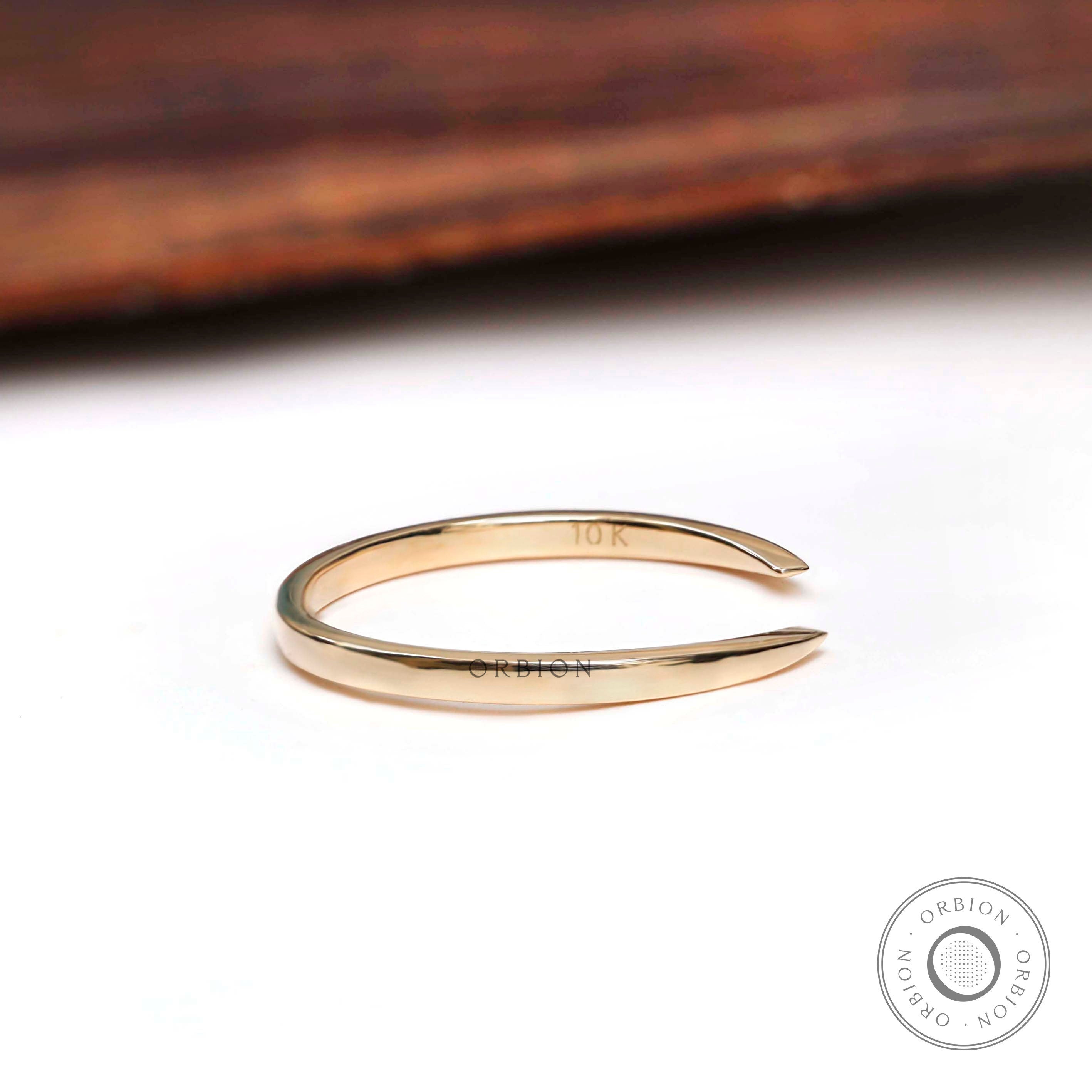 Minimalist Solid Gold Open Wedding Band, Stacking Matching Ring Spacer, Modern Open Claw Matching Band - Delicate Gold Beauty, Wedding Gift
