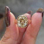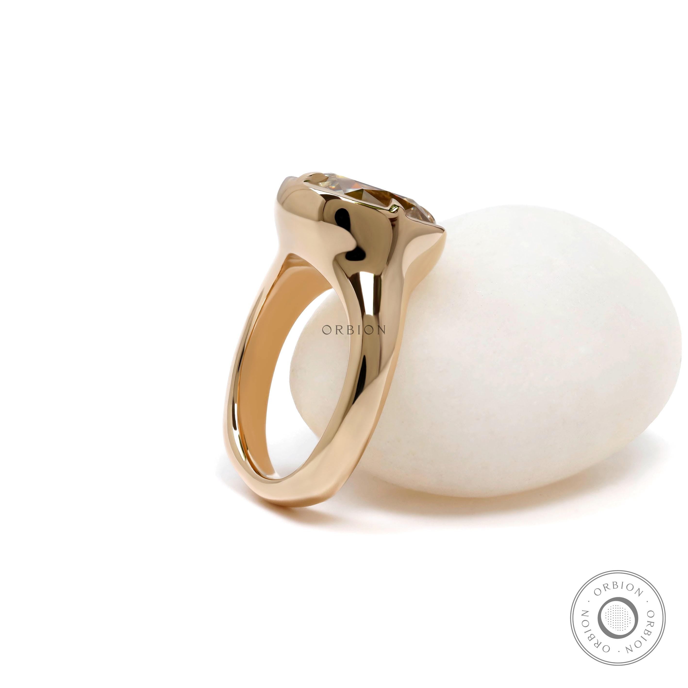 Modern Chunky Statement Ring With Thick Tapered Band, Champagne Bezel Set Ring, Old Mine Cut Champagne Moissanite Ring, Euro Shank Band Ring