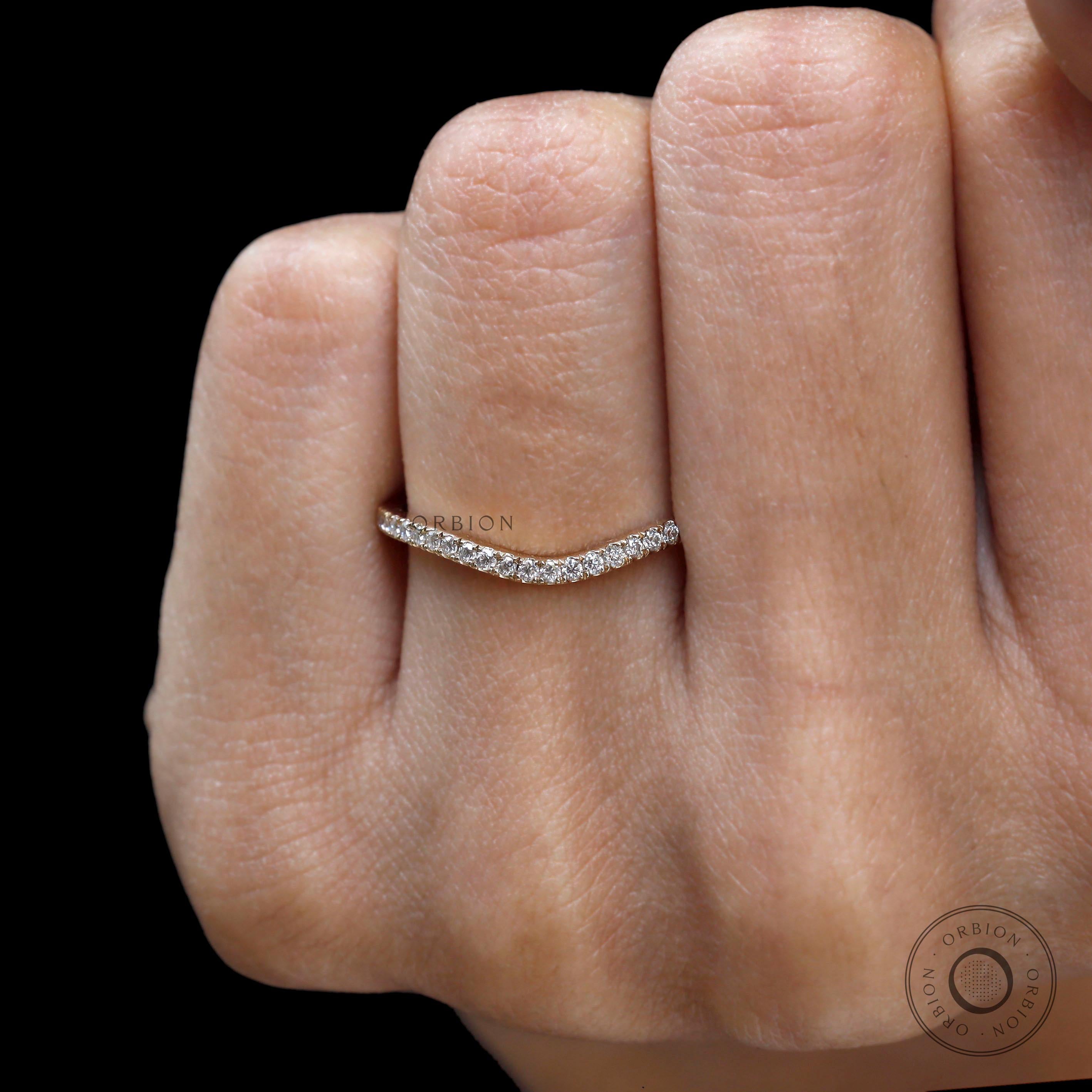Brilliant cut moissanite/Lab diamond curved wedding band, Curved stacking band, Matching band, Delicate band, Classic band, Gold wedding band, Curved diamond ring, Unique wedding band, Women wedding band, Anniversary band, Minimalist curved band, Half eternity band, Round moissanite band, Dainty stackable band.