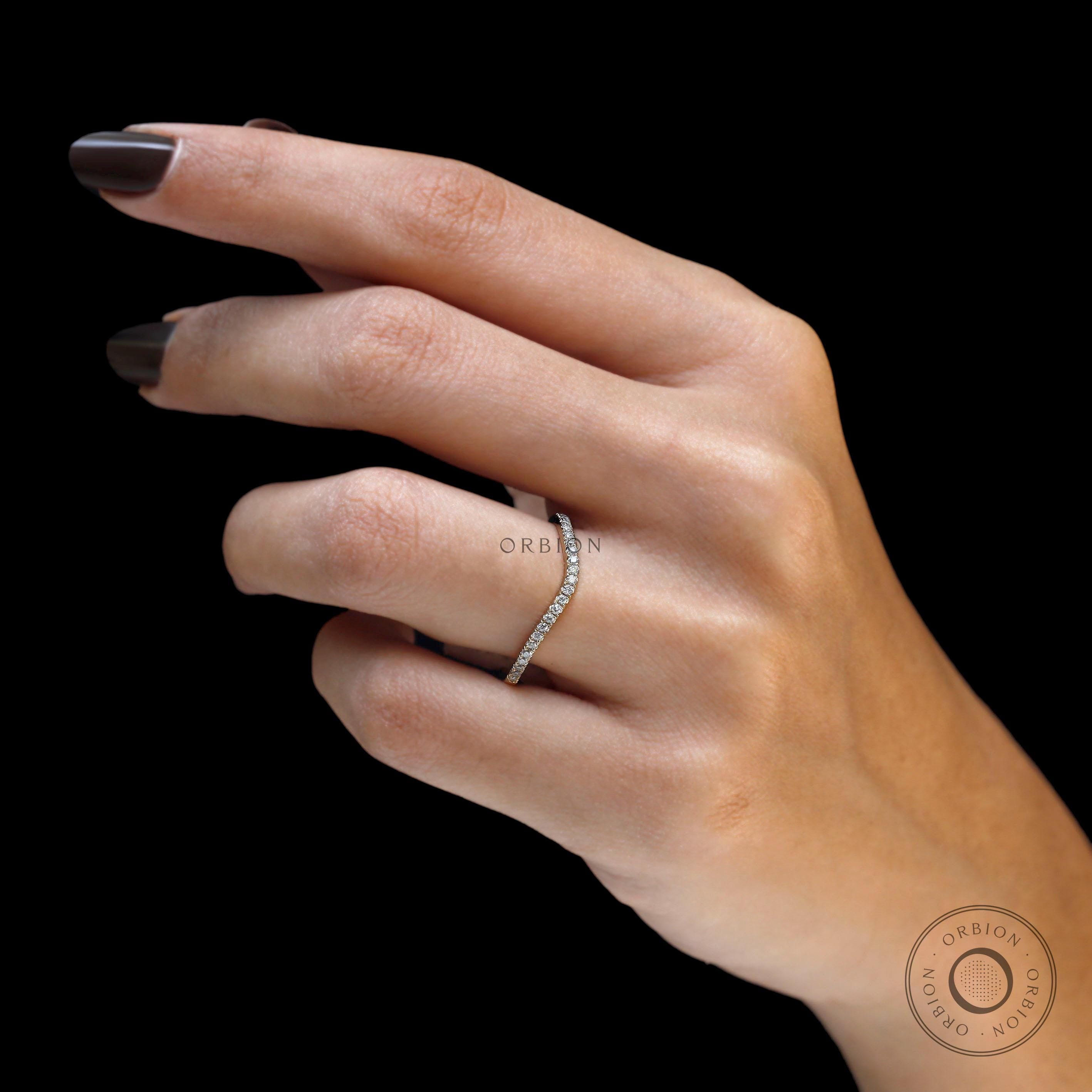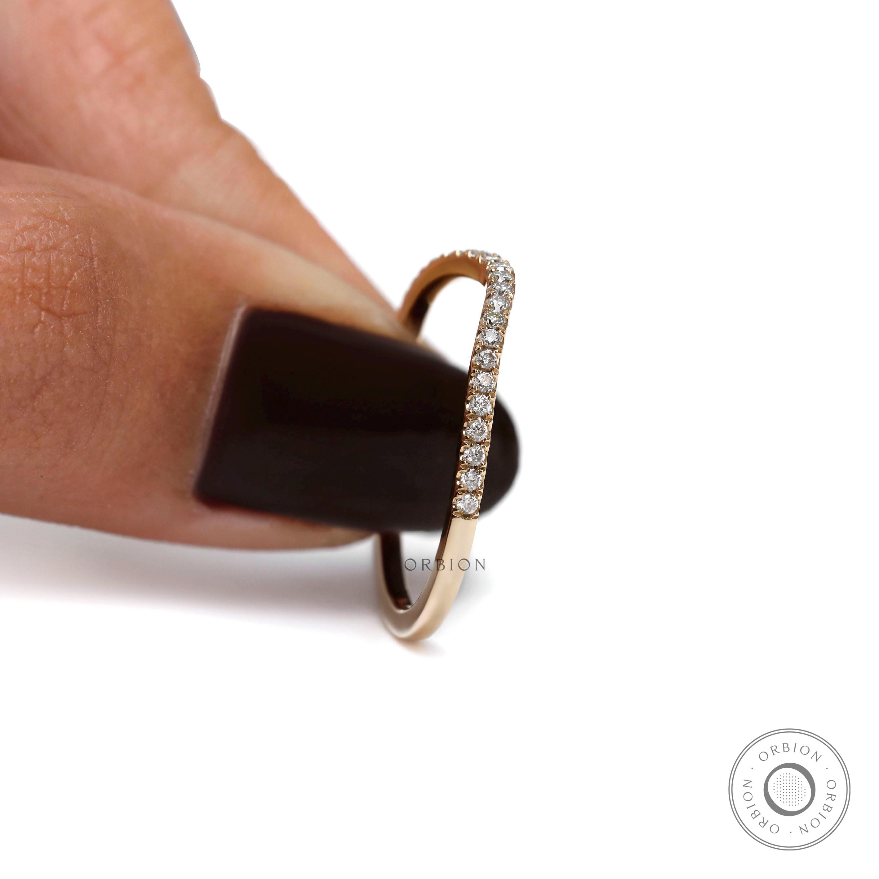 Moissanite/Lab Diamond Curved Wedding Band, Unique Half Eternity Band, Chevron Wedding Band, Contour Band Gold, Nesting Ring, Stacking Band