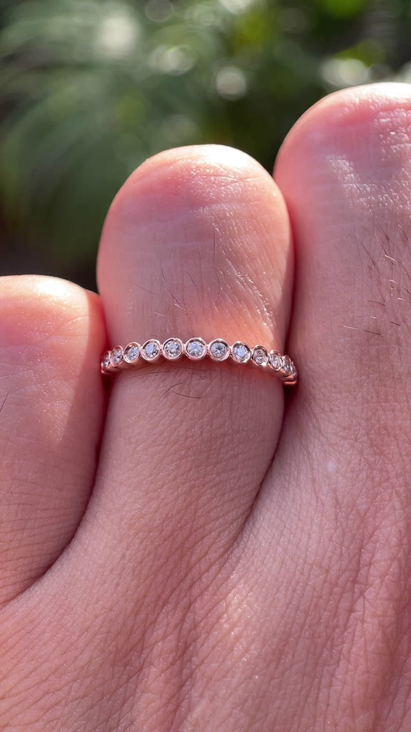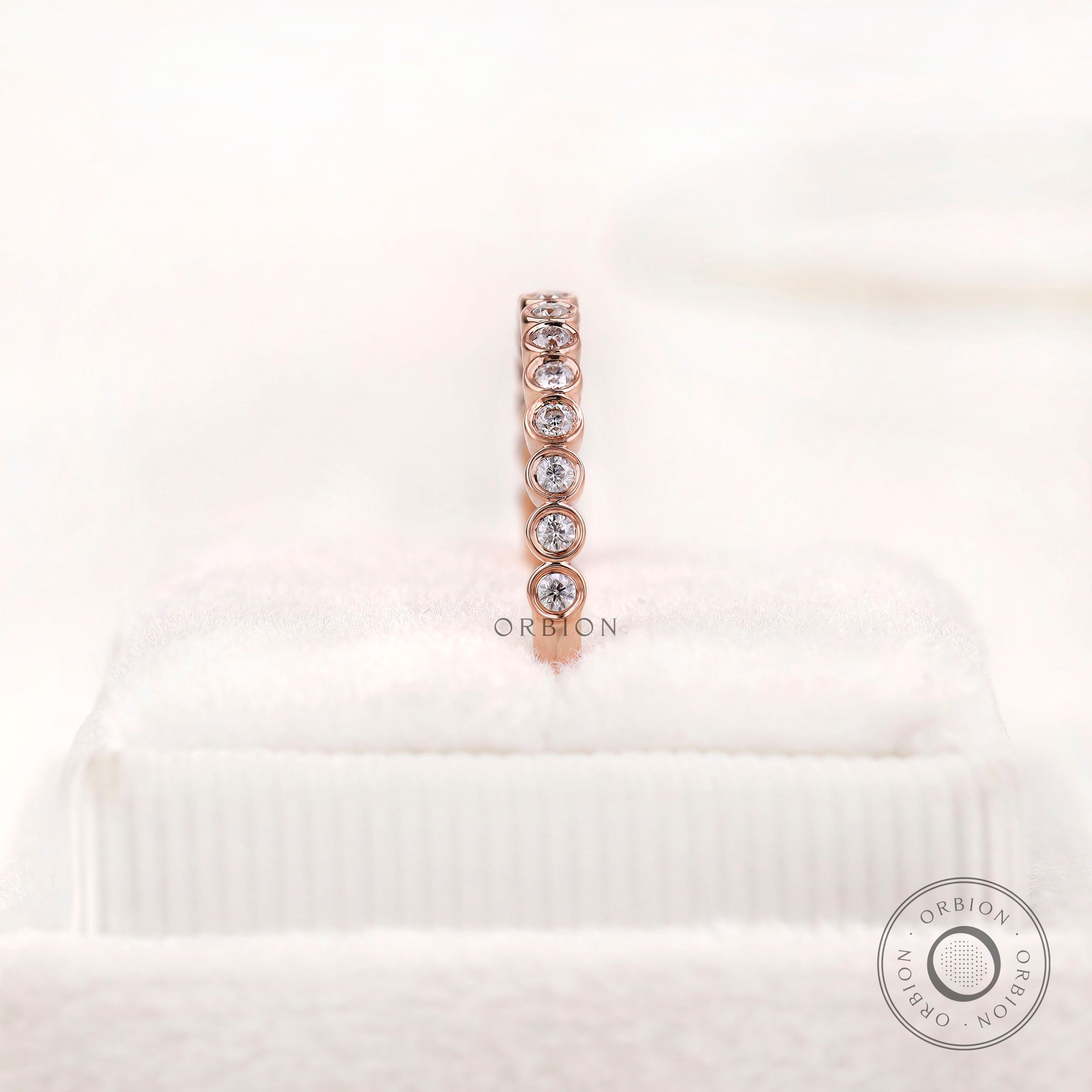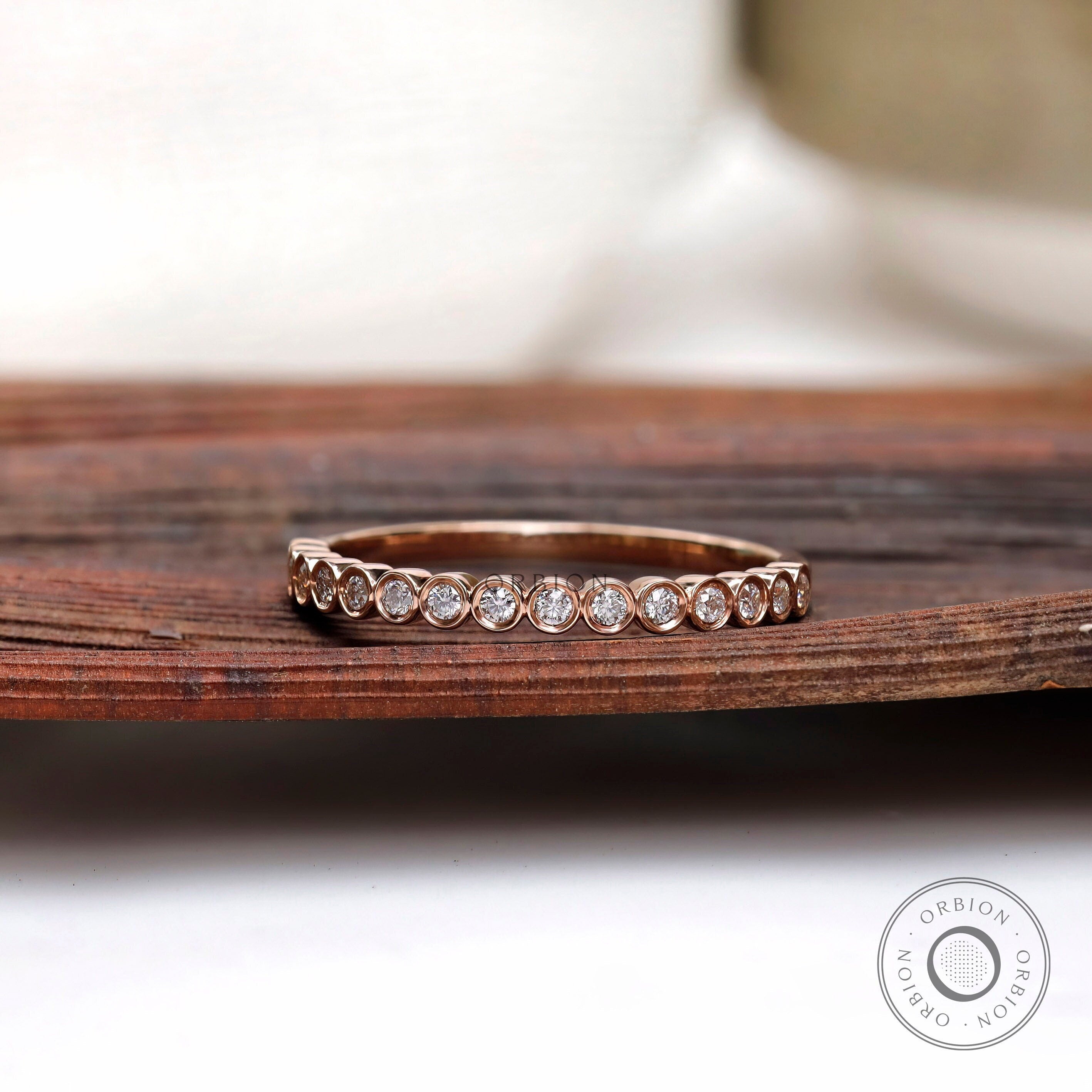 Classic Rose Gold Bezel Set Wedding Band, Tiny Half Eternity Band, Minimalist Women Diamond Band, Anniversary Band, Dainty Band Women, Stacking Band, Delicate Wedding Band, Lab Diamond Band, Diamond Wedding Band