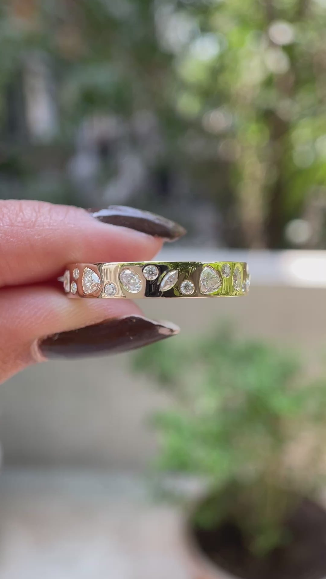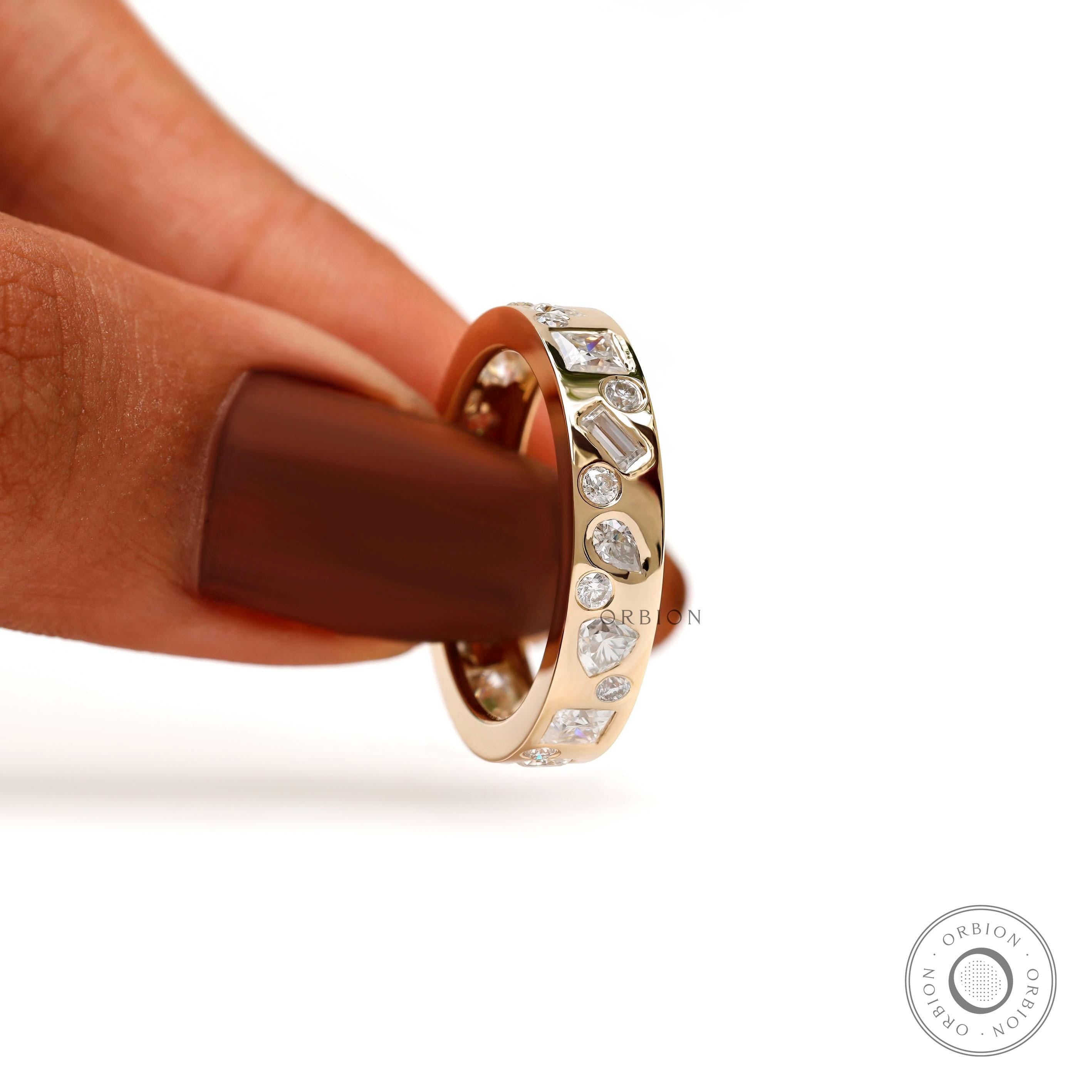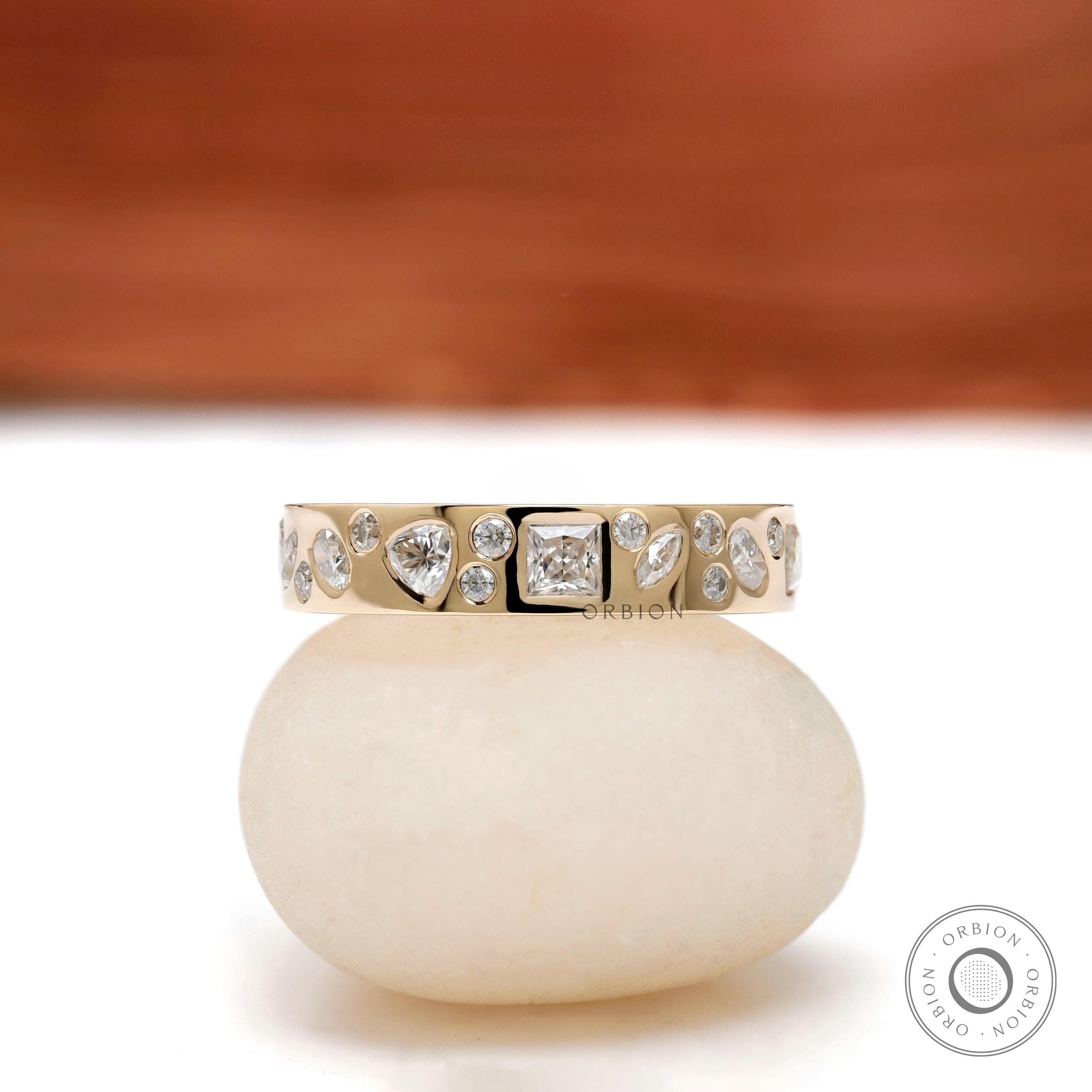 Multi Shaped Moissanite Full Eternity Band, Unique Mix Shape Cluster Wedding Band For Women, Beautiful Vintage Anniversary Band Gift For Her