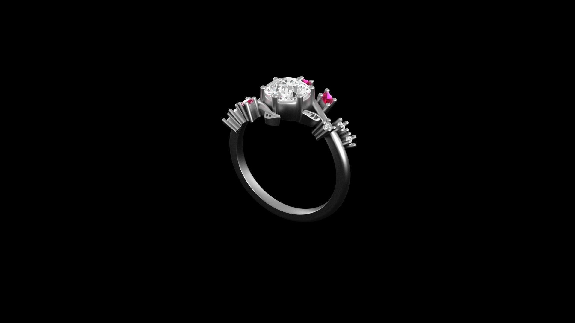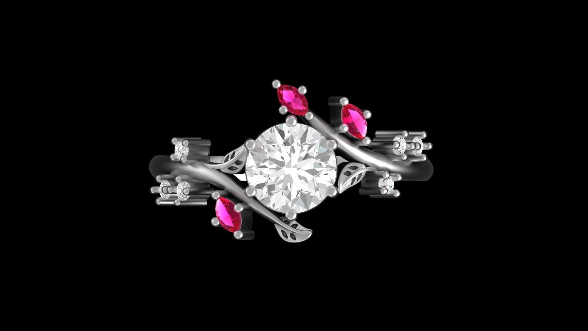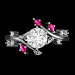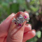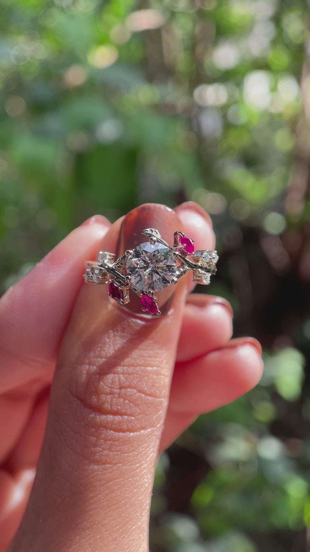 A Touch of Nature: Flower Design Lab Diamond Ring with Ruby and Moissanite Details, One-of-a-Kind Nature-Inspired Diamond Ring, Gift For Her