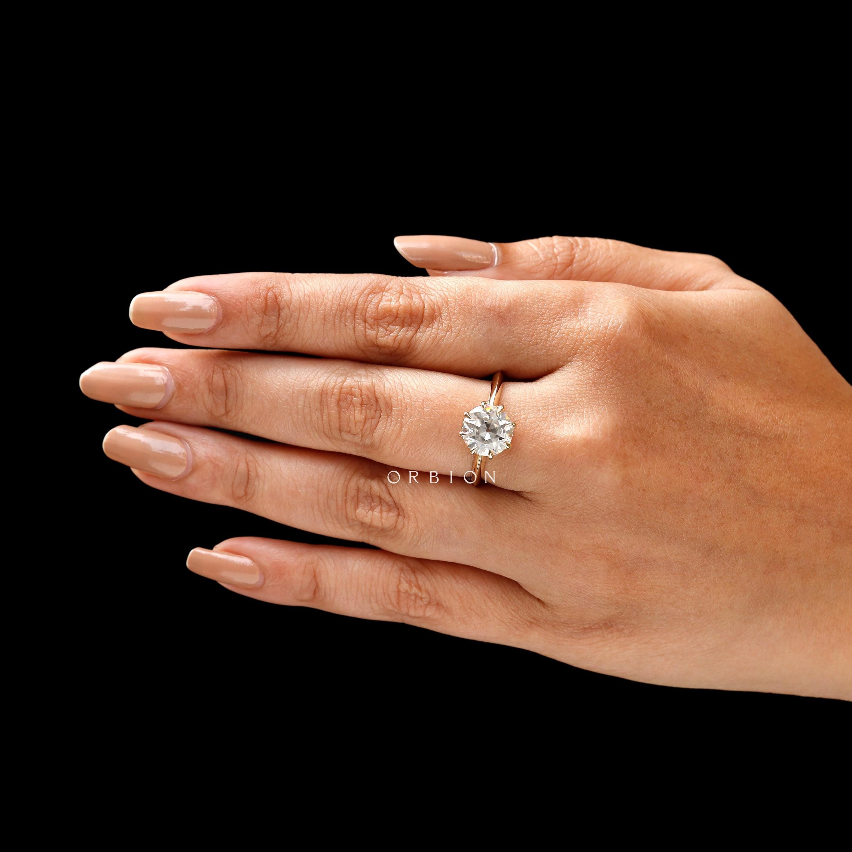 3 Ct OEC Moissanite Ring, Off White Stone 8 prong Ring, Georgian Style Ring, Solid Yellow Gold Knife Edge Ring, Vintage Solitaire Ring
