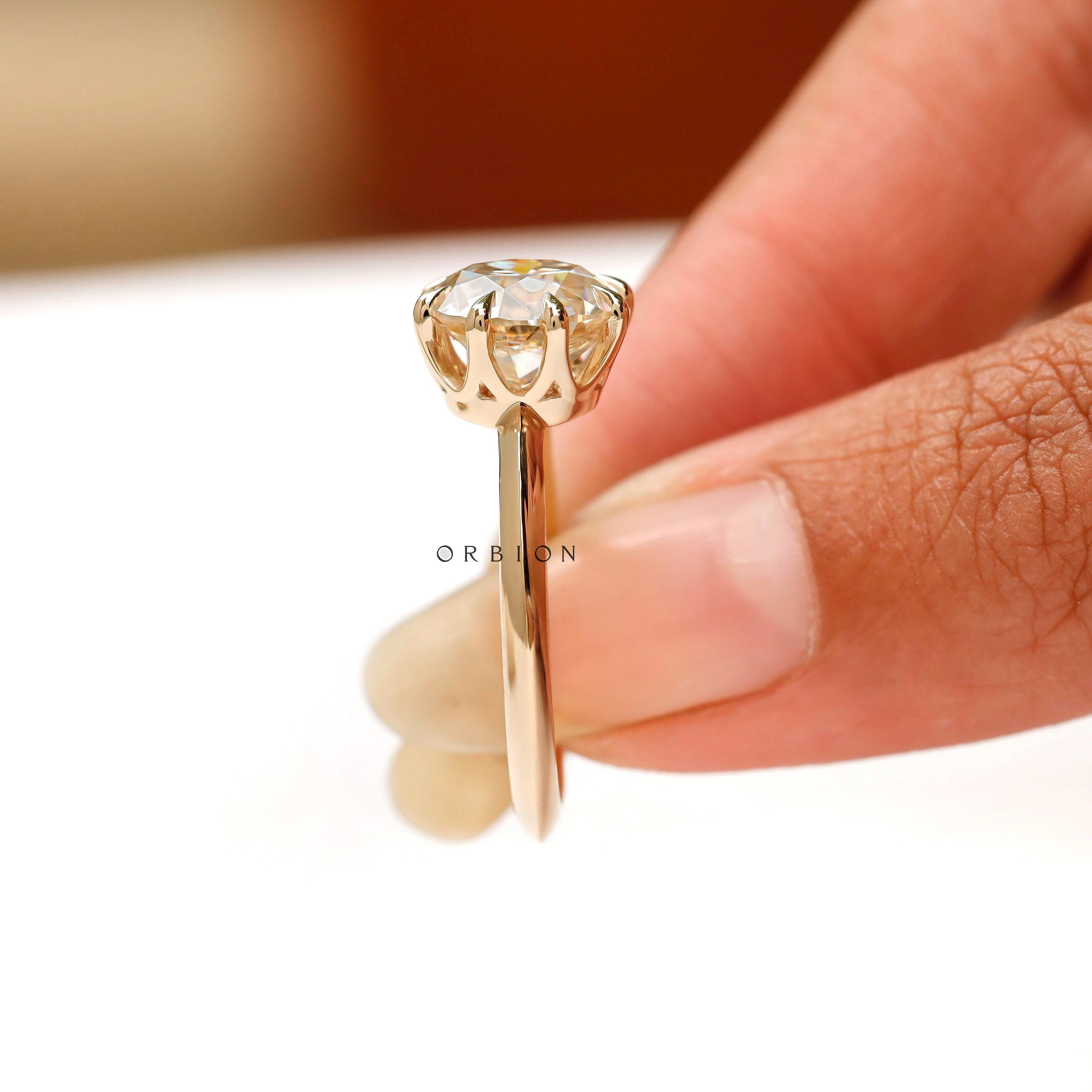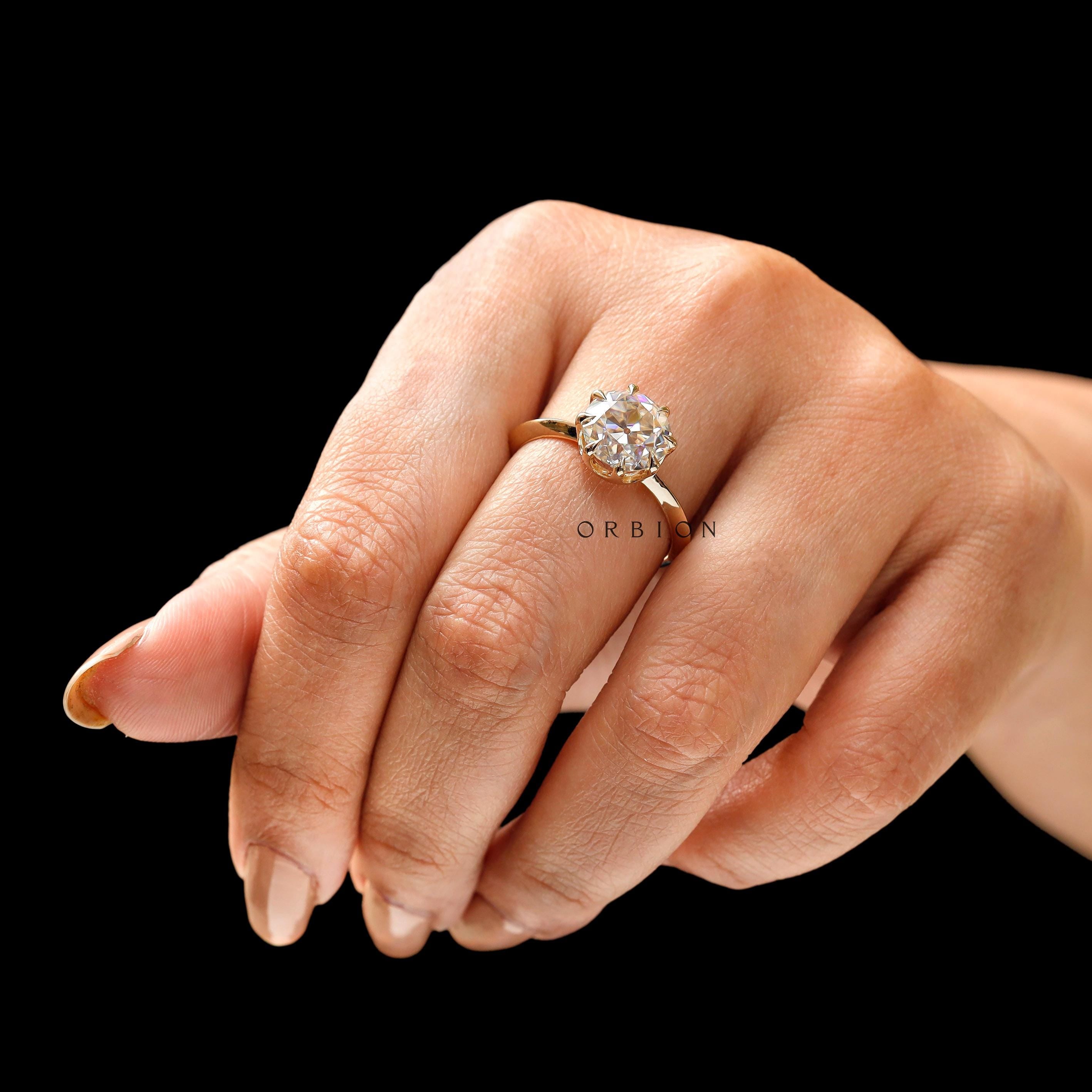 Vintage engagement ring, OEC Moissanite ring, Old european cut, 10k/14k/18k Yellow gold ring, Warm color stone ring, Off white stone ring, Vintage jewelry, Solitaire wedding ring, Handmade jewelry, 1 Year anniversary gift, 5 Year anniversary gift, Classic moissanite ring, Unique bridal ring, Solitaire promise ring, Proposal ring, Engagement ring for her, Claw prong antique ring, Simple solitaire ring, Gift for her