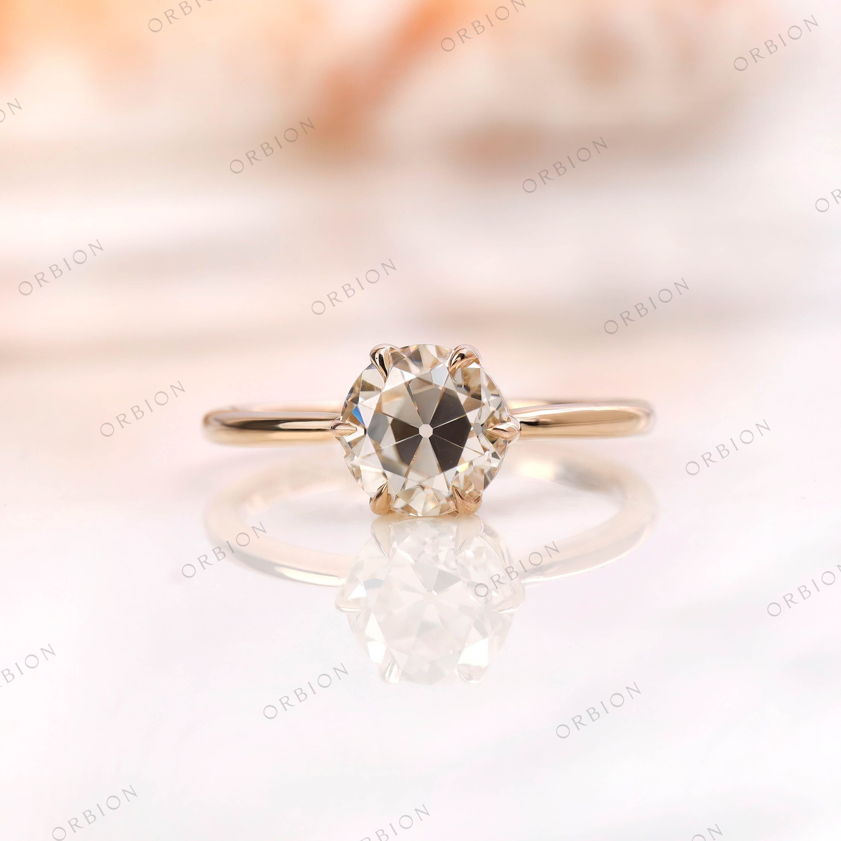 Old European Cut Moissanite Ring, GHI Color Moissanite Ring, Yellow Gold Solitaire Vintage Ring, Handmade Jewelry, Anniversary Gift, Old Cut Ring for Women, Unique Ring, Antique Bridal Ring, Promise Ring For Her, Vintage Proposal Ring, Off White Moissanite Ring, Six Claw Prong Antique Ring, OEC Moissanite Jewelry, Classic Solitaire Wedding Ring, Gift For Her, 10k/14k/18k Solid Gold Ring.