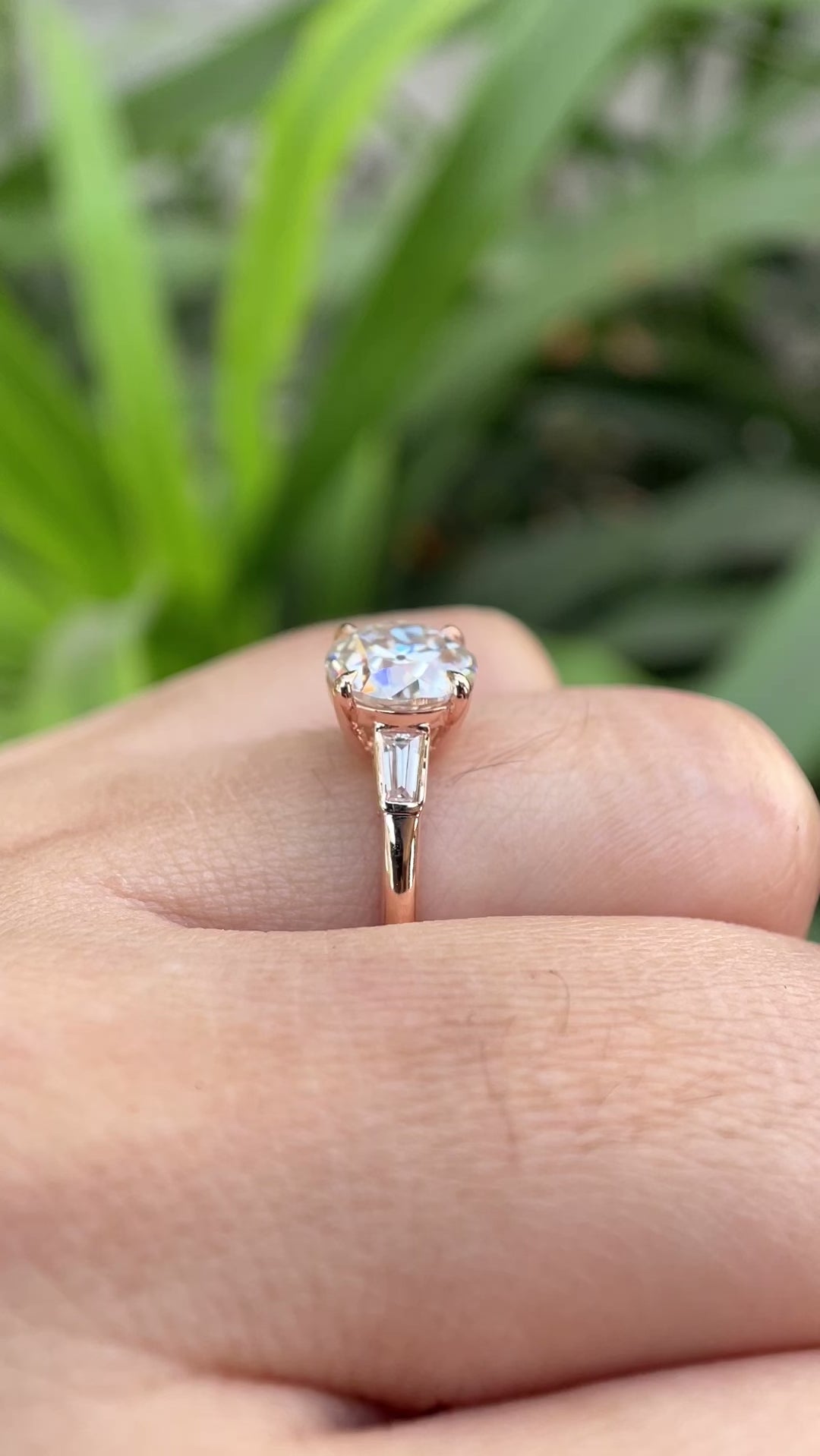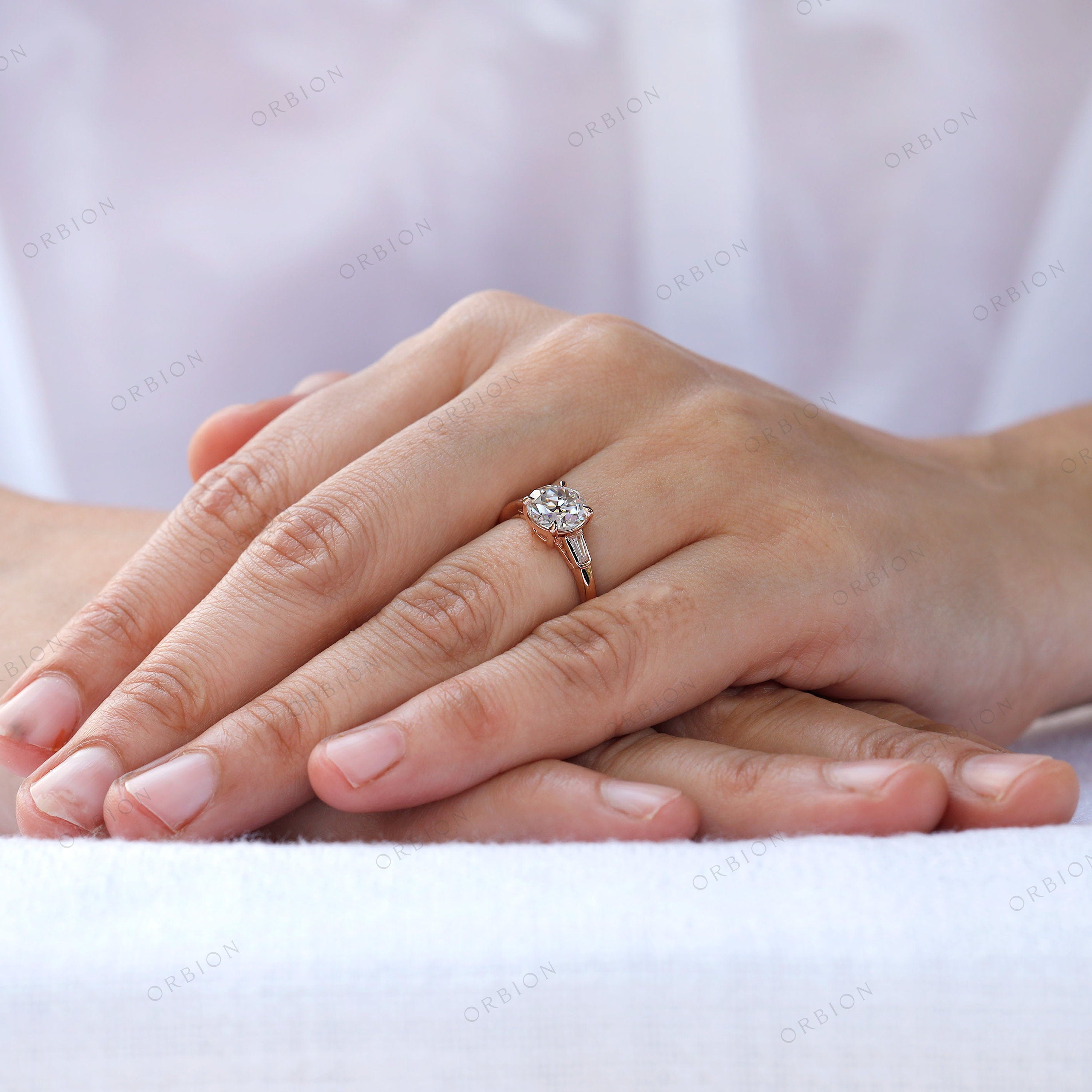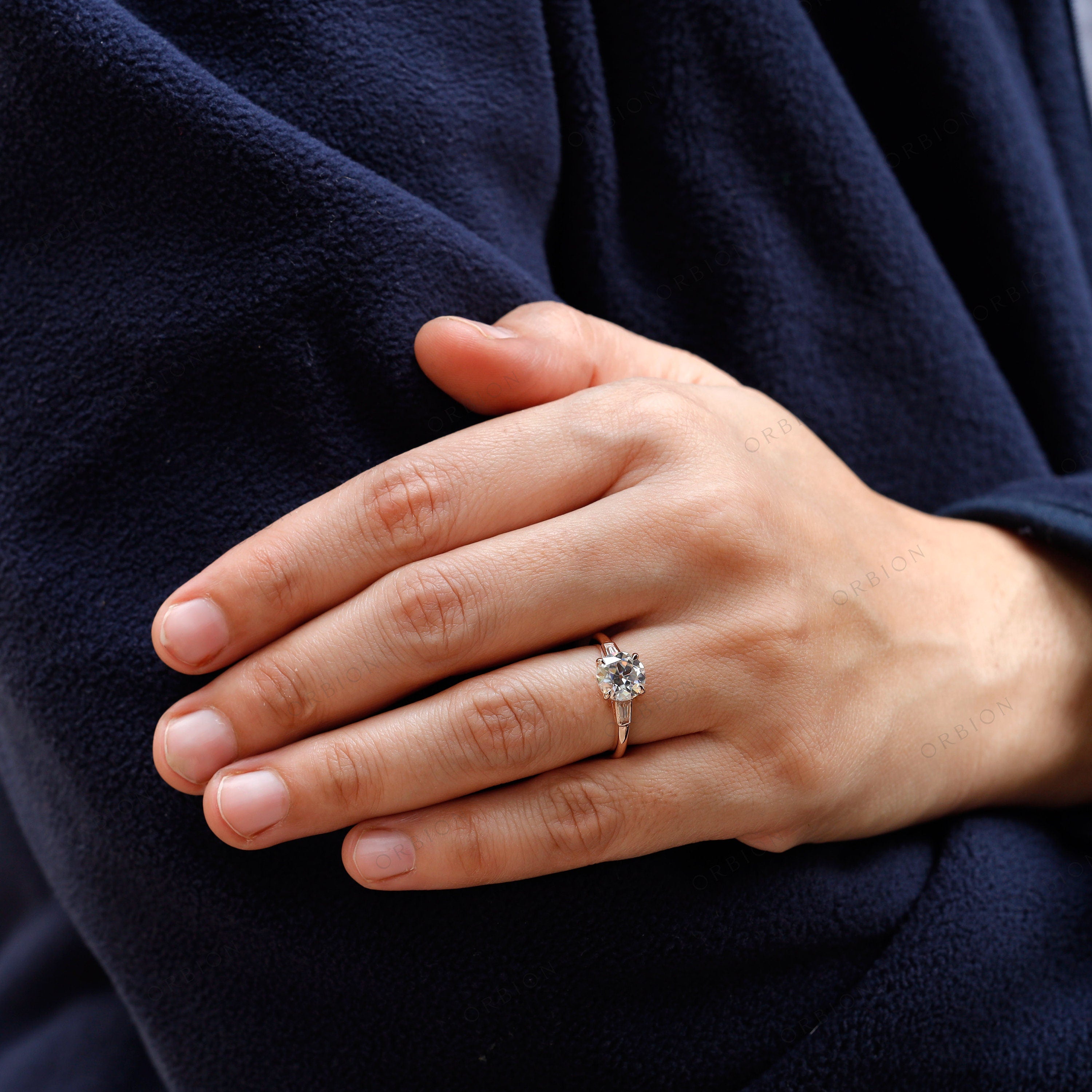 Vintage engagement ring, OEC moissanite ring, 10k/14k/18k solid gold ring, Rose gold ring, Wedding ring, Antique ring women, Heirloom jewelry, Heirloom engagement rings, Handmade jewelry, Claw setting ring, Unique engagement ring, Tapered Baguettes side stone ring, Wedding ring, Antique-style ring, 3 Stone ring, Promise ring.