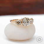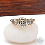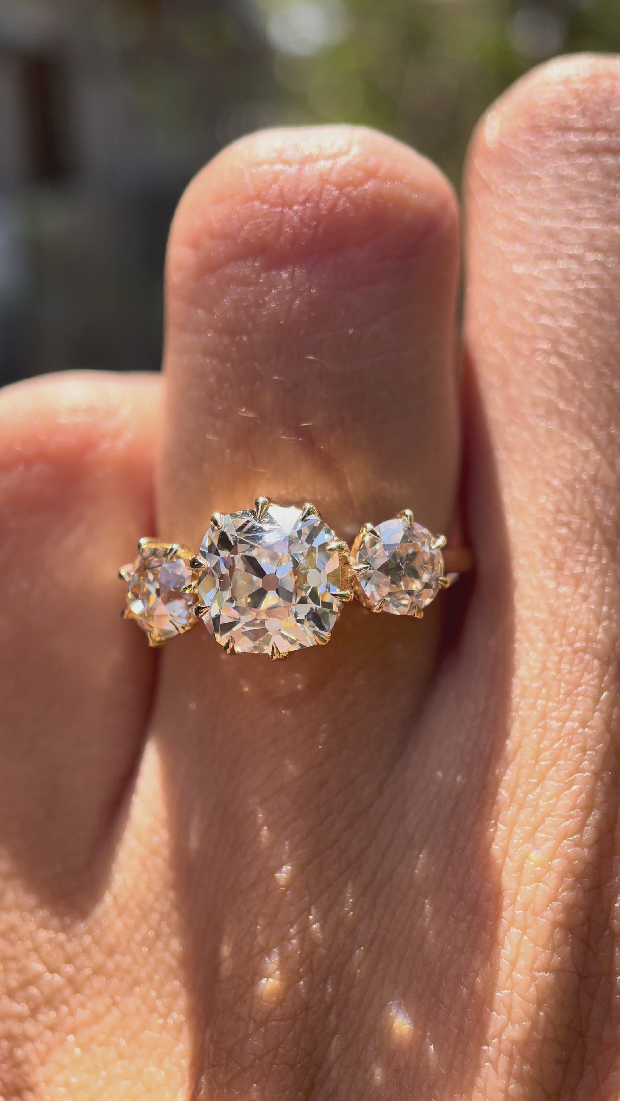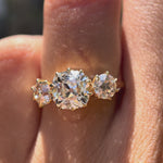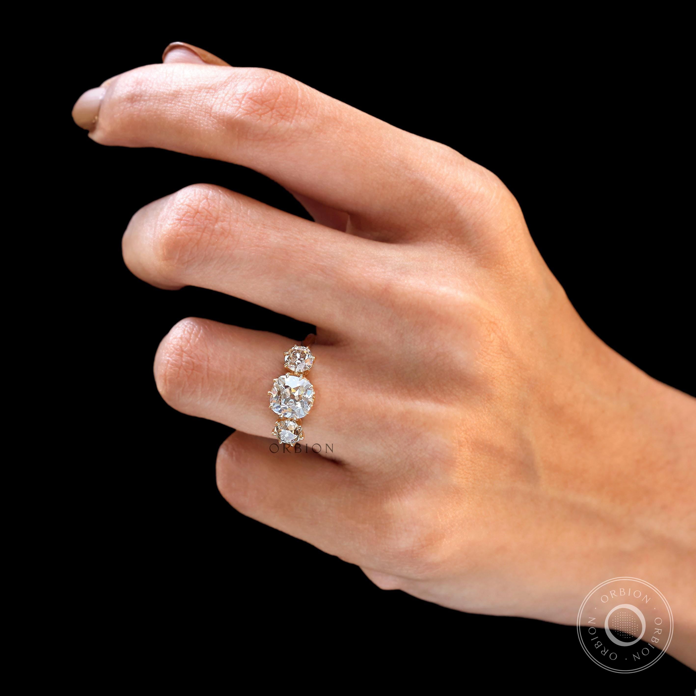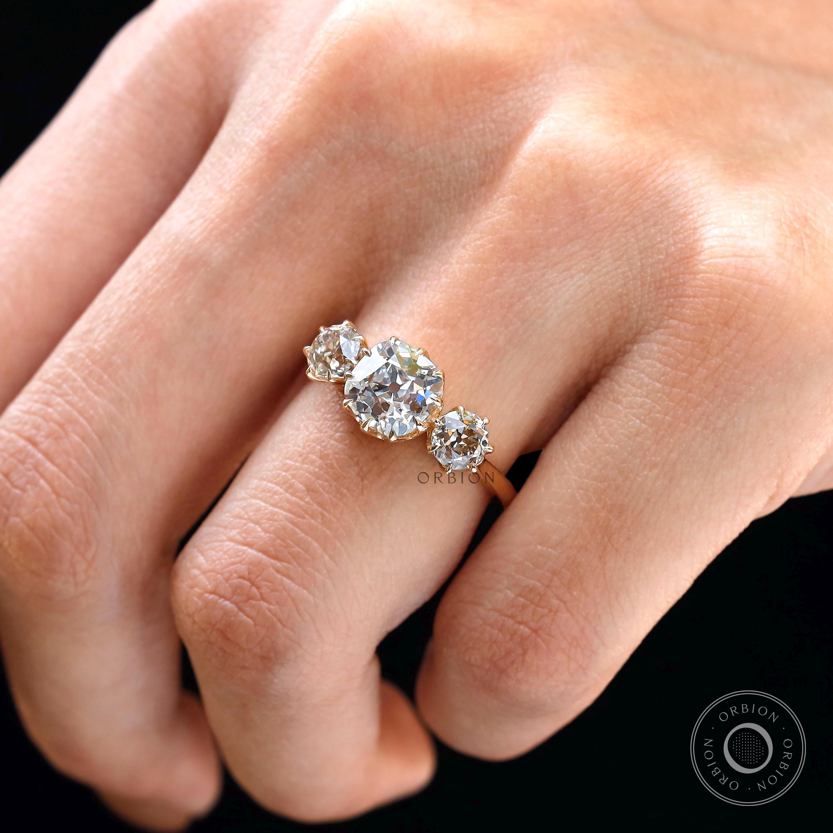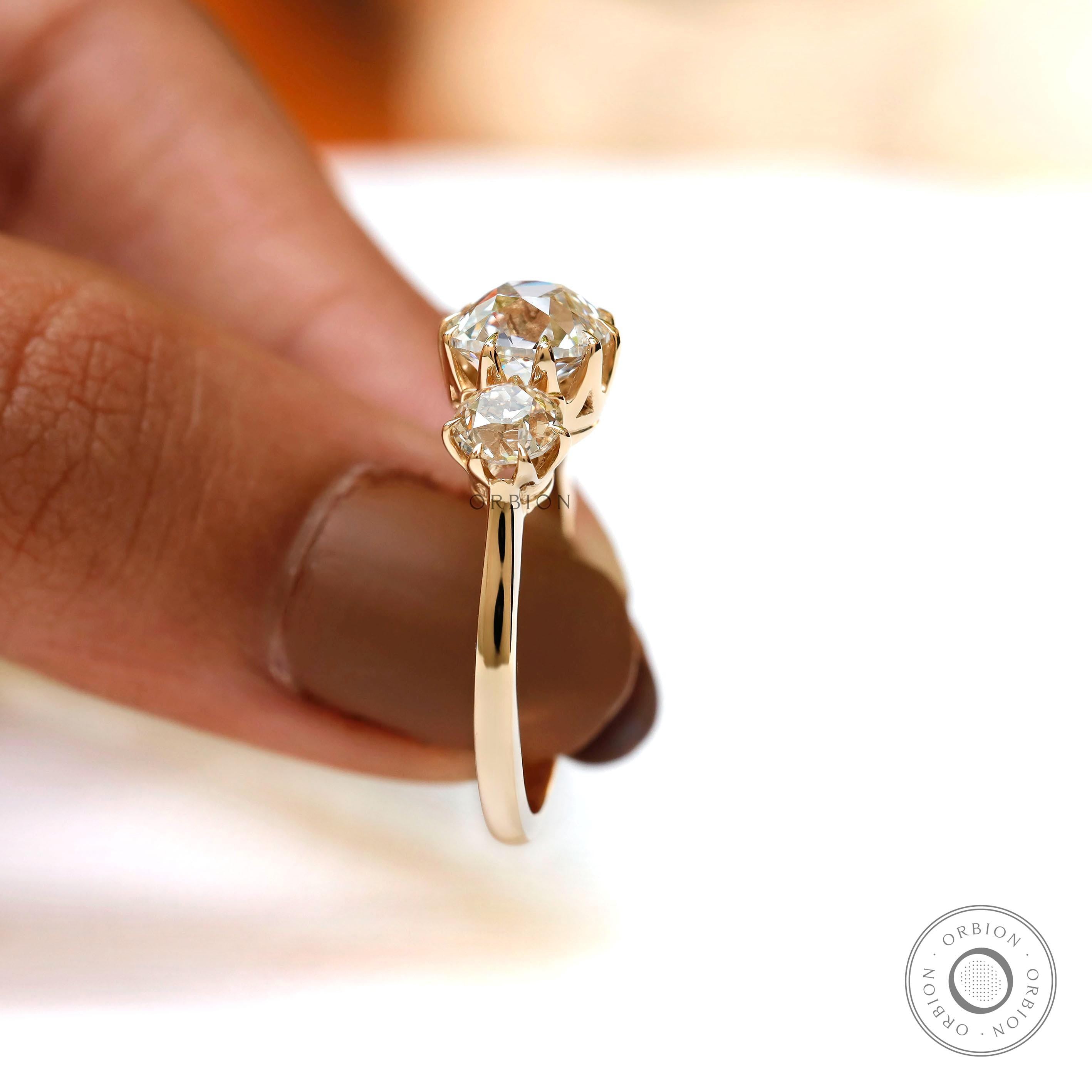 Three Stone Lab Grown Diamond Trilogy Engagement Ring OEC Moissanite Side Stones 14k Yellow Gold Georgian Style Antique Ring Women