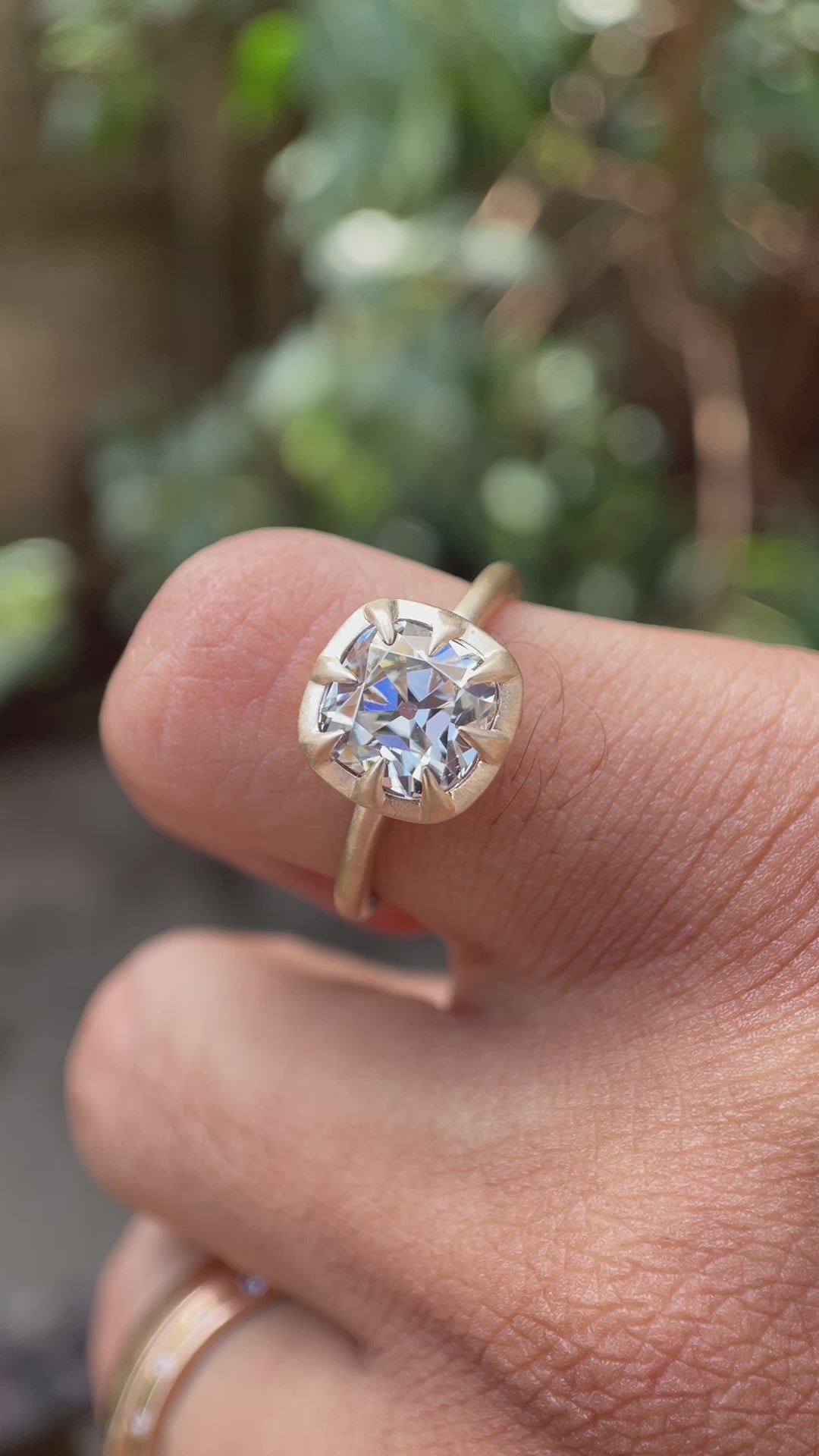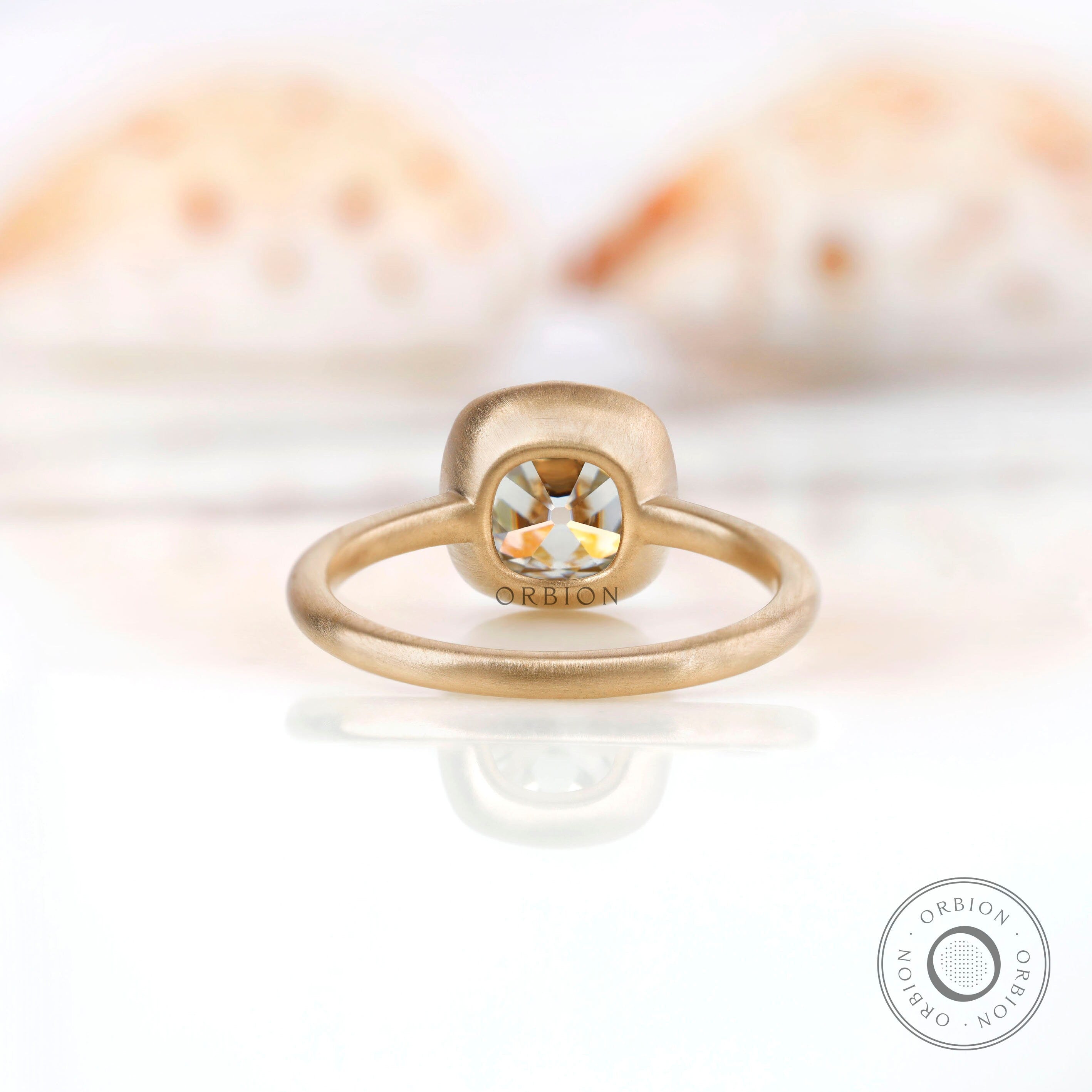 Old Mine Cut GHI Moissanite Engagement Ring, Brushed Matt Finish Claw Prong Ring, 10K/14K/18K Solid Gold Ring, Yellow Gold Georgian Style Closed Bezel Ring, Classic Anniversary Ring, OMC Cushion Ring For Women, Claw Prong Set Ring, Bezel Set Ring, Solitaire Old Cut Cushion Ring, Antique Wedding Ring, Vintage Style Ring, Bridal Ring For Women, Handmade Ring, Promise Ring For Her