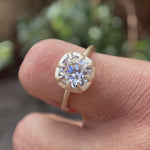 Old Mine Cut Cushion Ring Moissanite, Georgian Engagement Ring, Off White Stone Ring, Brushed Matt Finish Claw Prong Ring, Closed Bezel Ring