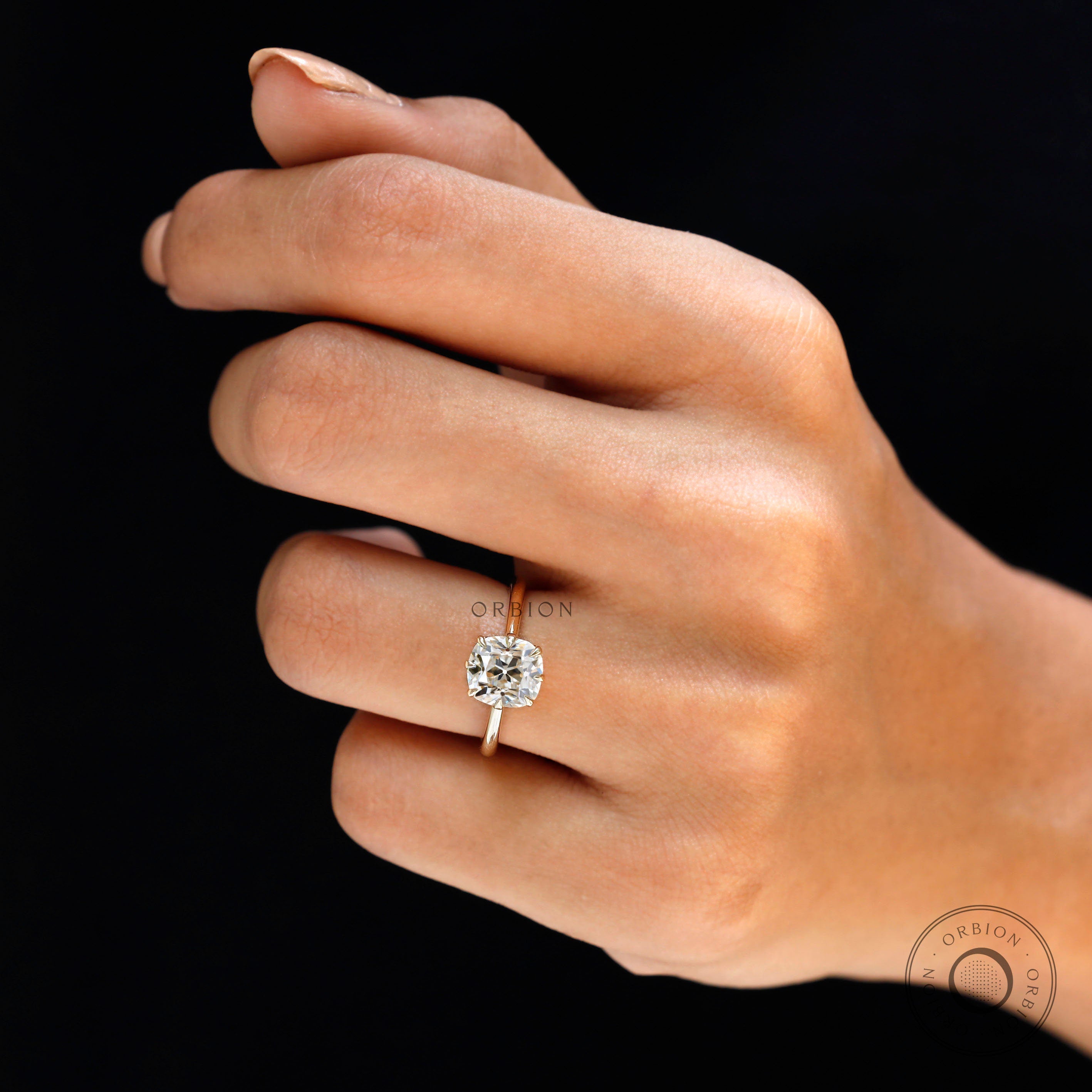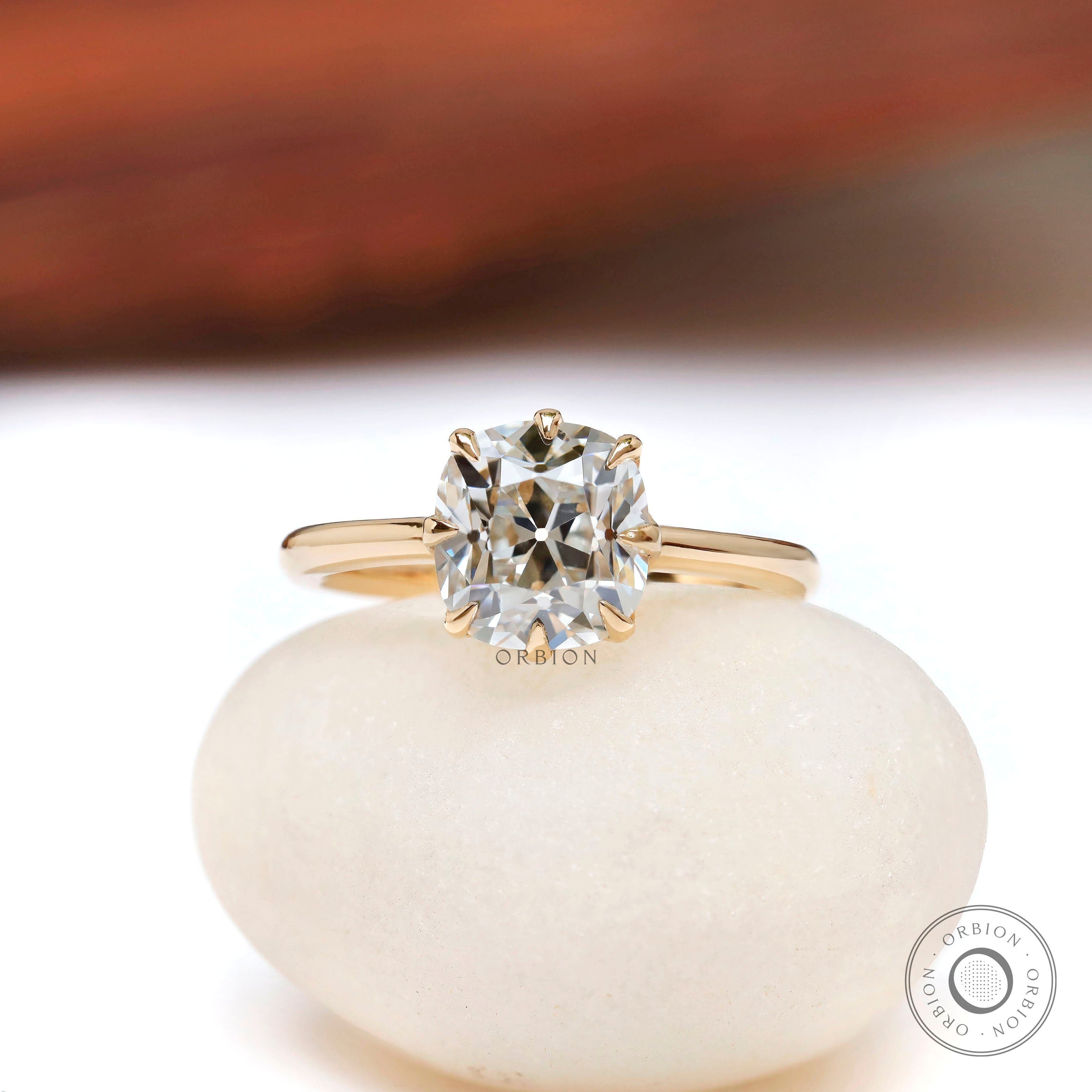 Old Mine Cut Cushion Diamond Ring, Cushion Cut Lab Grown Diamond Ring, Elongated Cushion Engagement Ring, Cushion Cut ring, Solitaire Wedding Ring, Vintage Solitaire Ring, Diamond Ring for Her, CVD Diamond Ring, Lab Created Diamond Ring, Diamond Engagement Ring, Anniversary Diamond Ring, 10K/14K/18K Yellow Gold Ring, Unique Bridal Ring, Cushion Diamond Ring, Antique Diamond Ring, OMC Diamond Ring, 8 Prong Ring