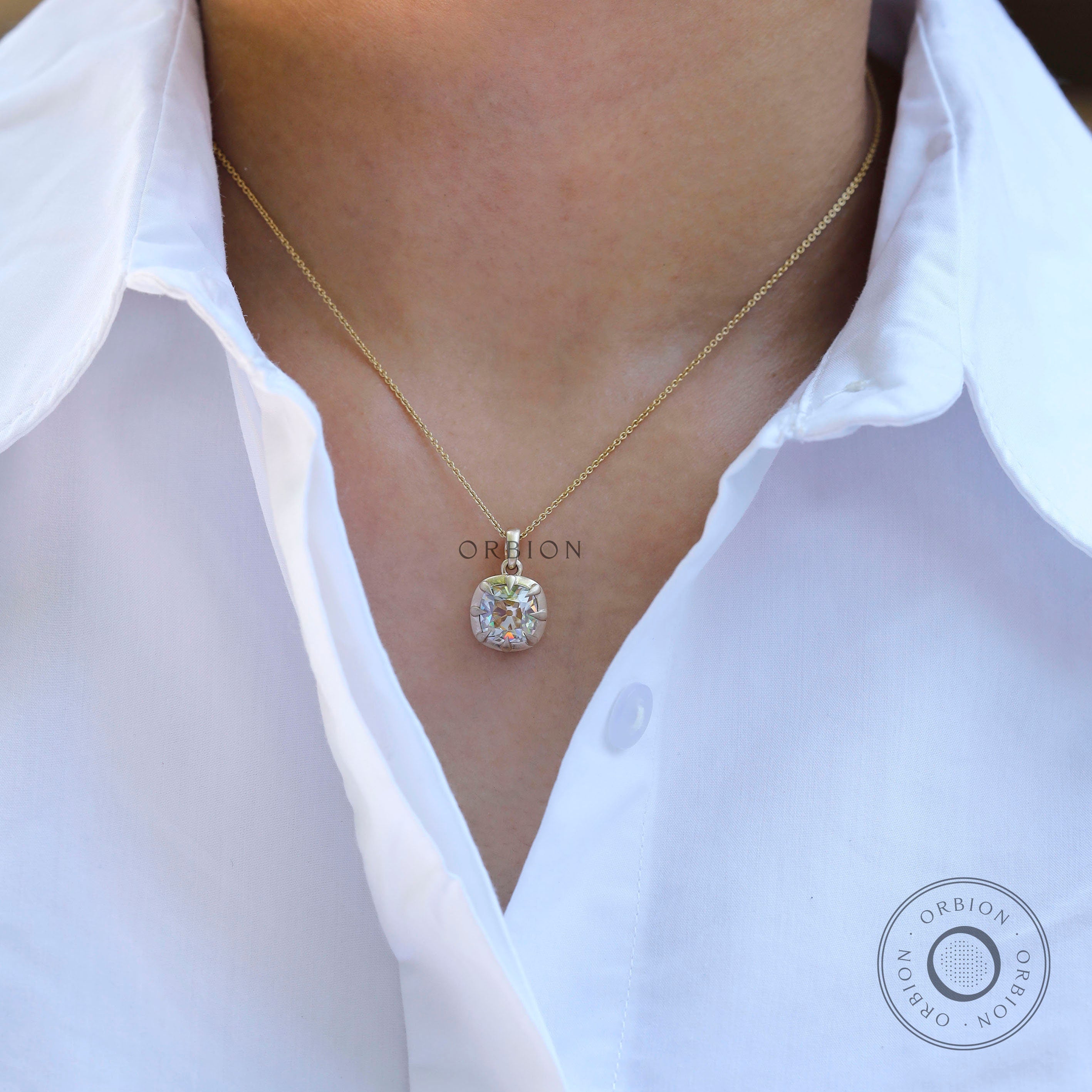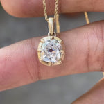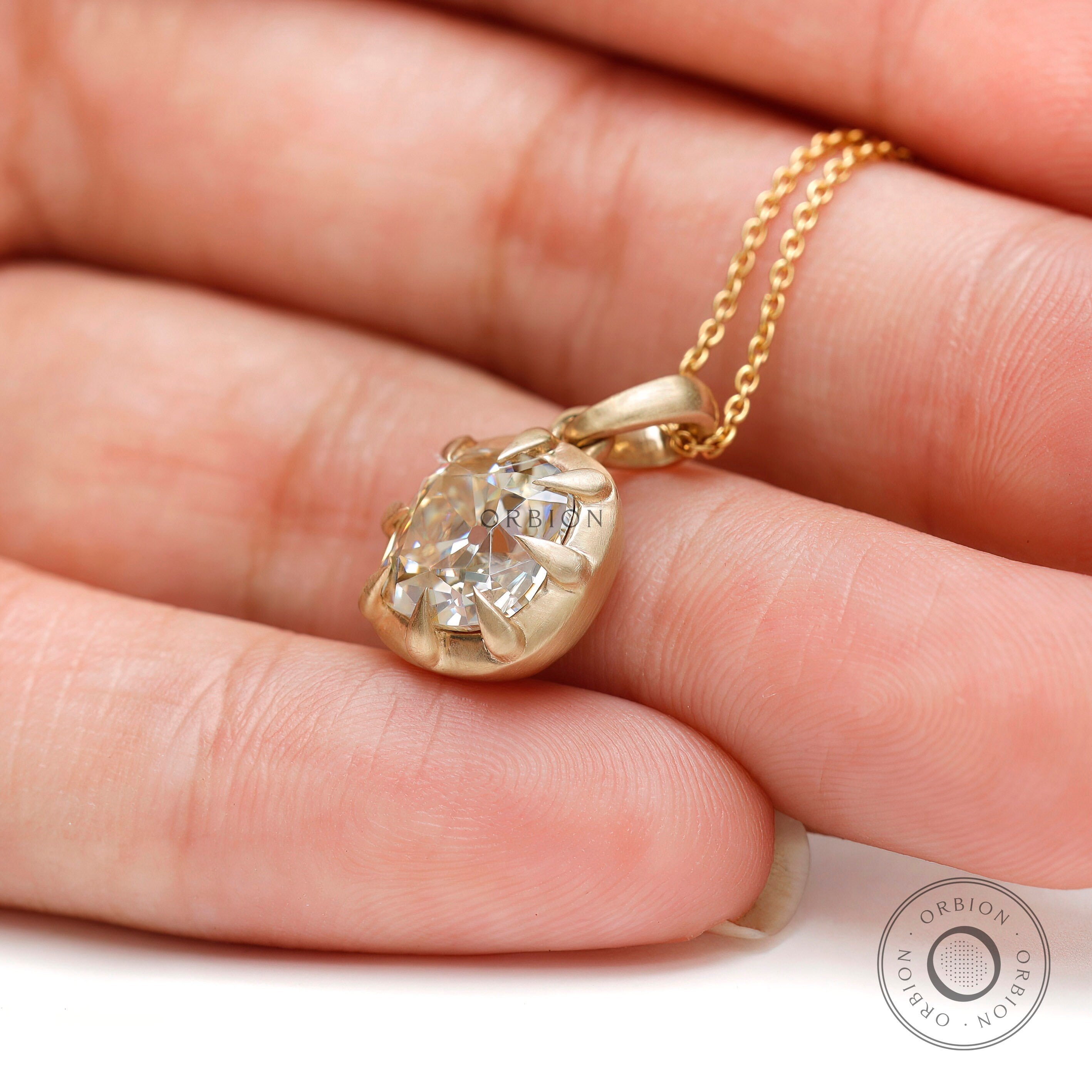 8.5 MM Off White GHI Old Mine Cushion Cut Moissanite Pendant, Satin Matte Finish Edwardian Pendent, Antique Claw Prong OMC Solitaire Pendant, Georgian Bezel Set Cushion Pendant, Vintage Style Pendant, 14K Gold Pendant, Classic Pendant, Victorian Style Pendant, Custom Pendant, OMC Moissanite Pendant, Promise Gift For Her