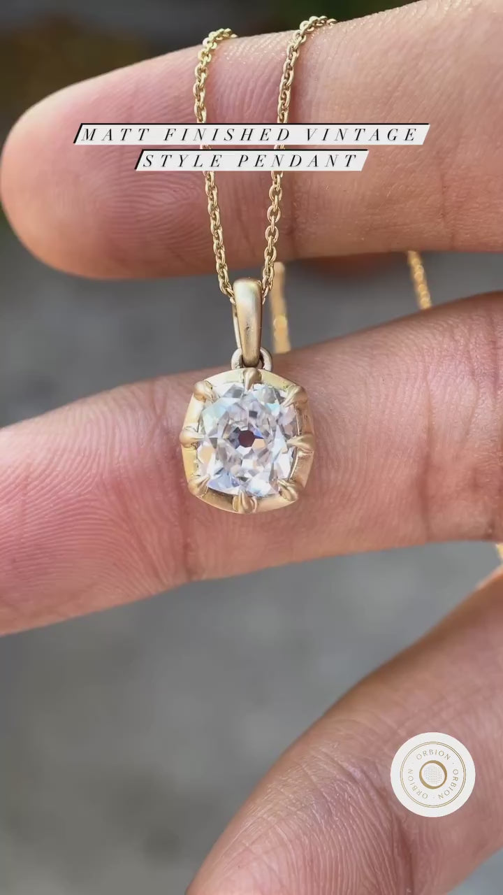 Old Mine Cut GHI Cushion Moissanite Pendant, Antique Georgian Pendant, Satin Matte Finish Gold Pendant, Vintage Pendant For Chain Necklace