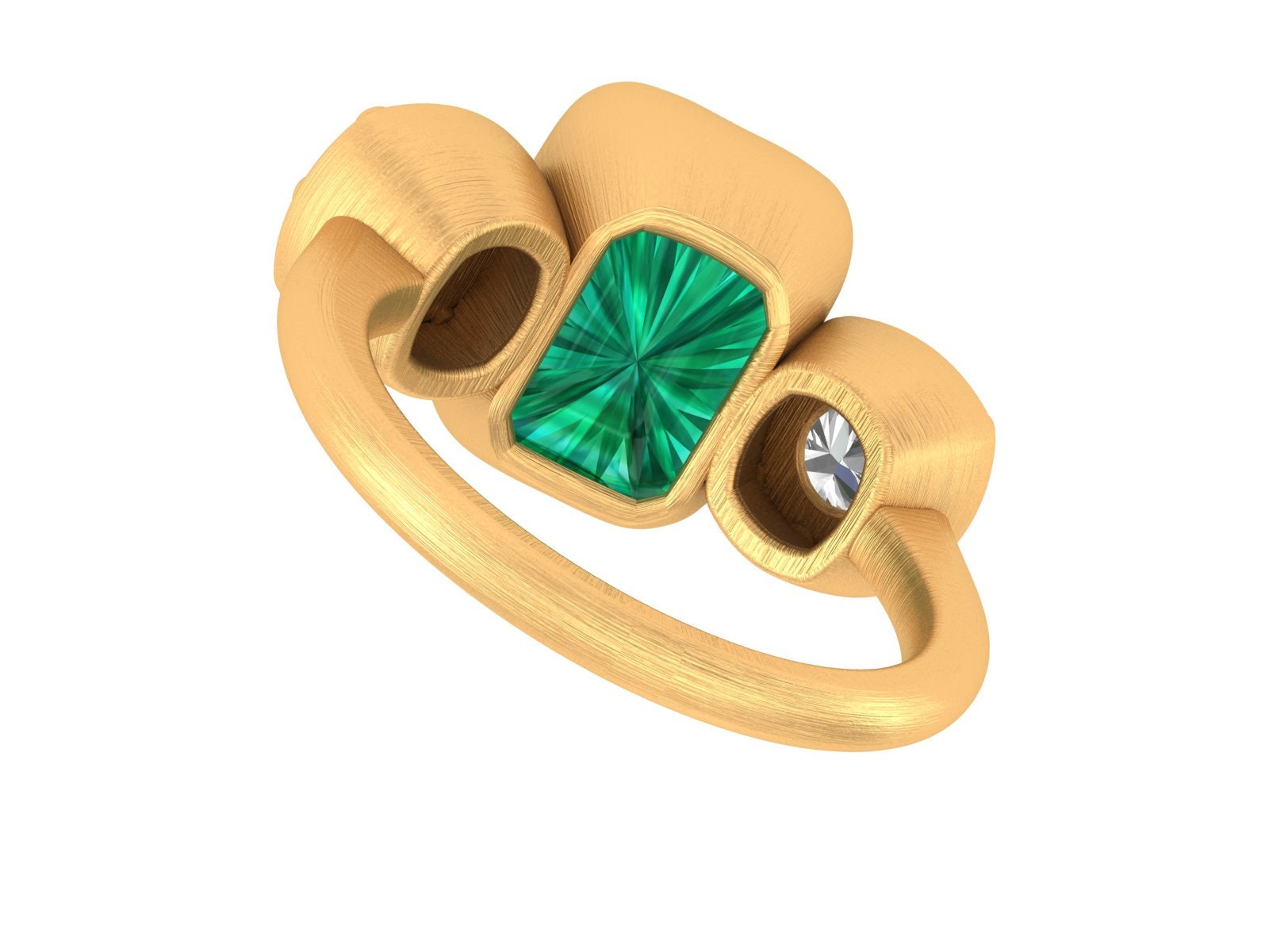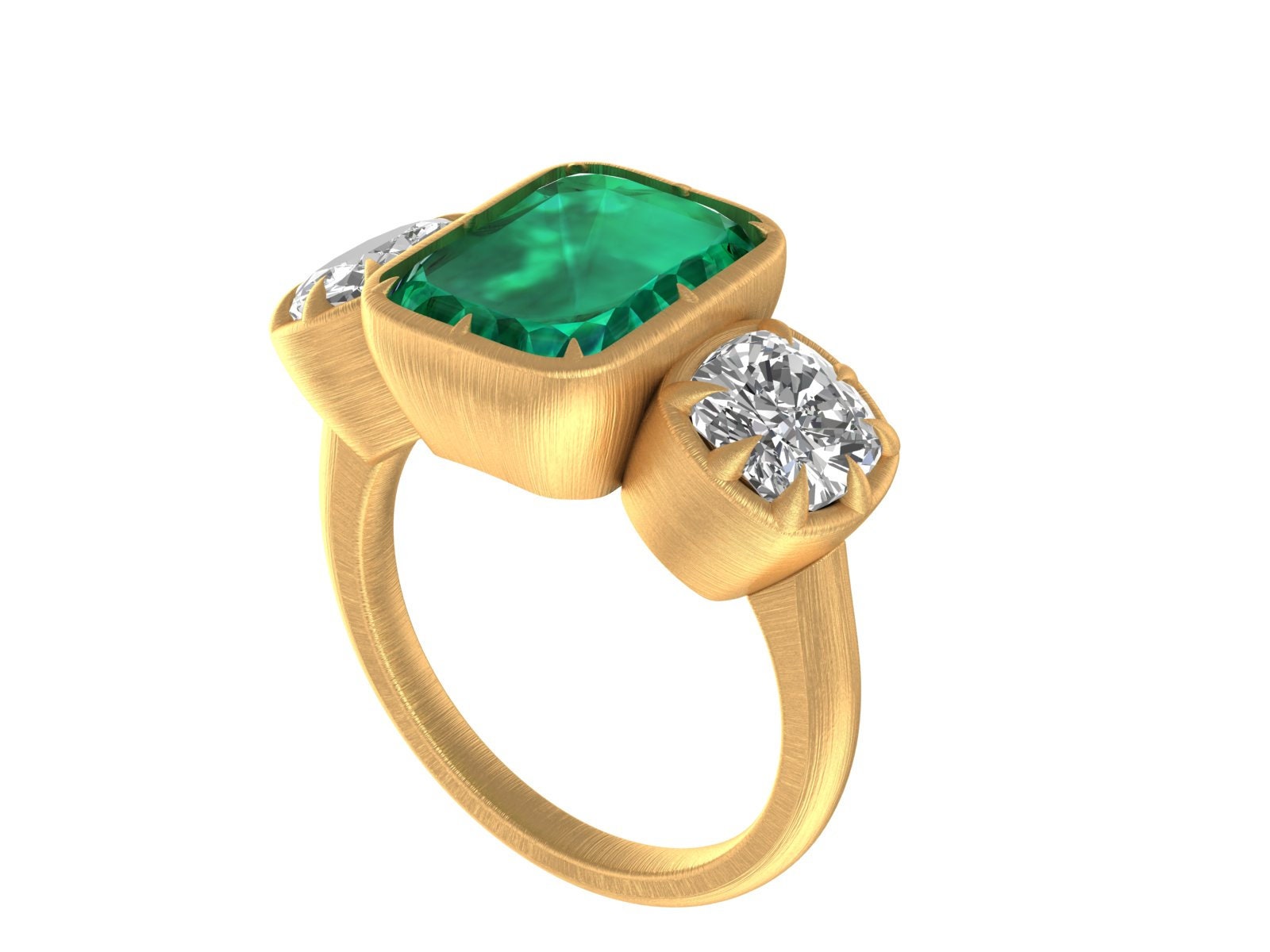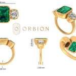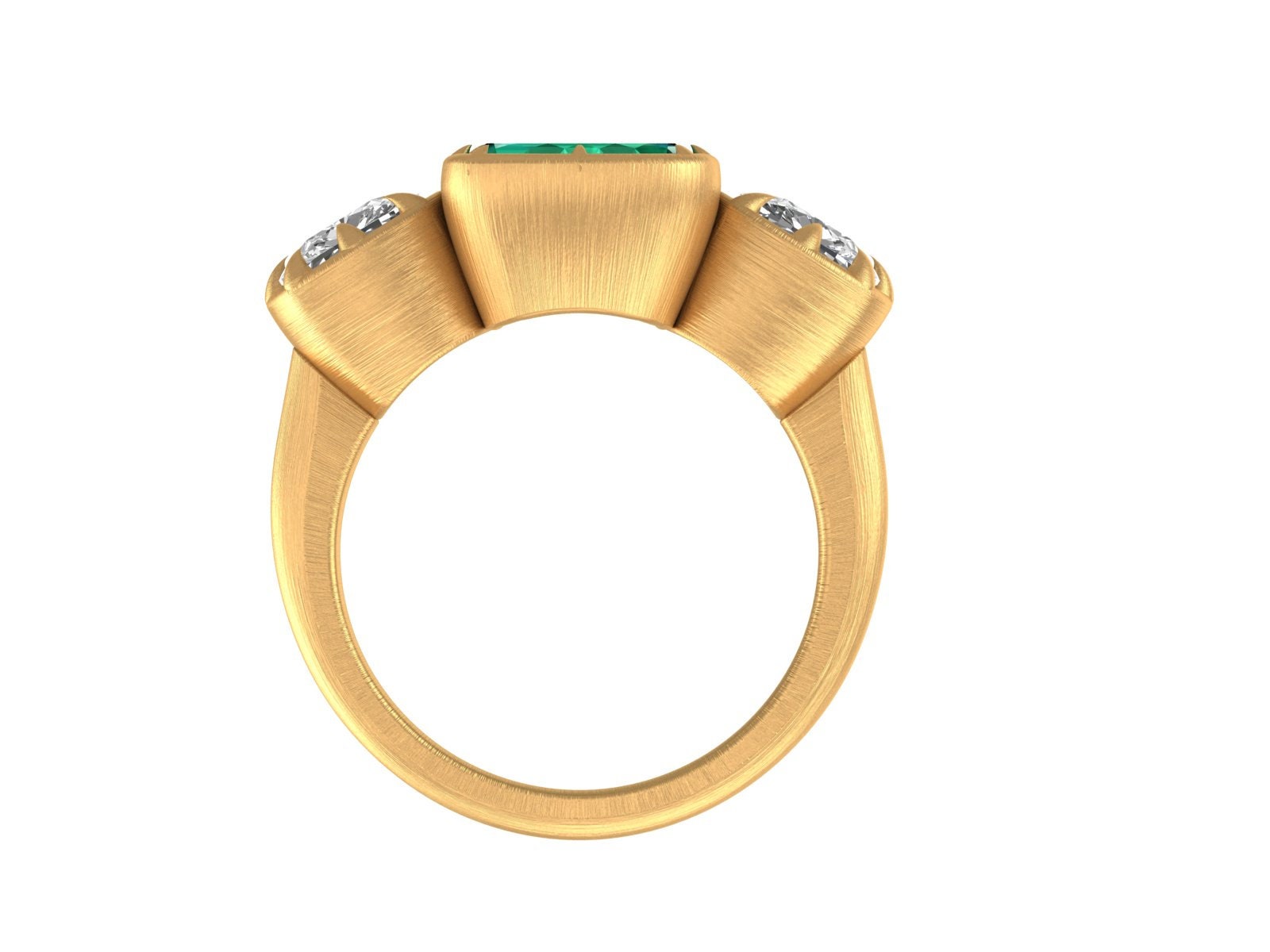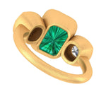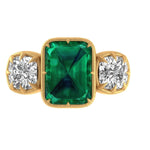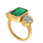 Georgian Style Emerald Ring with 6 MM OMC Moissanite Accent, 14K Brushed Gold Statement Ring, Elegant Old Mine Cut Emerald Ring