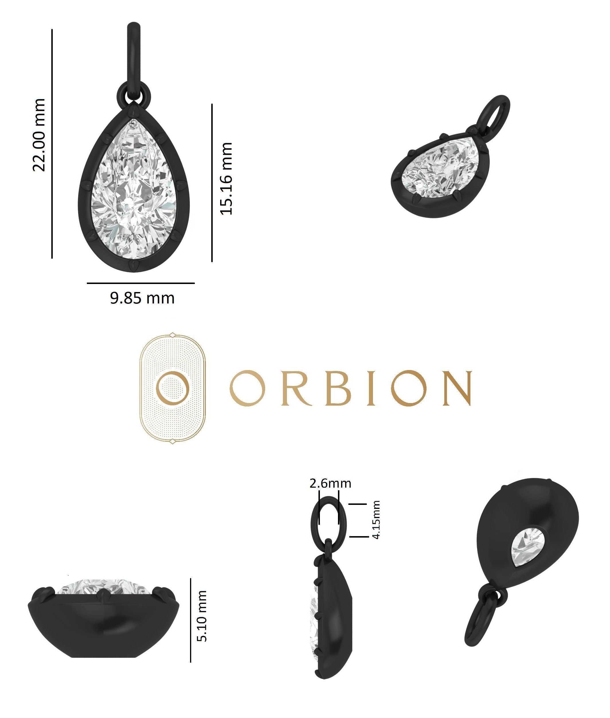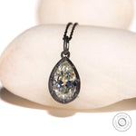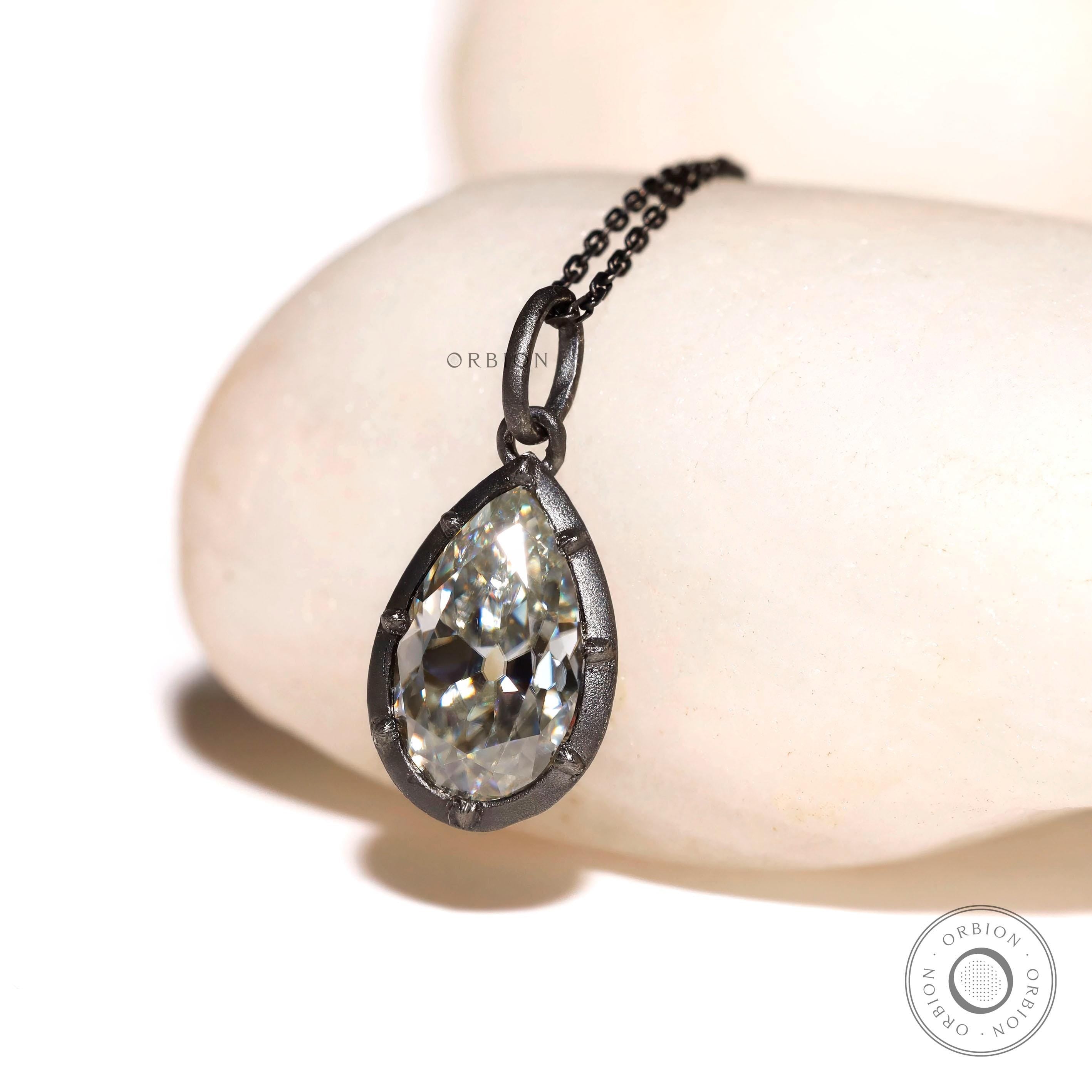 Old Mine Cut Pear Georgian Style Moissanite Pendant, Oxidised Sterling Silver Fine Matte Finish, Vintage Gold Pendant, Closed Bezel Pendant