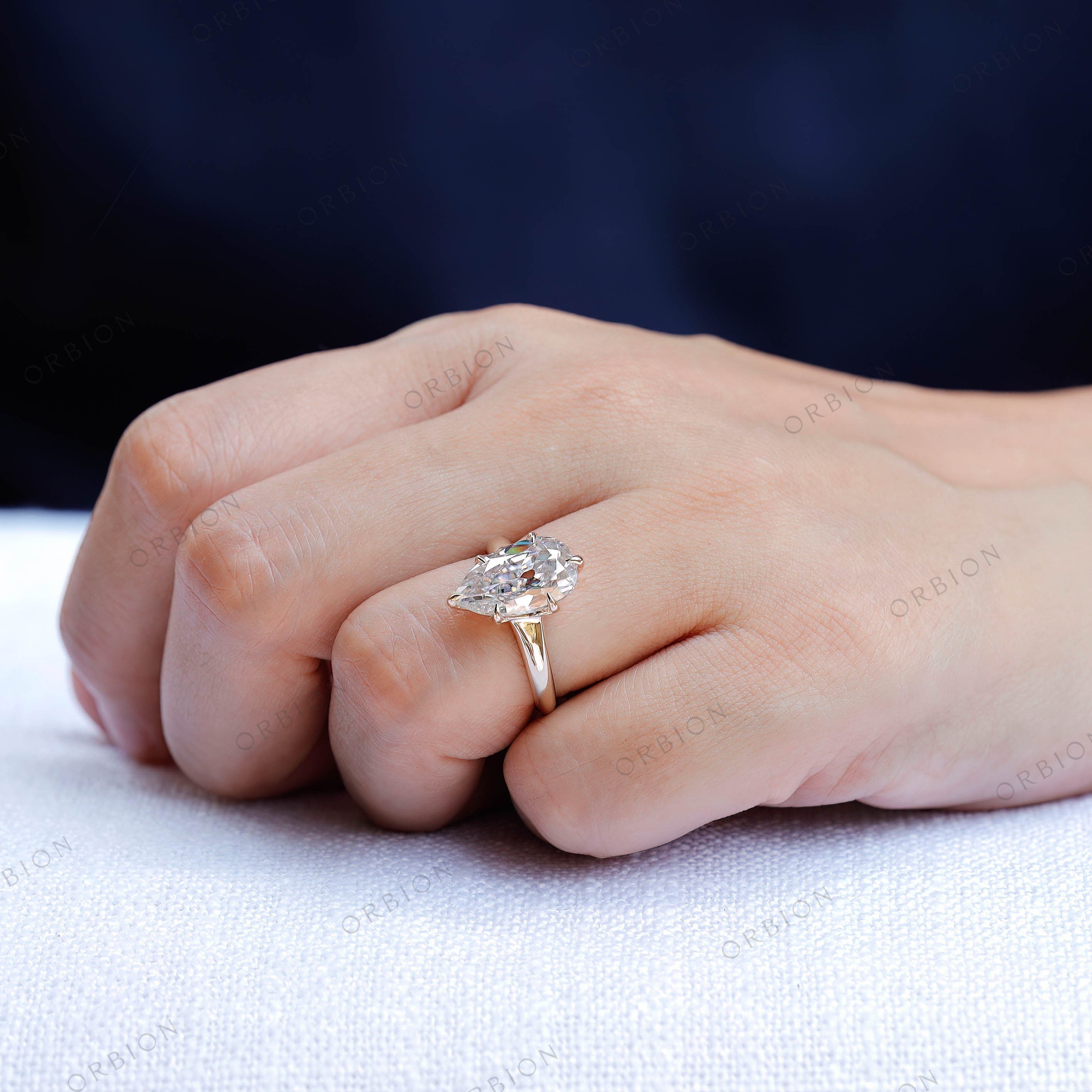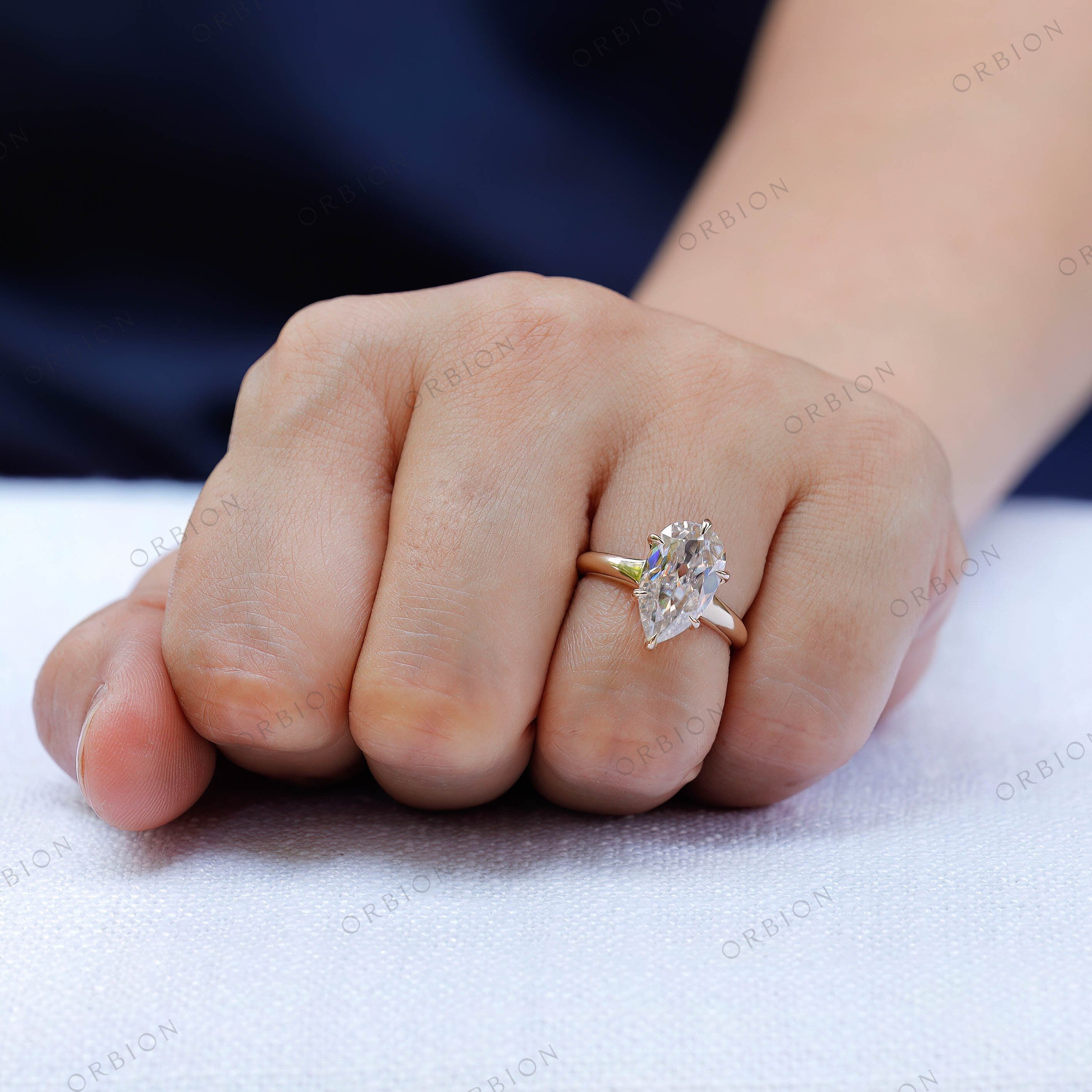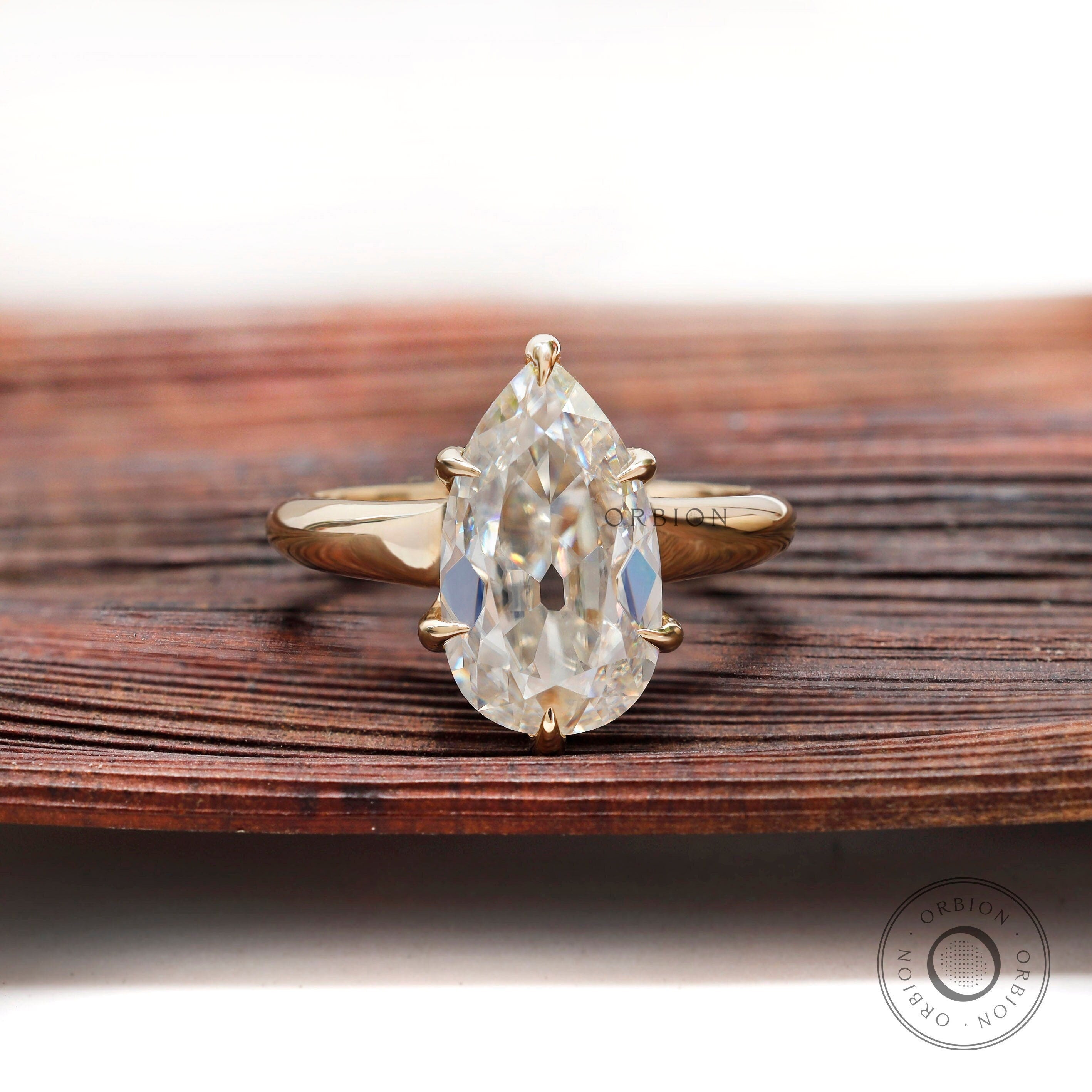 3.7 CT Old Mine Cut Pear Moissanite Ring, 14K Solid Gold Claw Prong Pear Engagement Ring, Unique Vintage Pear Shaped Ring, Proposal Ring, Solitaire Pear Ring, Georgian Style Ring, Promise Ring For Her, OMC Pear Ring, Antique Teardrop Ring, Pear Cut Ring, Large Wedding Ring, Large Pear Shaped bridal Ring, Anniversary Gift
