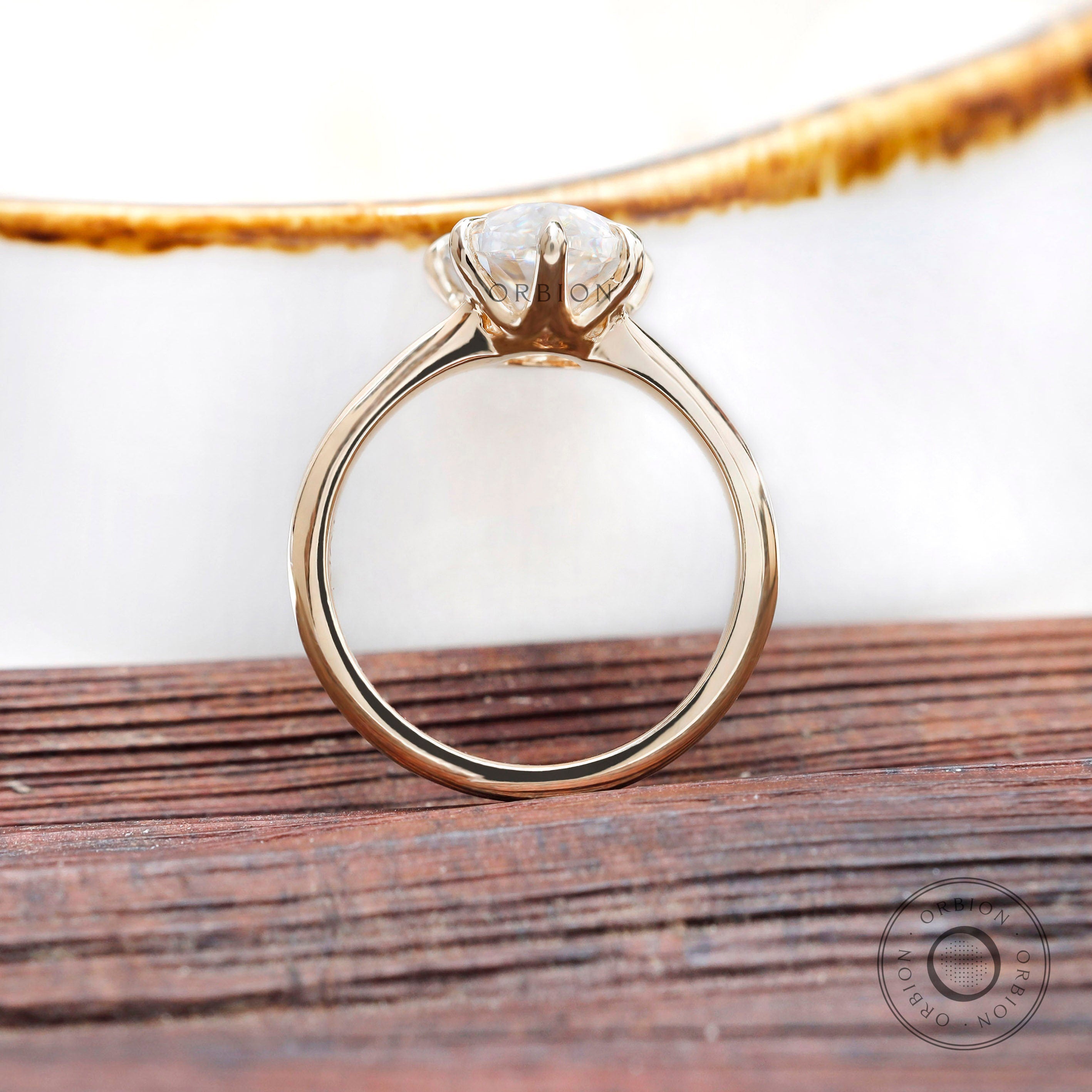 Old Mine Cut Pear Moissanite Ring, Solitaire Pear Engagement Ring, Unique Vintage Style Ring, Georgian Ring, Claw Prong Ring, 14k Gold Rings