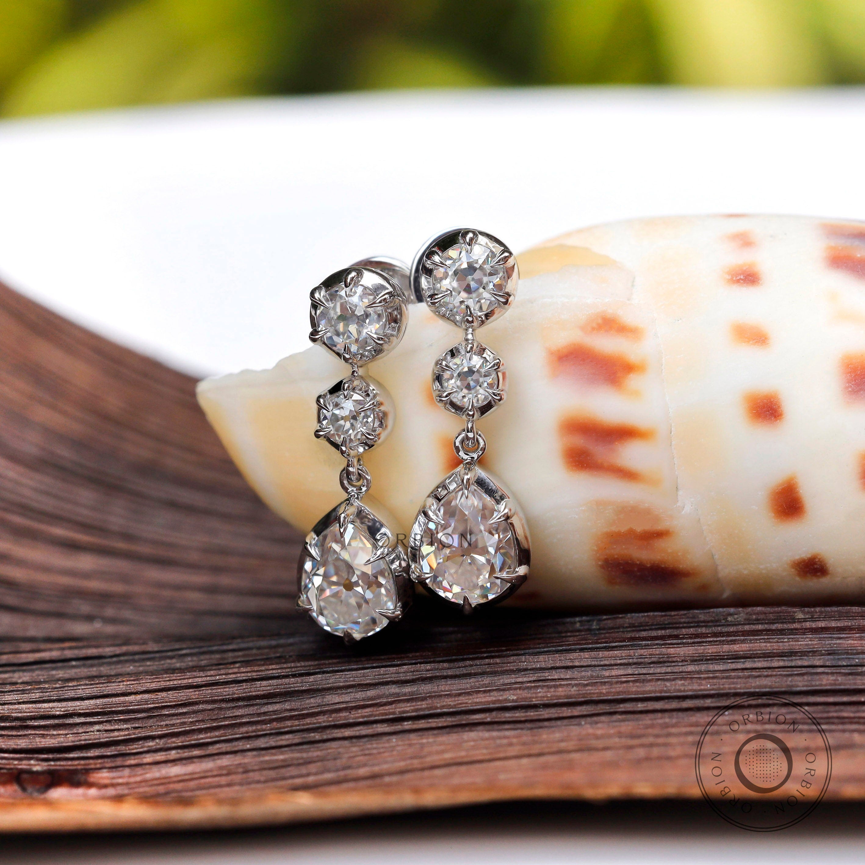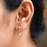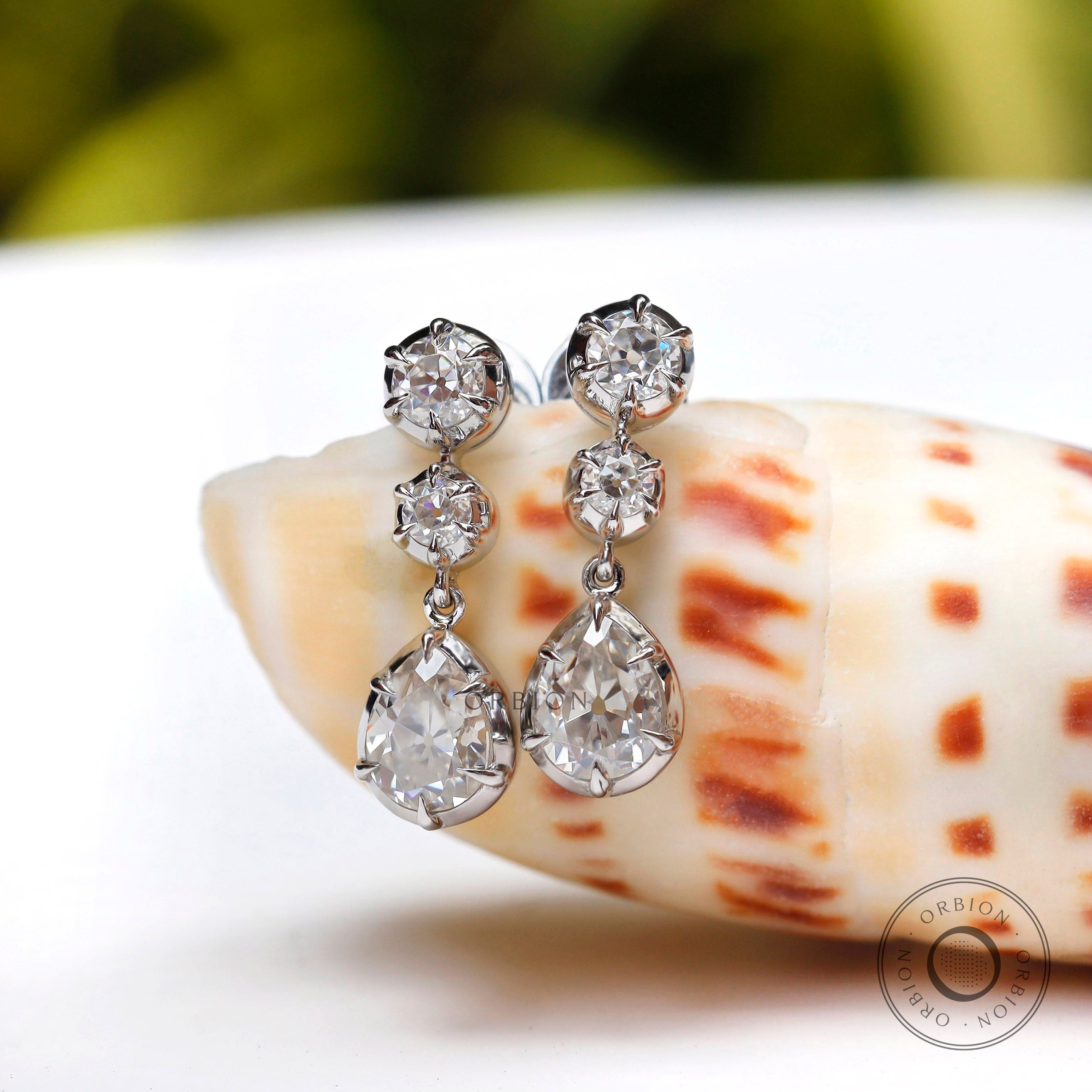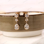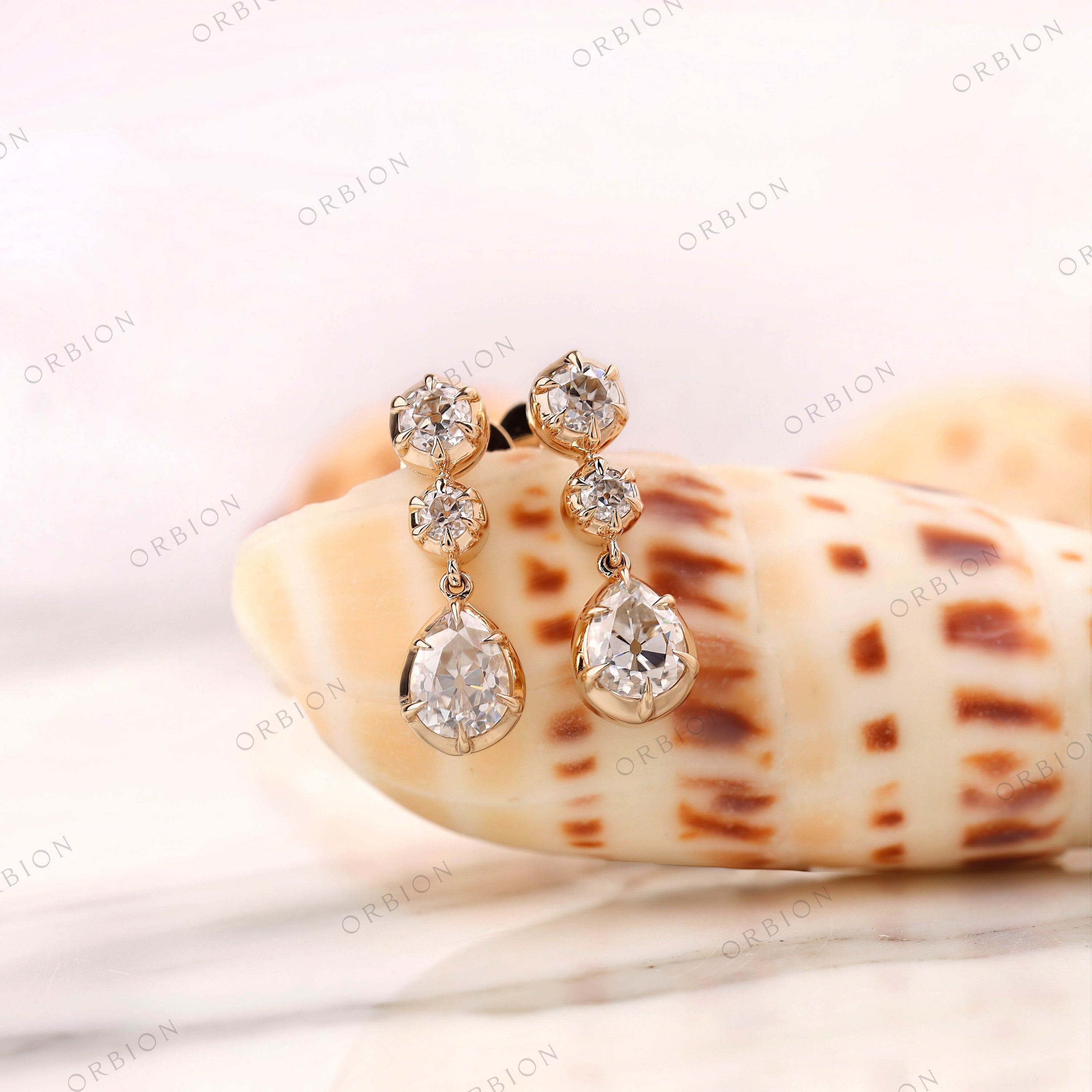 Old Mine Cut Pear Shaped Dangle Earrings, 14K Solid Gold Dangle Drop Earrings, OEC Round Statement Earrings, Unique Teardrop Earrings, Vintage Earrings, Handmade Earrings, Anniversary Gift For Women, Bridal Earrings, Moissanite Earrings, Bridal Earrings, OMC Moissanite